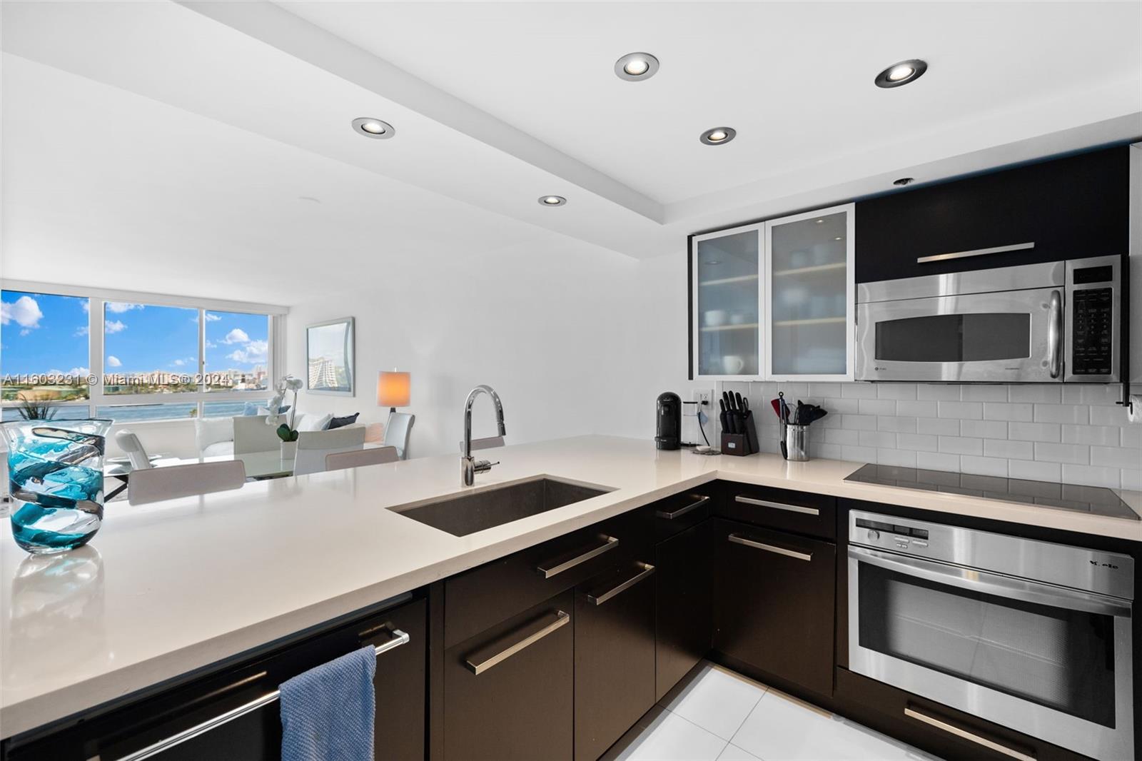 South Pointe Tower opportunity in South Beach! This 1 bedroom, 1.5 bath offers a fully renovated and residence with spectacular, unobstructed water, sunset, and skyline views. Nestled in the prestigious South of Fifth neighborhood, this modern gem showcases breathtaking panoramas of Biscayne Bay, the Miami skyline, South Pointe Park, and Fisher Island. The interior exudes sophistication with white glass tile floors and an open kitchen adorned with stainless steel appliances, custom cabinetry, and pristine white quartz countertops with a matching backsplash. Spacious bedroom and the luxurious bathroom includes a walk-in rain shower. South Pointe Tower offers 2 pools, poolside cabanas, tennis courts, dog park, and inviting outdoor lounging areas. This is truly the best deal in South Beach!
