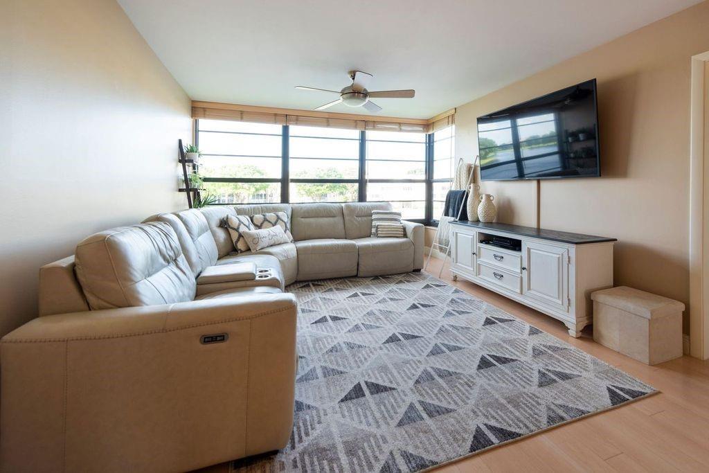 This unit has the WOW Factor! Beautifully Updated, Lakefront Corner Unit, Very Private no one walks past your Bedroom. Open Kitchen with Large Quartz countertops for Bar Top Seating with SS Appliances and extra Counter space for your Home Coffee Shop. Lovely Laminate Flooring, Hurricane Impact Windows, Updated Bathrooms with Seamless Shower Doors, Big Walk-In closet in the Primary Bedroom and Lots of Closets in Guest. Community has Pool & Jacuzzi, you have access to the Private Country Club with Tennis, Gym, Pool, Sports Bar, Tot Lot, Restaurant, BBQ/Picnic, Golf. Water and Trash included in Monthly Assoc Fee. Sorry No Pick Up Trucks allowed, No Renting for first 2 years of ownership One Assigned parking spot plus Guest.