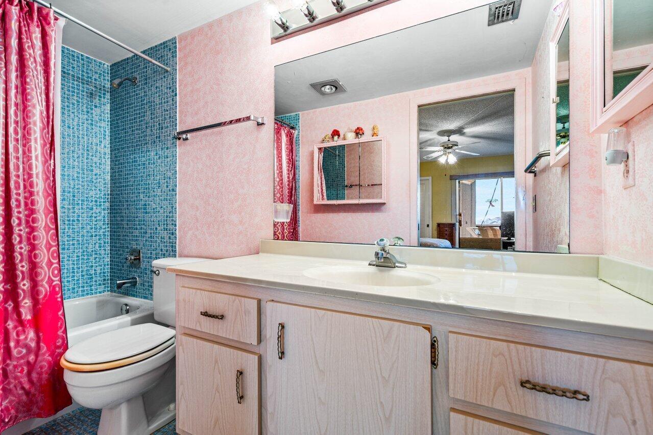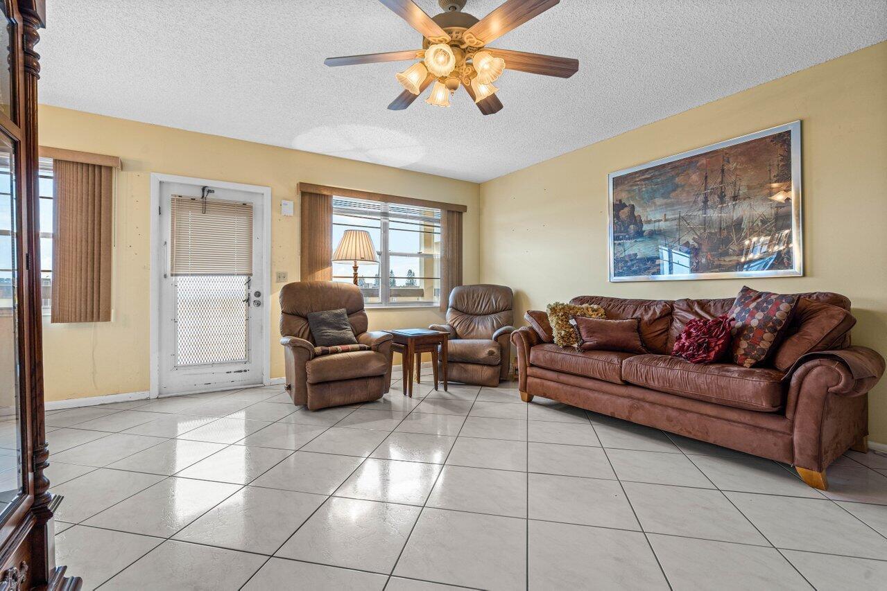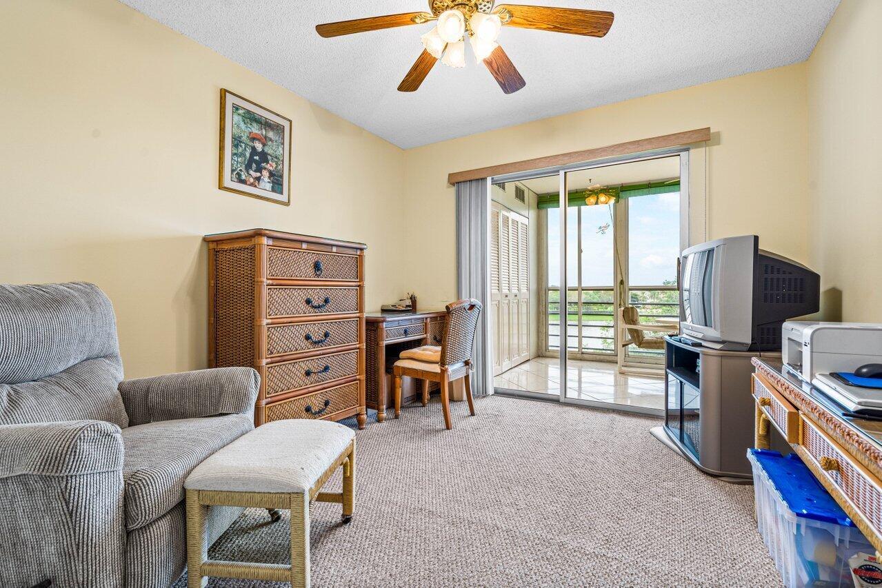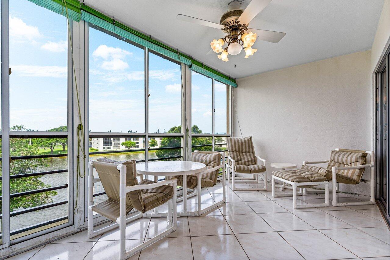 Desirable and spacious fourth floor unit with two bedrooms, two full baths and 1008 living square feet. This unit features tile throughout living area and carpet in the bedrooms, sliders to the patio from both the primary bedroom and second bedroom, large walk-in closets with California closet organizers, an updated walk-in shower in the guest bathroom, ceiling fans in every room (including the patio), and a screened in patio with added electric, a storage closet and beautiful long lake views. Wolverton is walking distance to the clubhouse and places of worship. Century Village is an active 55+ community with state of the art amenities.