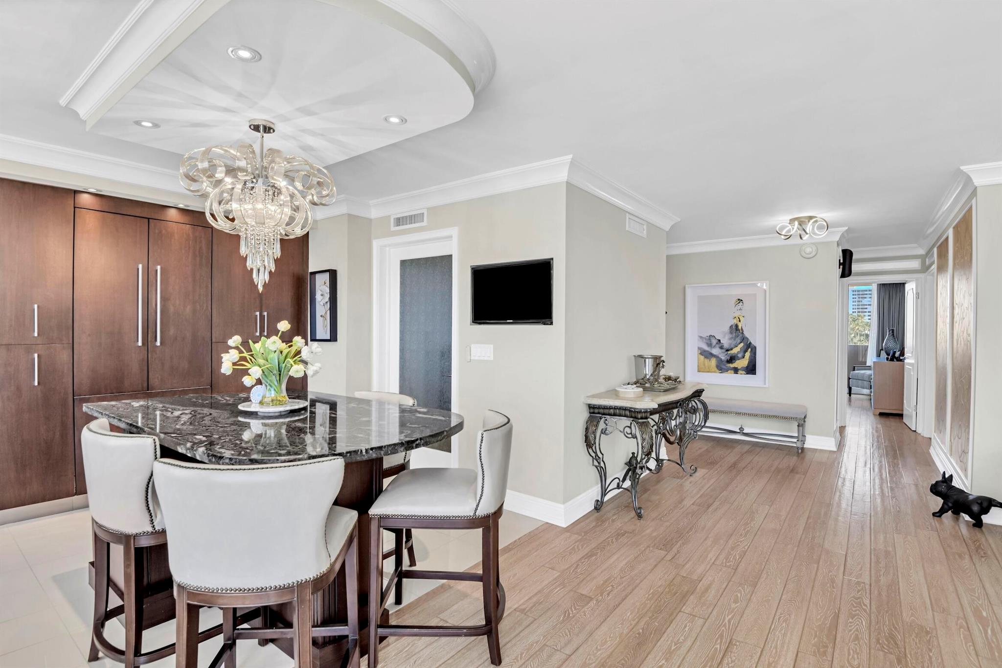 Your dream home awaits! This immaculate move in ready condominium is perfect for the most meticulous of buyers. Elegantly designed and graciously appointed and updated. The large kitchen island is a great family and friends meeting place or just the perfect location to look out at the ocean with a morning coffee. The seamless consistent wood flooring opens the space and is timeless. Beautiful fashion forward cabinetry is complemented by top of the line lighting throughout the home. Ocean views are available from the bedrooms and living spaces creating a backdrop of blue to warm your days, Whitehall is a very popular location and it boasts a very large beautiful pool, fabulous beach front and creative social spaces.Sellers are willing to negotiate furniture.