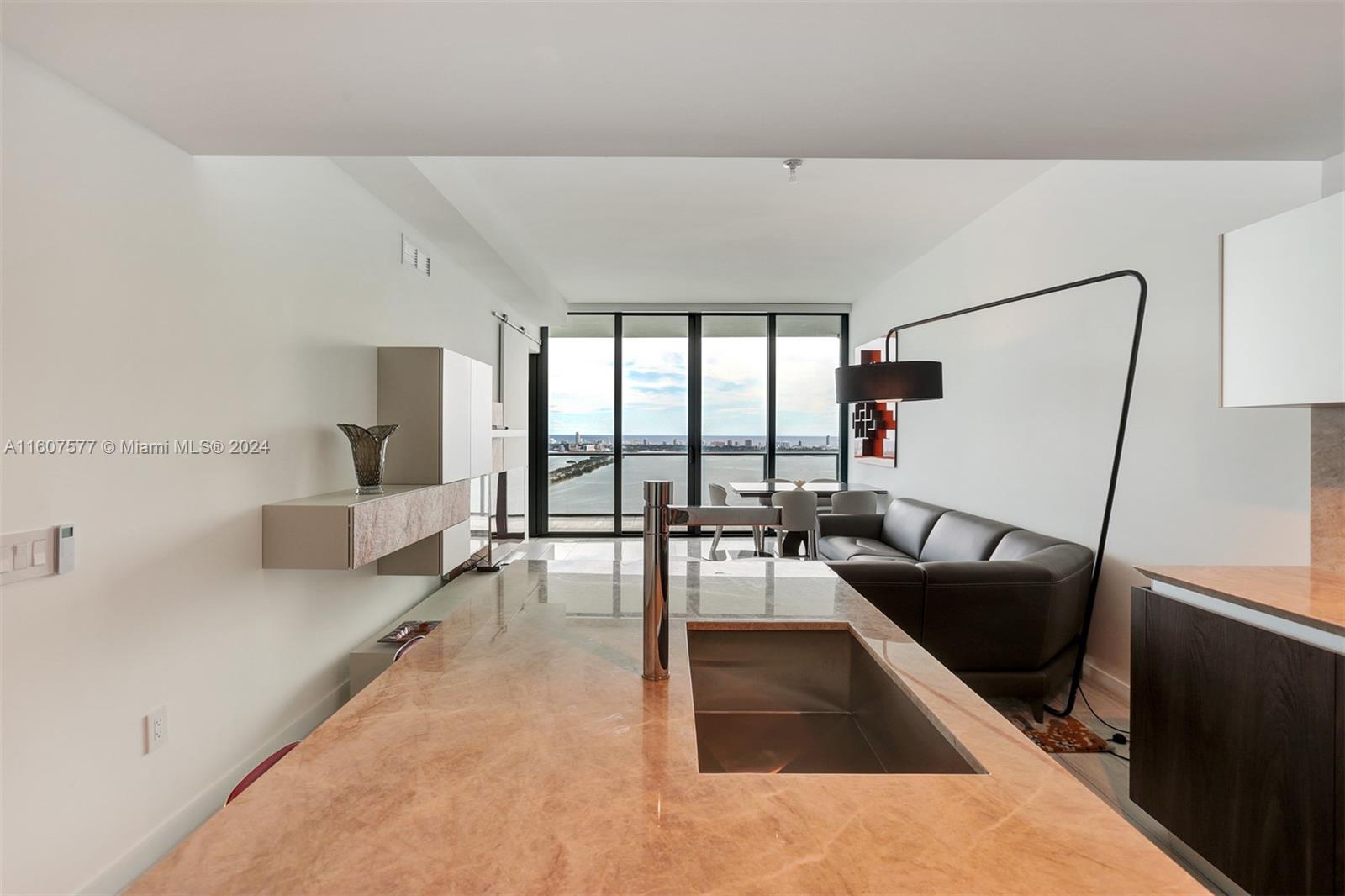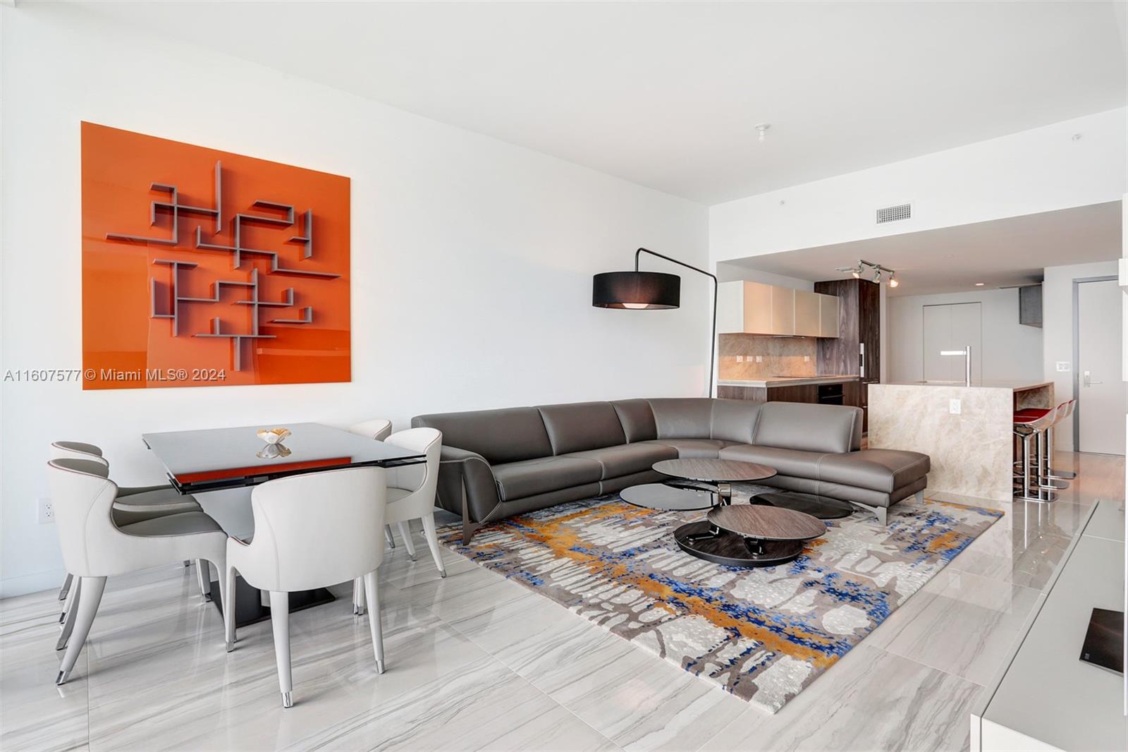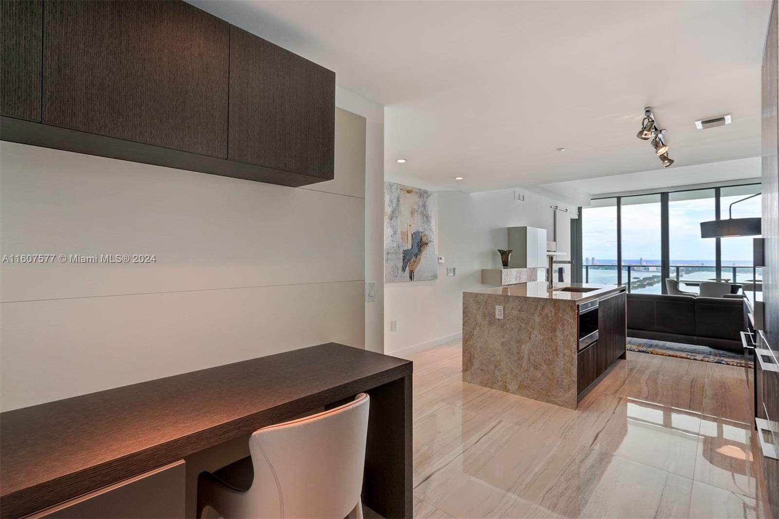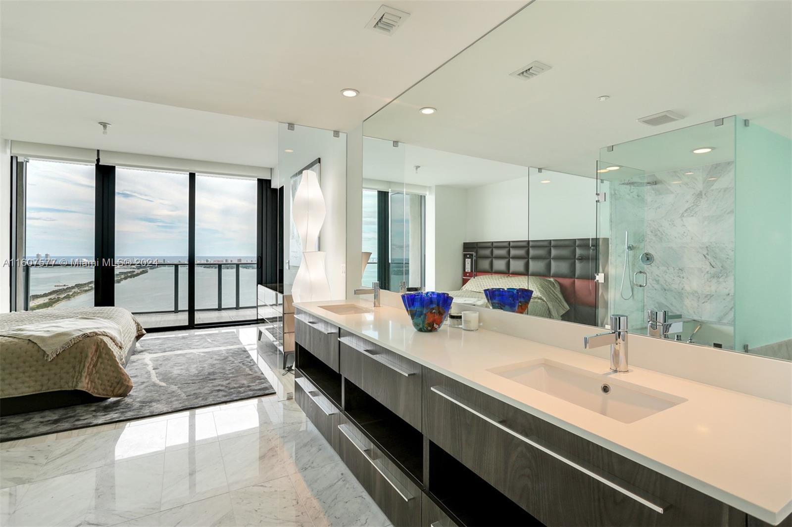 Custom finished and furnished residence with porcelain flooring, custom closets, window treatments. Sophisticated 1 Bedroom 1.5 bath + Office-Den unit in ONE Paraiso by Piero Lissoni. Luxurious finishes in kitchen and bathrooms, floor to ceiling glass panels to enjoy endless views to the Bay and the Ocean. Centrally located within Paraiso District in Edgewater. Extensive list of amenities: ground level pool, 2 pools on the 9th floor, 2 tennis courts, Bayview spa, Sauna, Steam room, spinning room, fitness center, massage rooms, screening room, party room, billiard room, wine room and more. One Paraiso offers a private enclave of luxury contemporary residences where breathtaking views over Biscayne Bay define a style of living that embraces both elegance and natural beauty. Easy to show.