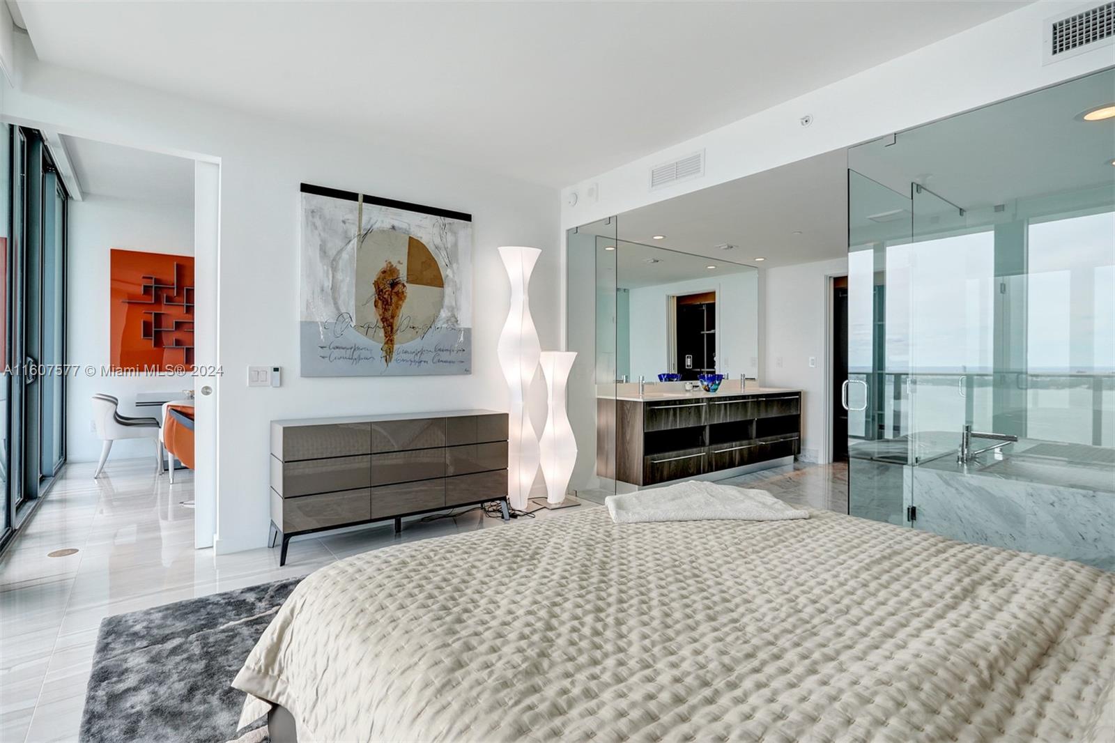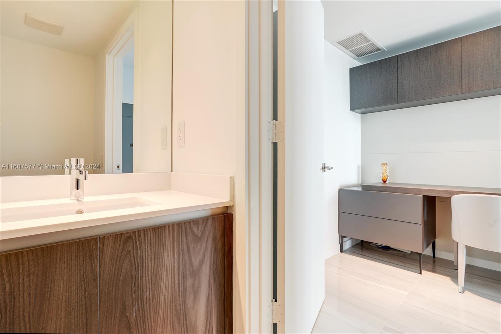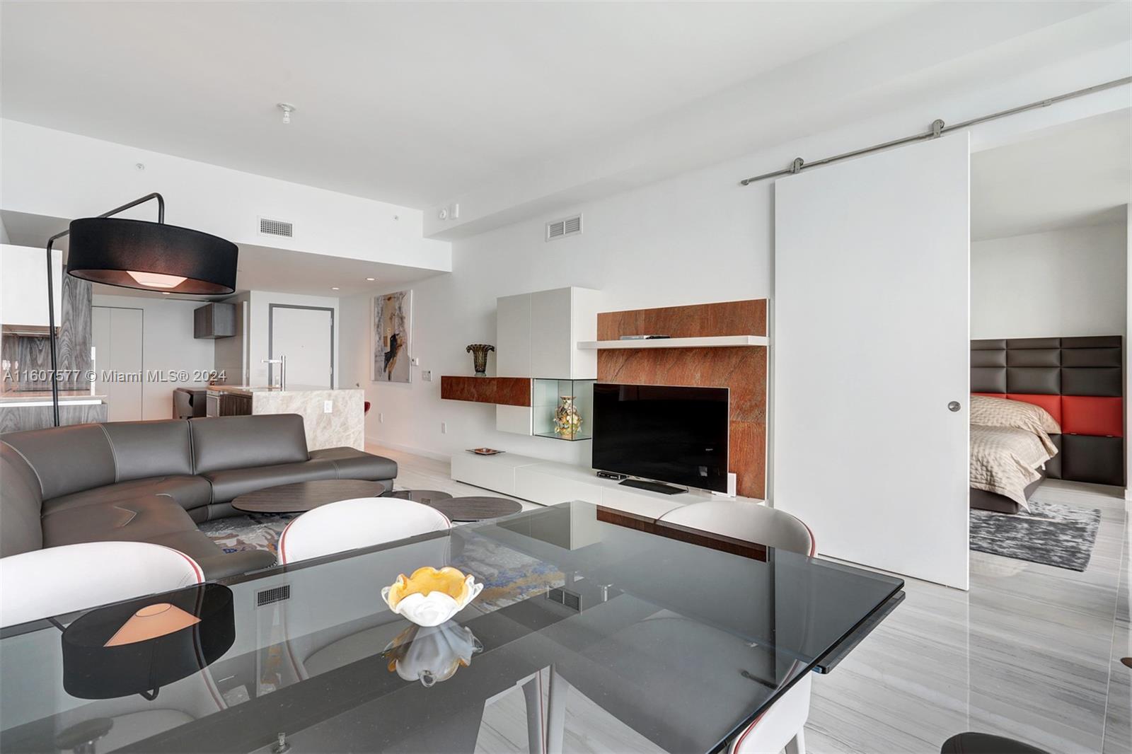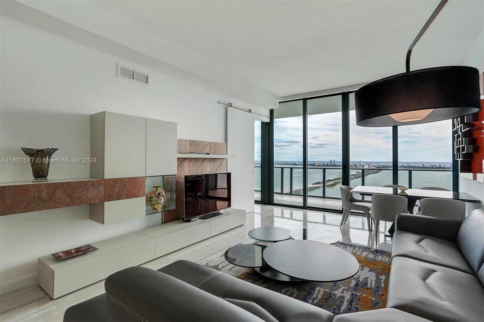 Custom finished and furnished residence with porcelain flooring, custom closets, window treatments. Sophisticated 1 Bedroom 1.5 bath + Office-Den unit in ONE Paraiso by Piero Lissoni. Luxurious finishes in kitchen and bathrooms, floor to ceiling glass panels to enjoy endless views to the Bay and the Ocean. Centrally located within Paraiso District in Edgewater. Extensive list of amenities: ground level pool, 2 pools on the 9th floor, 2 tennis courts, Bayview spa, Sauna, Steam room, spinning room, fitness center, massage rooms, screening room, party room, billiard room, wine room and more. One Paraiso offers a private enclave of luxury contemporary residences where breathtaking views over Biscayne Bay define a style of living that embraces both elegance and natural beauty. Easy to show.