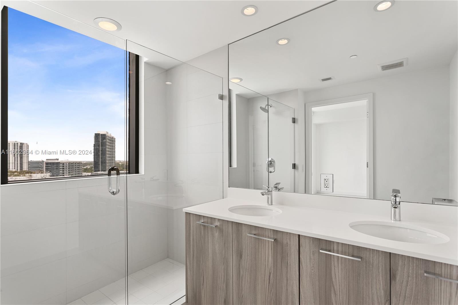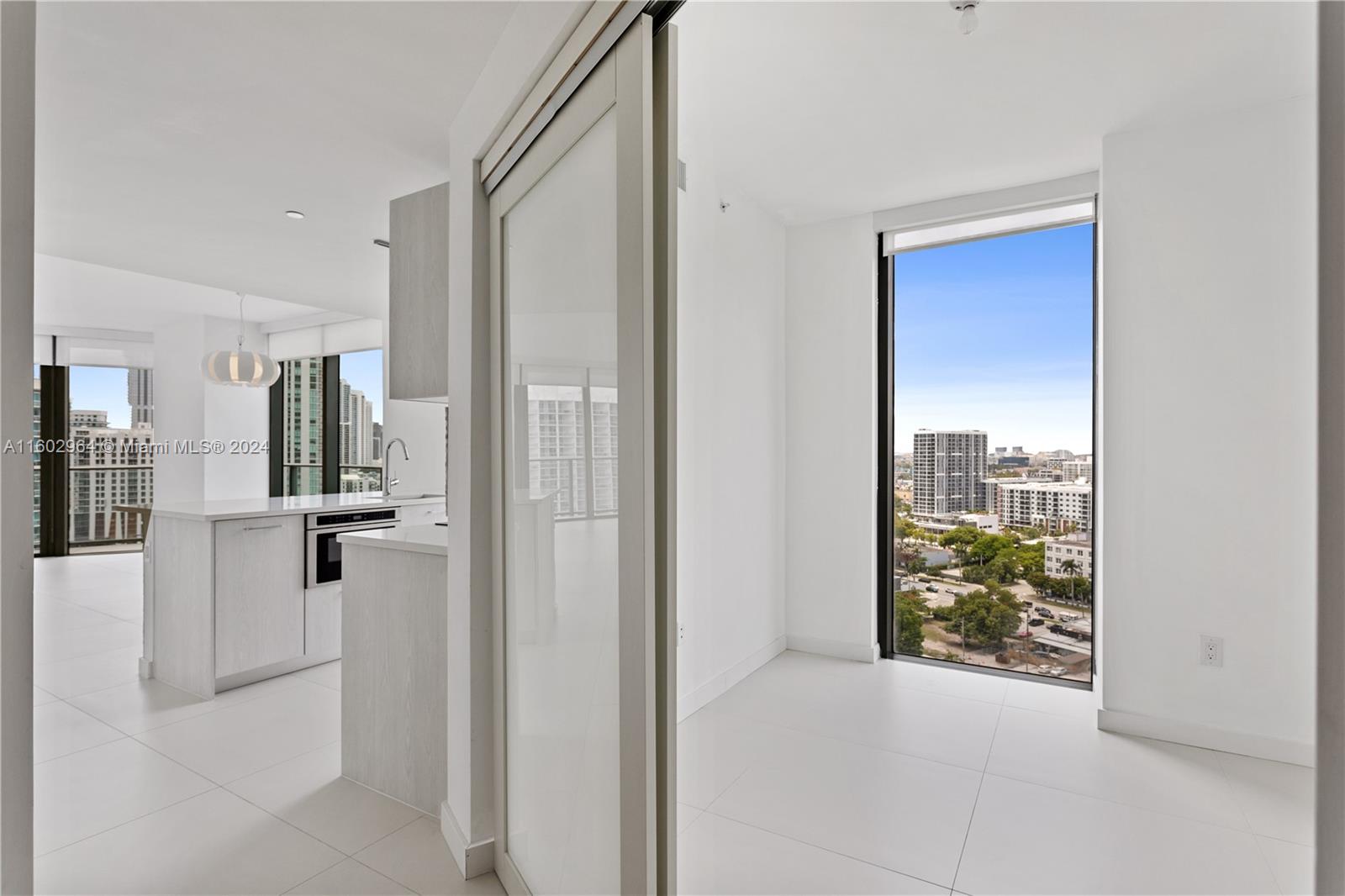 UPGRADED AND IMPECCABLE 2 BEDROOMS + LARGE ENCLOSED DEN/OFFICE WITH WINDOW (can be used as 3rd BEDROOM). This residence features a wrap-around balcony with great open views, custom closets and shades, and is located in Paraiso Bayviews. This is a newer modern building that offers spectacular amenities, including a rooftop pool, barbecue areas, a fitness center/spa, tennis court, and more. The location is unbeatable — Edgewater is booming! This vibrant, walkable neighborhood is packed with trendy restaurants and shops, surrounded by culture, art, and fashion, and just steps away from the Design District, Wynwood, and Midtown. CABLE AND INTERNET INCLUDED IN HOA. VACANT AND READY TO MOVE-IN!