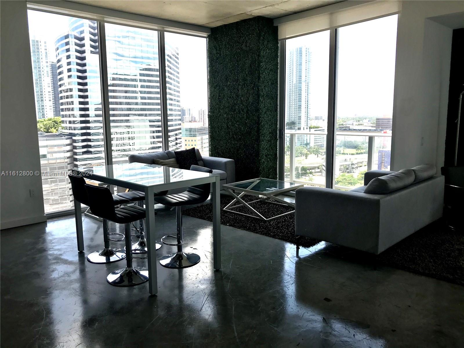 Discover urban elegance in this New York loft-style condo with 10' ceilings, located in the heart of trendy Downtown Miami and steps from Brickell’s vibrant dining and entertainment scene. This fully furnished 1-bedroom plus den, 2-bath unit features polished concrete floors, Italian-style cabinetry, stainless steel appliances, a walk-in closet, and an in-unit washer and dryer. Floor-to-ceiling windows in the living room and bedroom offer stunning water and city views. Enjoy state-of-the-art amenities, including a health club with sauna and steam room, and a breathtaking rooftop pool. Basic cable and internet are included. Transform the unit into a 2-bedroom with ease. Experience modern living at its finest.