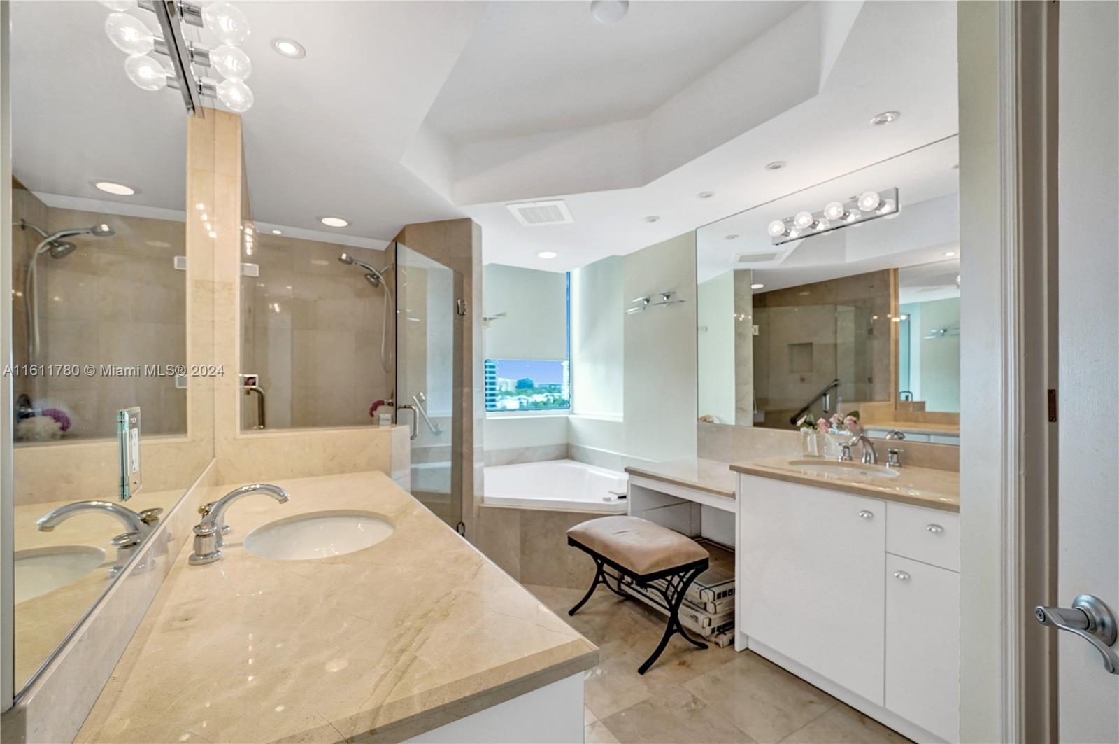 Lovely condo situated in The Parc at Turnberry in the heart of Aventura, boasting views of the Intracoastal, Ocean, and marinas. The unit offers a private elevator and foyer. Kitchen with SS appliances, wood cabinets, granite countertops, tiled backsplash and a stylish breakfast nook. Spacious 2 BD, 3 BA, in addition a versatile closed den with closet that can serve as a third bd. or office, with a full bath next to it. Primary BD features two separate balconies, primary & second BD have its own En-suite bathroom. W/D, Shabbat elevator and Impact windows. Enjoy five-star amenities - pool, kids pool, Jacuzzi, men & women's spa, massage rooms, gym, billiard & party room, business center & children's tot lot. Two pets up to 35 lbs. are welcomed conveniently located near houses of worship.