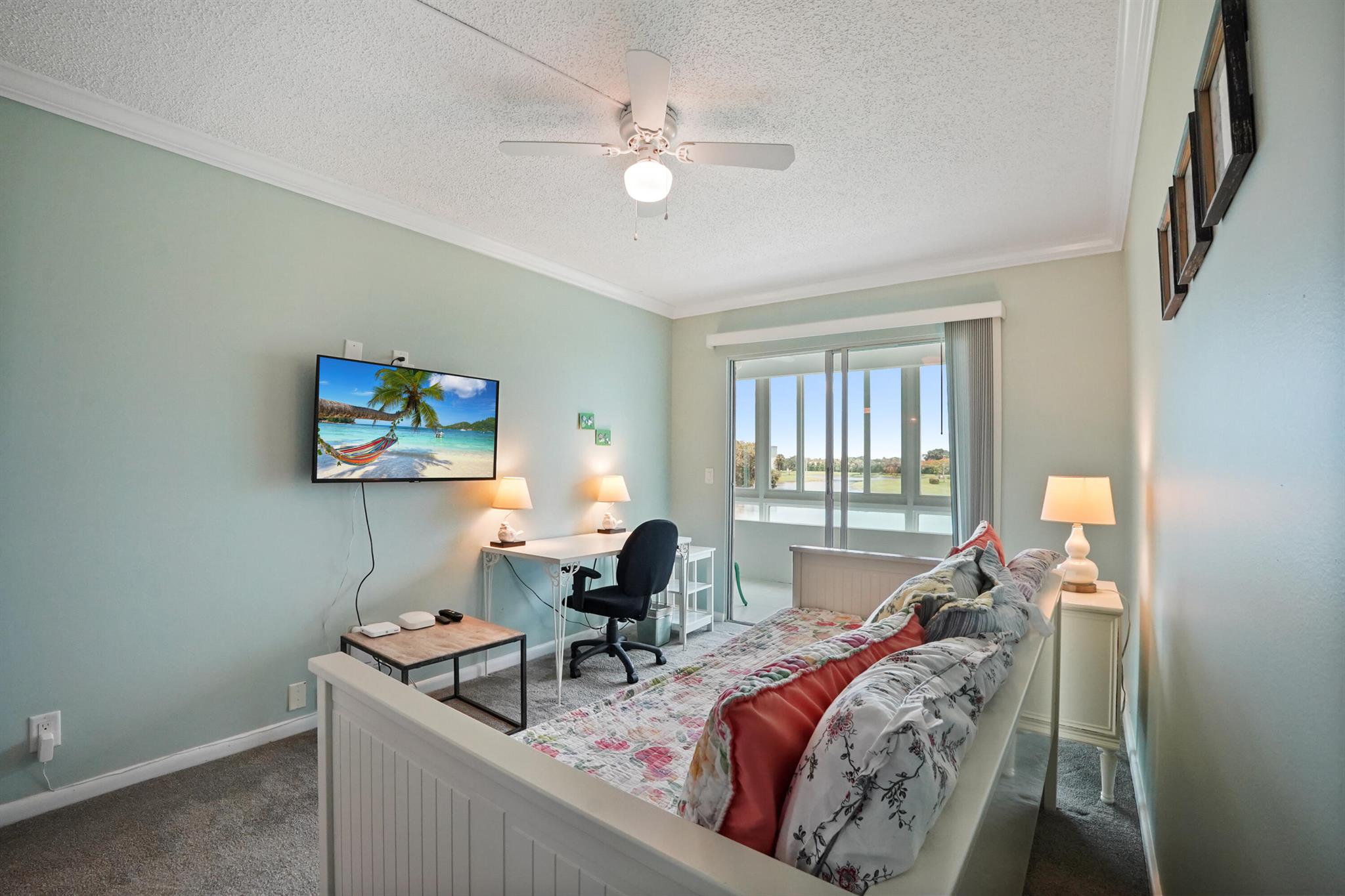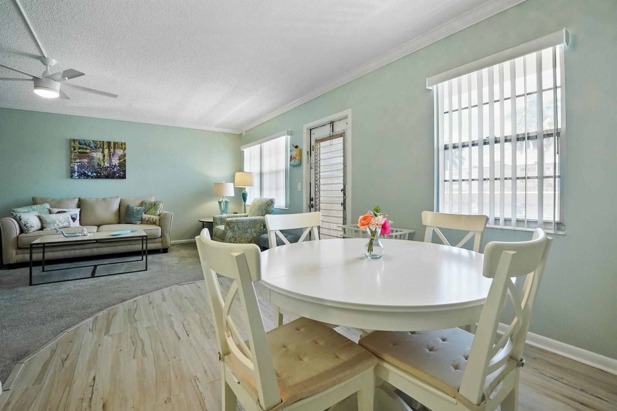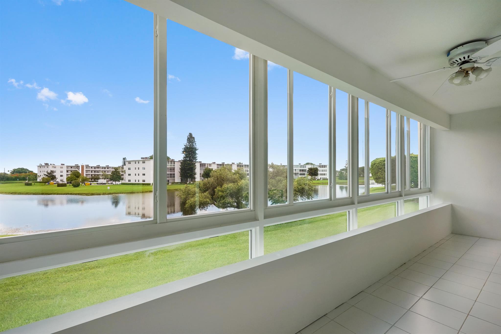 WOW, WHAT A FASCINATING AND BREATHTAKING LAKE VIEW! AN IMPACT PATIO WINDOWS!Let us introduce this gorgeous, bright unit in the vibrant Adult Community of Century Village.The renovated unit includes large impact windows on the patio, allowing plenty of natural light and enhancing safety. You can enjoy the breathtaking panoramic view of the lake while having your morning coffee, unwinding with an evening drink, or hosting family gatherings and special events. To complement the unit, you will be impressed by the beautiful touch of crown molding and baseboards throughout. The kitchen is a chef's dream, boasting stainless steel appliances, stunning granite countertops, a tile backsplash, and luxury vinyl flooring.