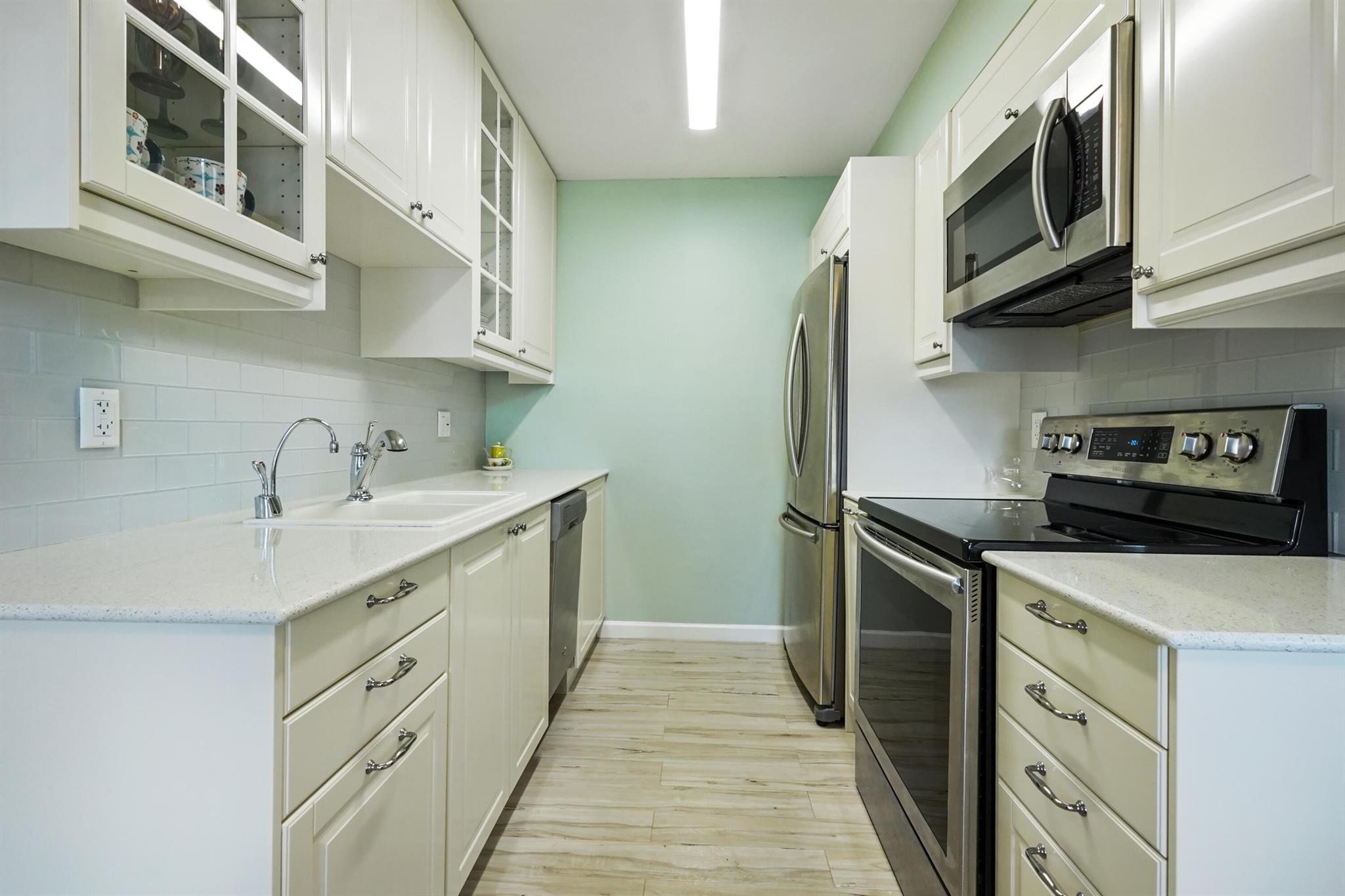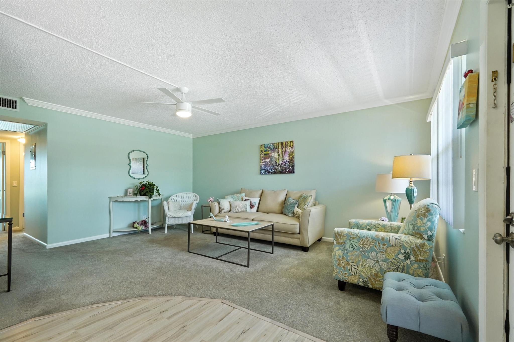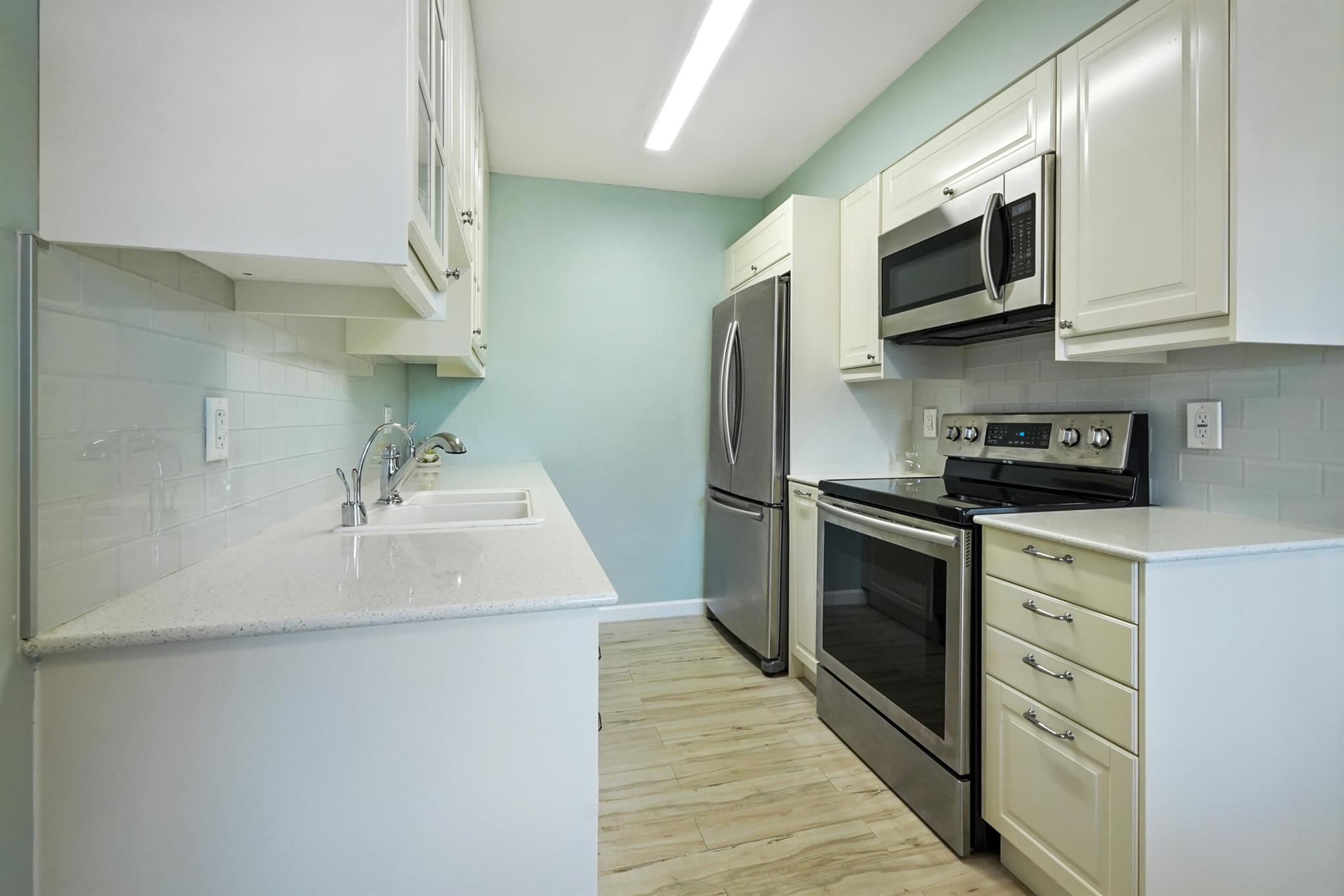 WOW, WHAT A FASCINATING AND BREATHTAKING LAKE VIEW! AN IMPACT PATIO WINDOWS!Let us introduce this gorgeous, bright unit in the vibrant Adult Community of Century Village.The renovated unit includes large impact windows on the patio, allowing plenty of natural light and enhancing safety. You can enjoy the breathtaking panoramic view of the lake while having your morning coffee, unwinding with an evening drink, or hosting family gatherings and special events. To complement the unit, you will be impressed by the beautiful touch of crown molding and baseboards throughout. The kitchen is a chef's dream, boasting stainless steel appliances, stunning granite countertops, a tile backsplash, and luxury vinyl flooring.