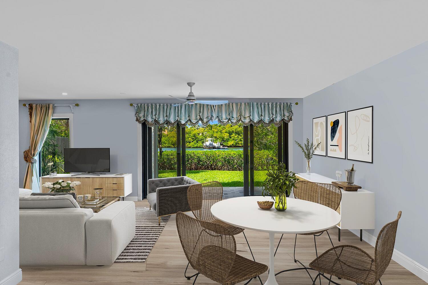 RENOVATED 2 bedroom WATERFRONT condo with PRIVATE backyard ''limited common area'' on the Intracoastal. Walk across the street to the OCEAN with PRIVATE gated BEACH access! Bright new kitchen with open concept dining & living room, with upgraded Impact hurricane windows & slider that is great for entertaining. This 2-bed (previously 3 bedroom), 2.5-bath home with large master bedroom & ensuite bathroom, walk-in closet & private laundry room. 2nd bedroom also has a full bathroom & walk-in closet.Located only steps to the heated waterfront pool and assigned parking near the unit at the end of covered walkway. BBQ area, doorman, on-site manager and the private beach access across the street. Only 20 minutes to to the Palm Beach airport, close to shops & the Old Key Lime House