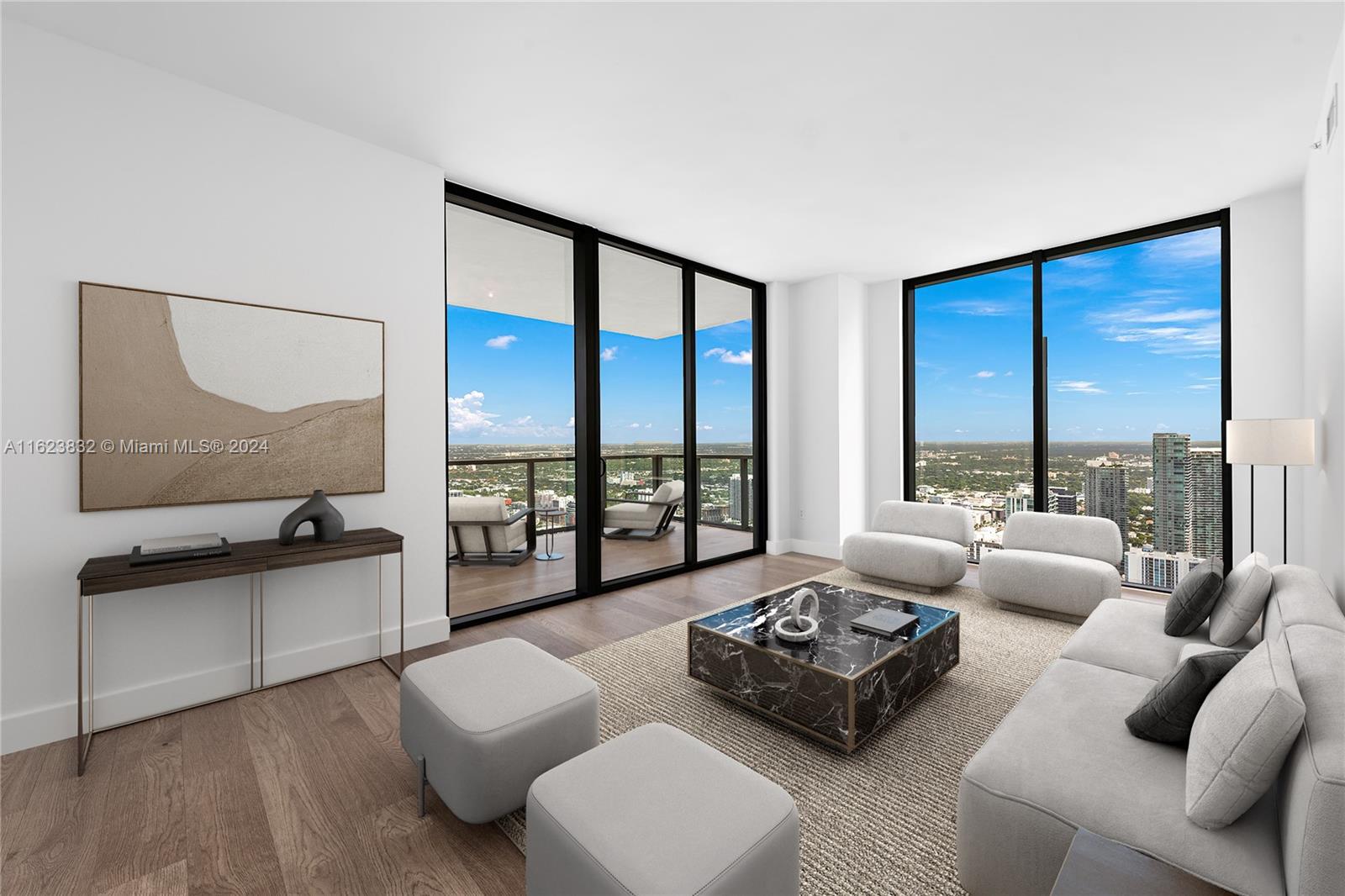This is your opportunity to experience the PINNACLE of elevated Miami living - bar NONE. Positioned on the 55th Floor of the Elysee building, the panoramic views of the ocean, bay and Miami Beach skyline will mesmerize you upon entry. This flow-through unit spans East to West, encapsulating 4 beds/4.5 bath plus a large media room/den. The state-of-the-art kitchen is designed to entertain: Equipped with Italkraft cabinetry, Wolf and Subzero appliances and a gas cooktop, the kitchen is rivaled only by the memories you will create. Amenities include: a sunrise and sunset pool, top-tier gym, 30th floor private owner’s lounge, kid’s playroom, valet and 24-hour concierge. With entry via your own private elevator foyer, this “house in the sky” provides unmatched privacy and tranquillity.