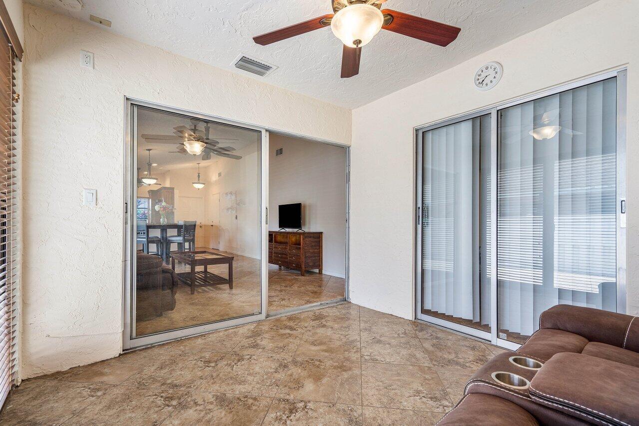 MOTIVATED SELLER! Welcome to easy living in this 2/2 villa located in Boca Raton's desirable, gated Whisper Walk 55+ community. Boasting nearly 1500 square feet of living space, this charming villa offers an open floor plan. Enjoy the extra space in your under-air, enclosed Florida room or on the large outside patio. Residents enjoy access to the Eastgate community clubhouse and pool, which are walking distance from the villa, as well as 4 other community pools, shuffle boards, pickleball & tennis courts, a putting area, fitness center, sauna, library, and community walking path, fostering a vibrant and active lifestyle. Conveniently located near the Turnpike and central to all the wonderful things Boca Raton has to offer, schedule your appointment today!