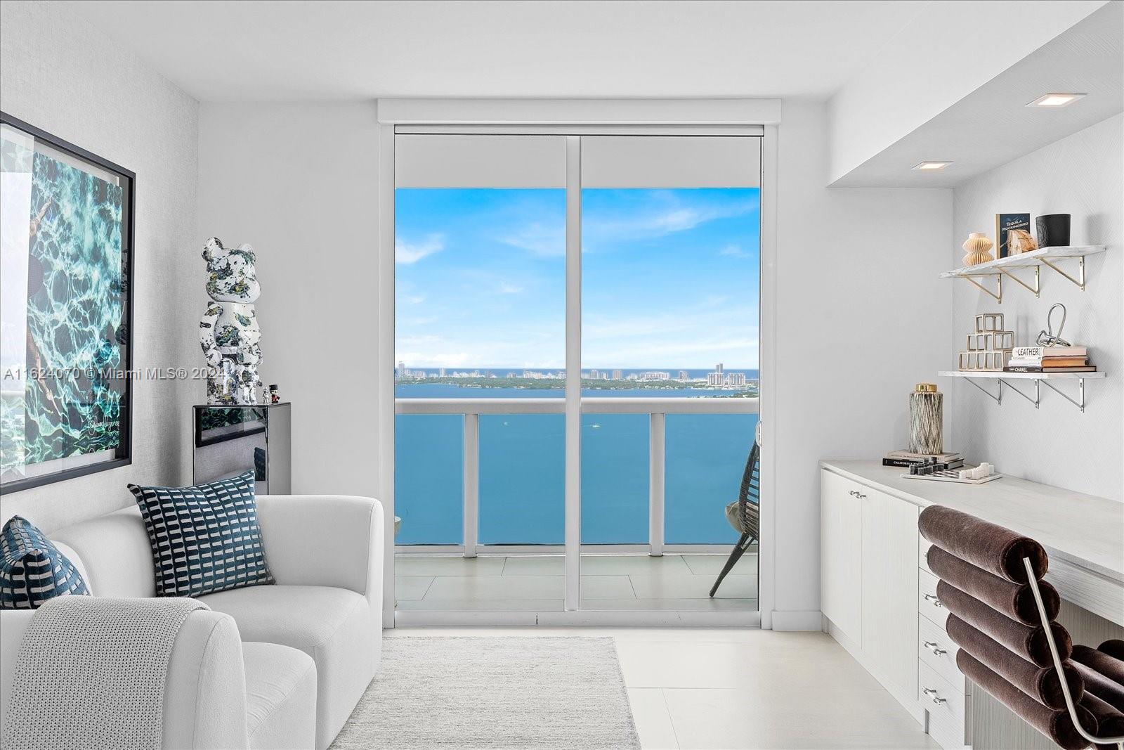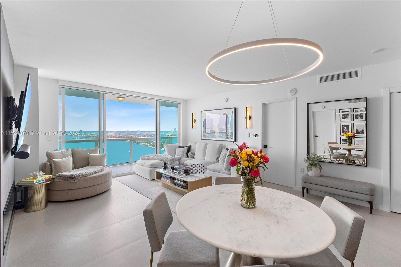Nestled in the vibrant heart of Miami, this exceptional 2 bedroom, 2 bathroom residence boasts a privileged position with spectacular direct bay and ocean views. As you step into this luxurious abode, you are greeted by a seamless blend of contemporary elegance and waterfront tranquility. The open kitchen, granite countertops, sophisticated wood cabinetry, and state-of-the-art appliances. Natural light floods every corner, creating an airy and inviting atmosphere that enhances the living experience. Beyond its exquisite interior, this property offers unparalleled access to Miami's dynamic lifestyle. Located just moments away from South Beach, Downtown and Brickell.