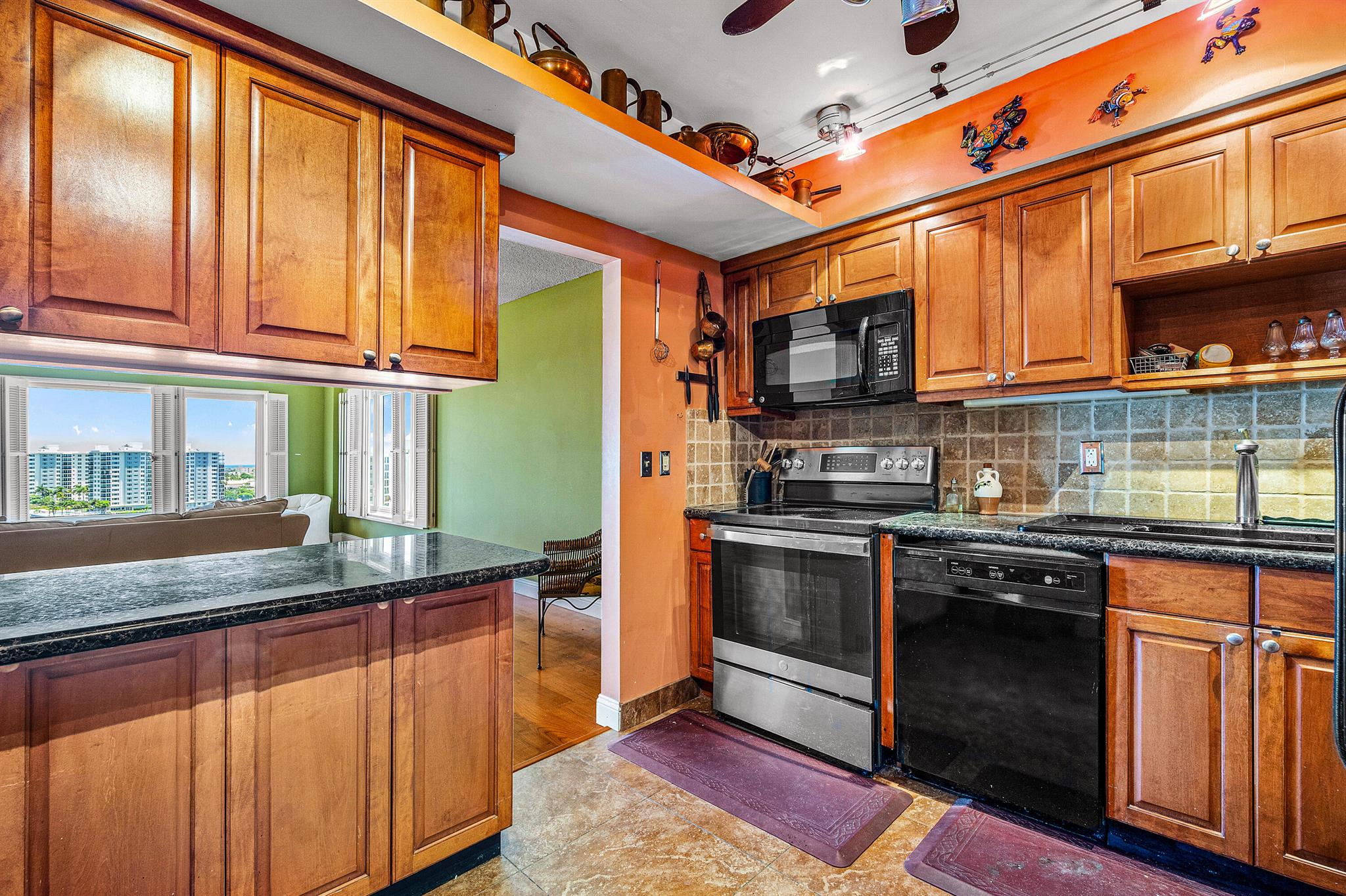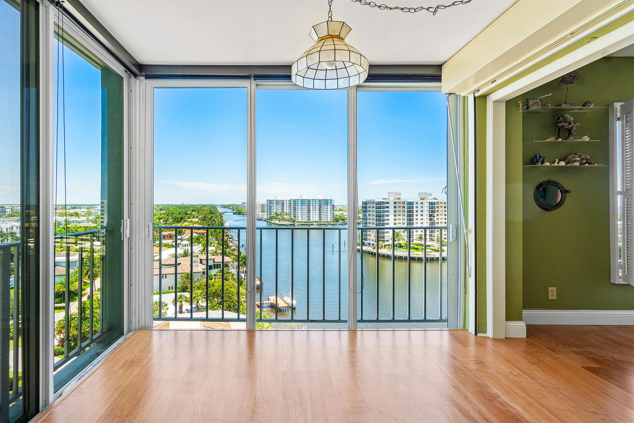 11th floor, 2/2 with waterfront views of the ICW and the Atlantic Ocean. This unit is a solution for a buyer that is looking for incredible views with an opportunity to make the unit their own. A carport space is assigned to the unit. Short distance (.64 miles) to Atlantic Ave. Short distance (1.2 miles) to the beach. 24/7 security. Impact windows. Application fee is $150 and deposit is a $500 refundable move-in deposit. Financing requires 20% down. No rentals allowed. No Pets. No Washer and Dryer in unit. Common laundry room on each floor. Additional 85 sq. ft. of the enclosed porch area is included in the living sq. ft. All measurements are approximate and subject to error, omission, and changes without notice.