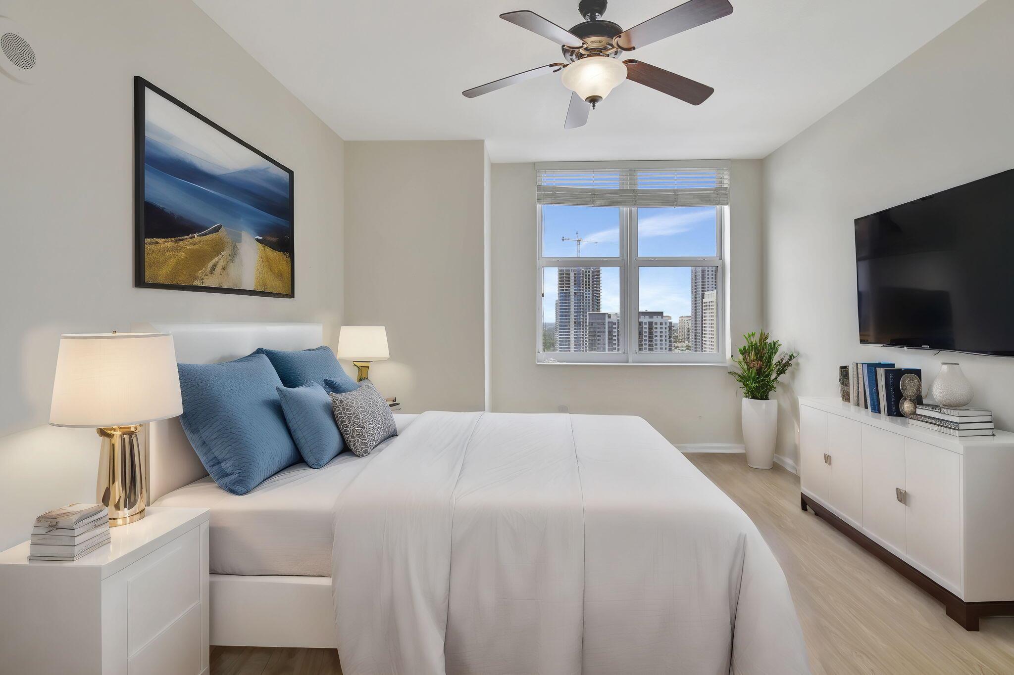 THE LAGEST ,MOST UNIQE 2 BEDROOM RIVER VIEW FLOOR PLAN IN THE BUILDING IN THE HEART OF FORT LAUDERDALE ! High floor ,corner unit in the popular ''14'' Stack. Stunning River ,Sunset , South Facing Views Additional living room window fore more natural light than the typical 2 bedroom unit in Great condition , move in ready . HOA includes unlimited water and all amenities . Pet & investor friendly. Resort style Amenities : 24 hr. concierge ,security , front desk , rooftop, pool w / unrivaled panoramic city , river & ocean views , sky lounge ,BBQ grills . fitness center , basketball + racquetball courts, yoga , jacuzzi , steam rooms, saunas ,meditation garden and more .Located directly on the New River & River walk .Walk 5 min to Las Olas Blvd for restaurants, Shops , nightlife & more.