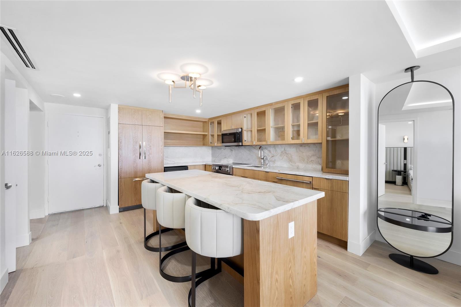 This is it! Spectacular 1 bed/1 bath at the Royal Atlantic. Completely gutted & totally renovated DIRECT OCEAN VIEW apartment in the best area of South Beach SOFI. Prestigious Italian Gres porcellanato floors, Italian custom-made kitchen cabinets, Fulgor Milano appliances, Tay Mahal quartzite countertop, Insinkerator instant hot water dispenser for tea/coffee, motorized dual shades, glazed blue porcelain mosaic tile walls in the bathroom with Italian marble arabescato floor, washer/dryer & many other details to mention. Amazing wide views of the beach and ocean. The Royal Atlantic is perfectly located in the SOFI area with all the best restaurants walking distance & sits right on the sand with its own private and complimentary beach service, gym & pool area overlooking the Atlantic Ocean.