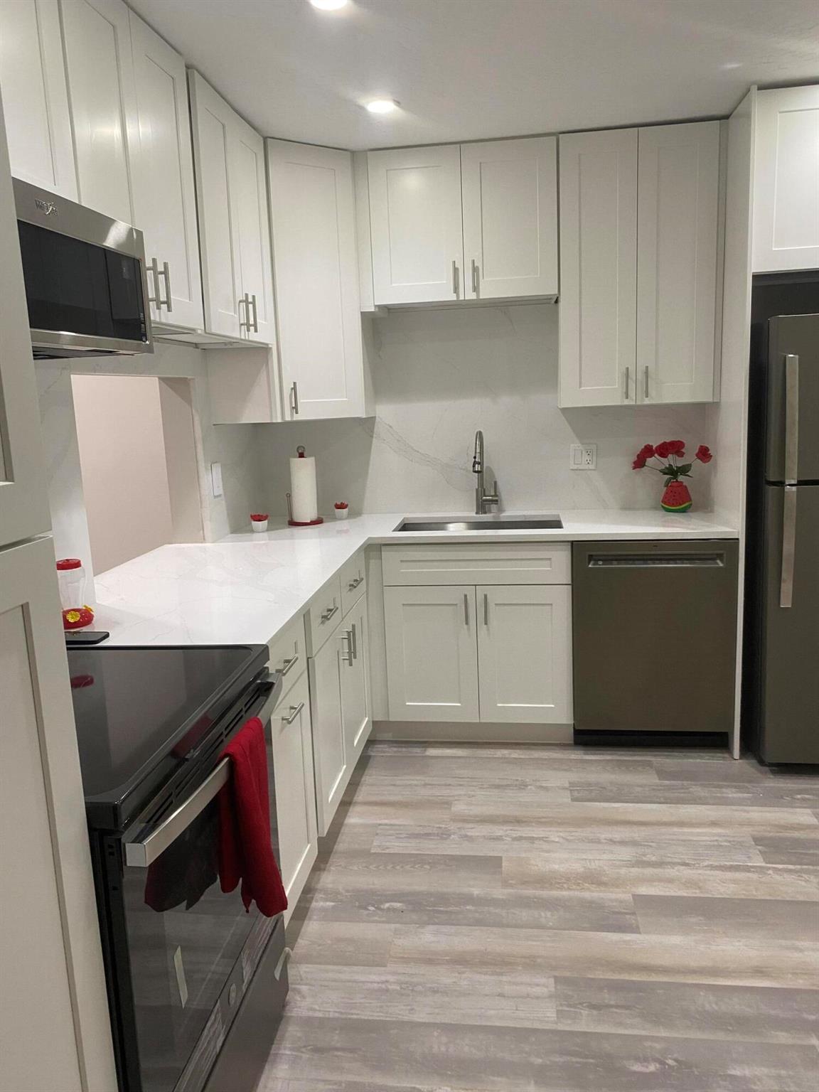 This villa has been completely renovated. It has been remodeled to reflect the refreshing appeal of a new construction. This villa offers vinyl flooring throughout the unit. Beautiful white wooden kitchen cabinets/Quartz countertop. The new kitchen appliances are a modern flare of stainless steel. The front windows are secured with accordion shutters. The patio is newly screened with slate flooring. It offers an amazing lake view. This villa is central to restaurants and services. It is located within a mile of Florida's Turnpike. A Courtesy bus is scheduled twice a week to transport residents for their shopping needs. The Community also offers a full time Social Director to coordinate resident activities. This gated community has 24 hour manned security. This villa checks all the boxes!