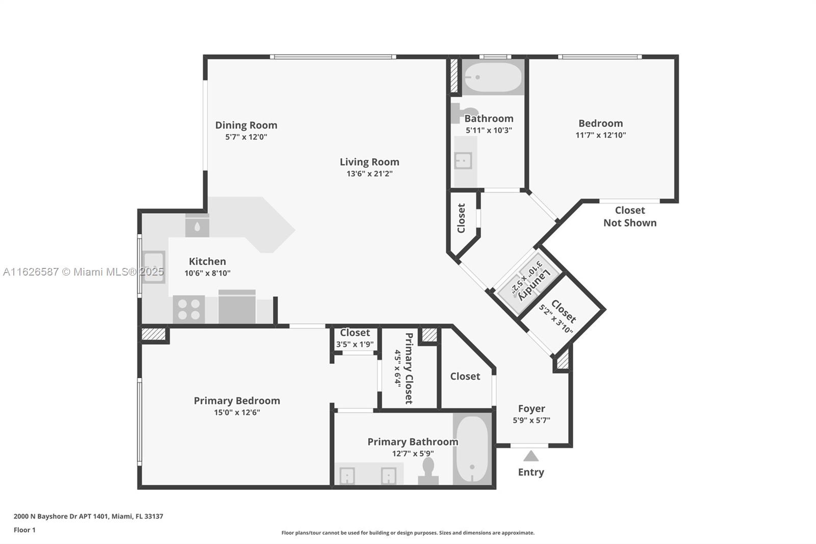 * * * Stunning 2-bed, 2-bath corner unit in Edgewater! This bright, updated unit features a split floor plan, large windows with city and Biscayne Bay views, and in-unit washer/dryer. The full-service building offers valet, concierge, 24-hour security, a heated pool, jacuzzi, gym, business center, and more. Across from Margaret Pace Park with walking paths, tennis, basketball, dog park, etc. Walk to Publix, metro mover, shops, restaurants and cultural venues. Seller covers balance of Special Assessment at closing. Building has full reserves.