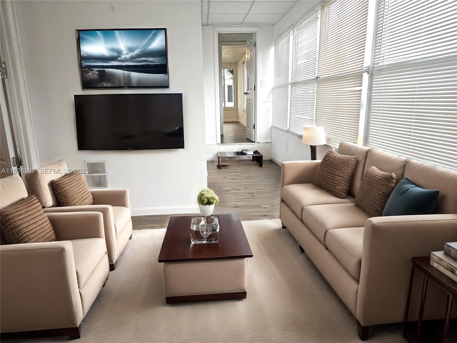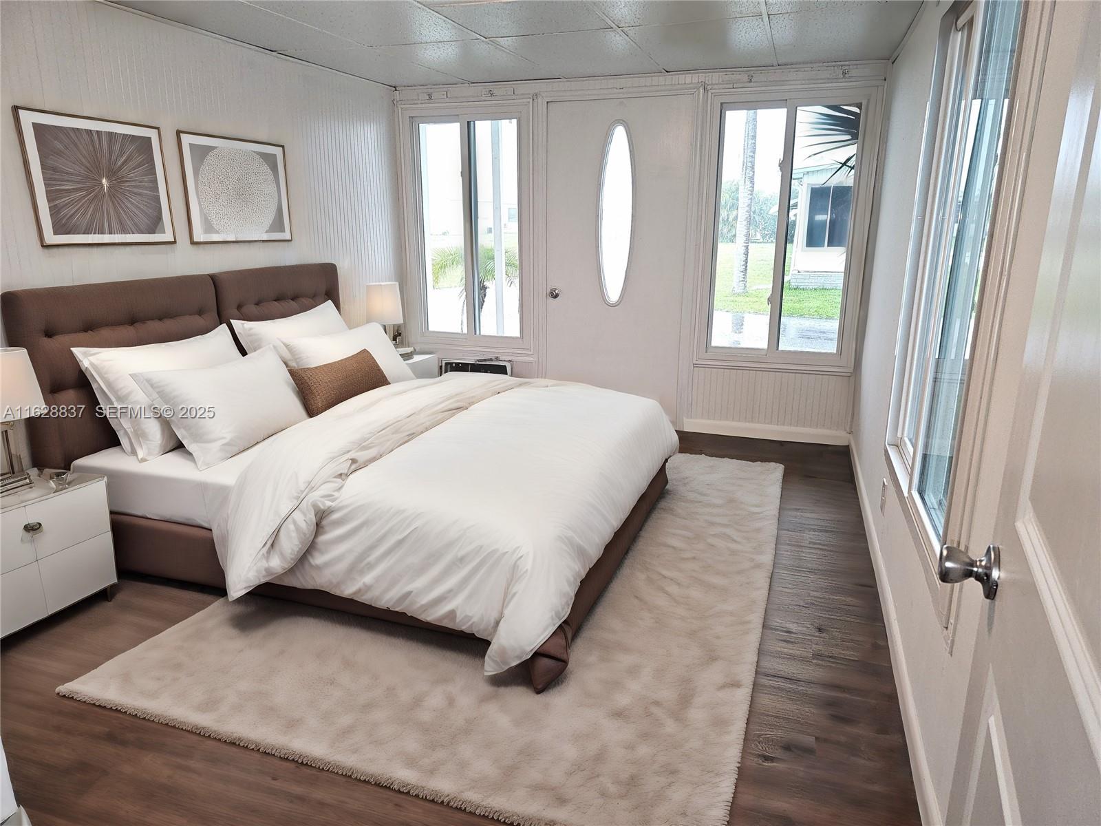Welcome to your new home in the highly sought-after 55+ Tamiami Village community! This spacious doublewide manufactured home features 2 bedrooms, 2 bathrooms, and is ready for its new owner. The kitchen is a chef's dream with granite countertops, stainless steel appliances, and a center island perfect for entertaining. The oversized family room is inviting with beautiful wood flooring throughout. The master suite is connected to a sunporch or sitting area and a screened lanai, creating a true retreat where you can relax and enjoy the Florida sunshine in peace and privacy. The guest bedroom has its own entry door and an armoire with hanging rods, shelves, and drawers. This co-op community offers a variety of amenities, including 2 clubhouses, an exercise room, 3 heated pools, a hot tub, sauna, and more. The convenient location of this home provides easy access to I-75, as well as a range of restaurants and shopping options. Additionally, the attached shed with a laundry area offers added convenience and storage space. Whether you're seeking a peaceful retirement retreat or a vibrant community to enjoy your golden years, this home has it all. Don't miss the opportunity to own a piece of paradise in Tamiami Village - schedule a showing today and make this home yours! Please note that virtual staging was used and the home is not furnished.