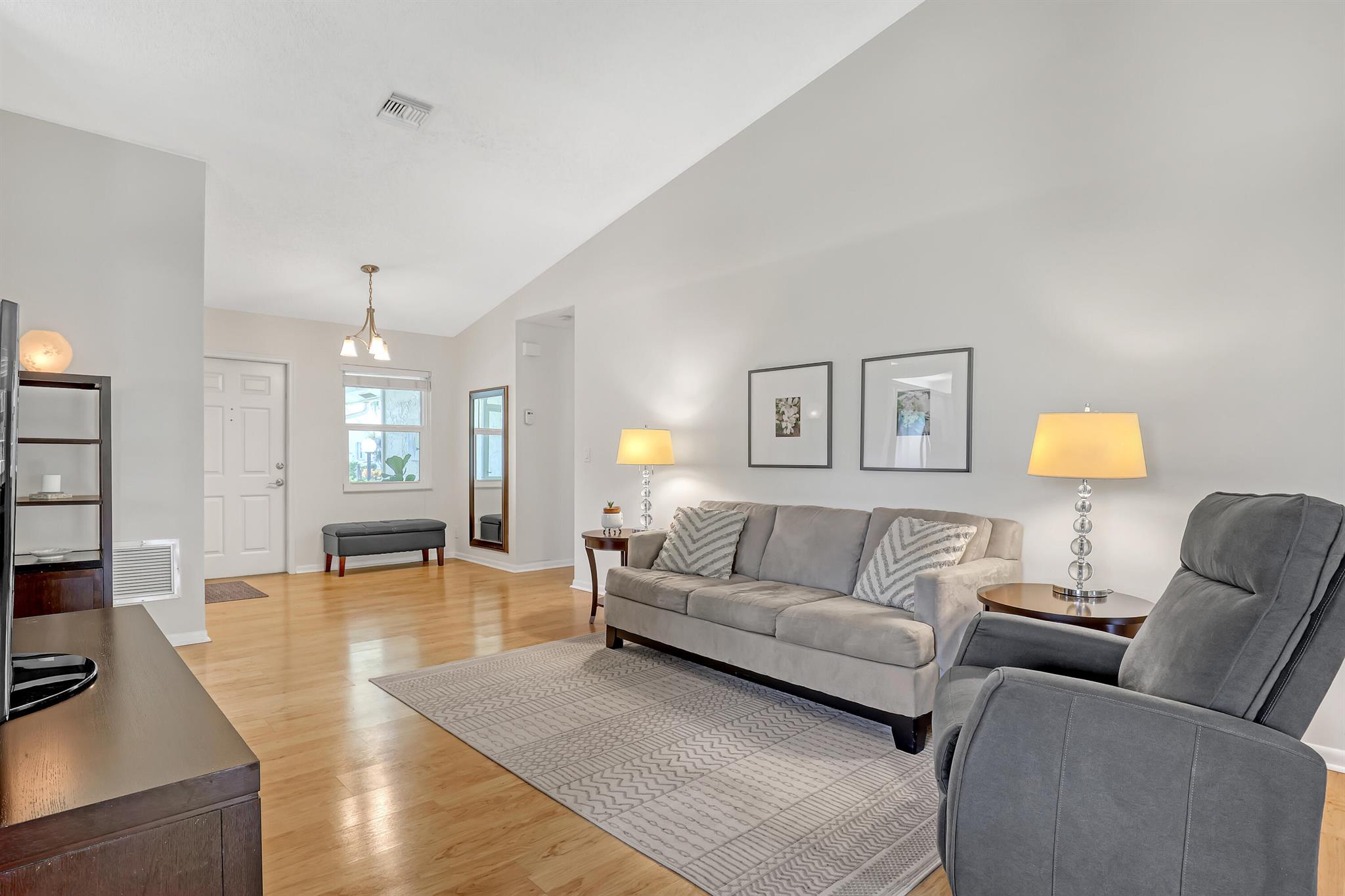 Beautiful and spacious well maintained home in a secluded area of the community. Features include impact glass windows in the living areas, remodeled bathrooms, one year old washer & dryer, extra attic insulation, open front porch seating, enclosed patio. Plat 9 will be repainting exteriors on all homes in 2025. Cypress Lakes is an active 55+ community with FREE golf, mini golf course, pool, hot tub, sauna, fitness centers, tennis, pickleball, shuffleboard, bocce, and so much more. Close to major highways, airport and downtown.