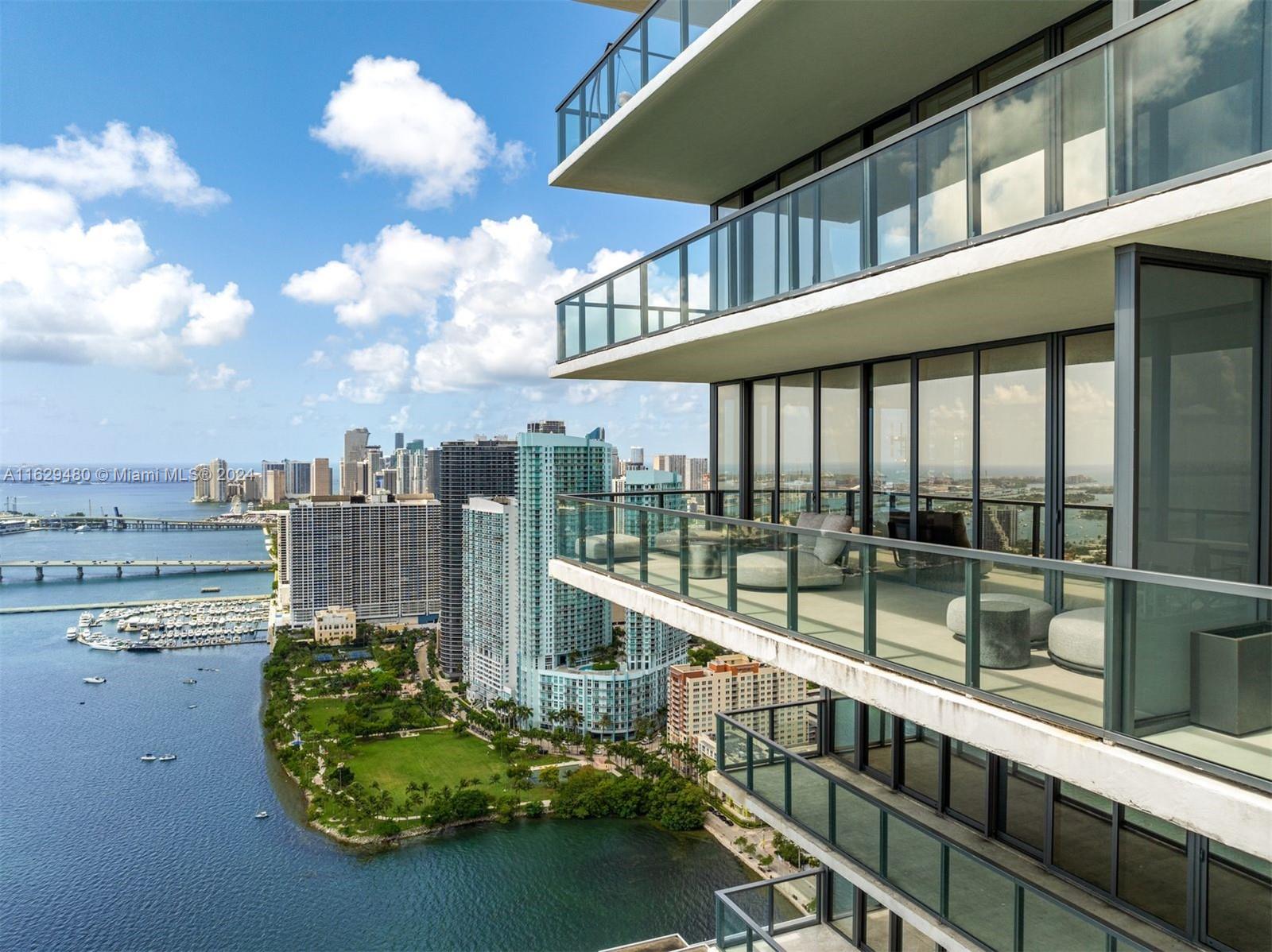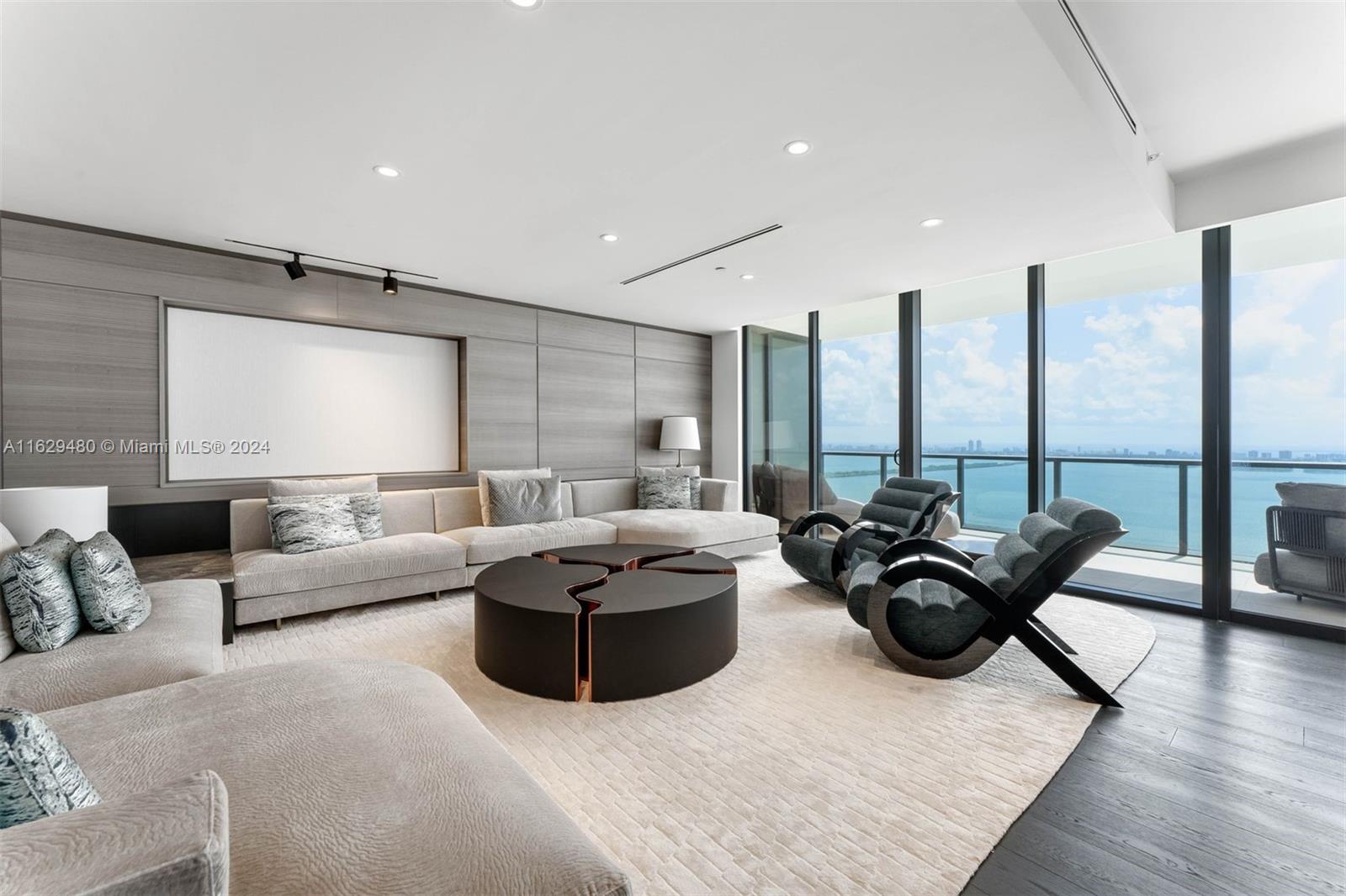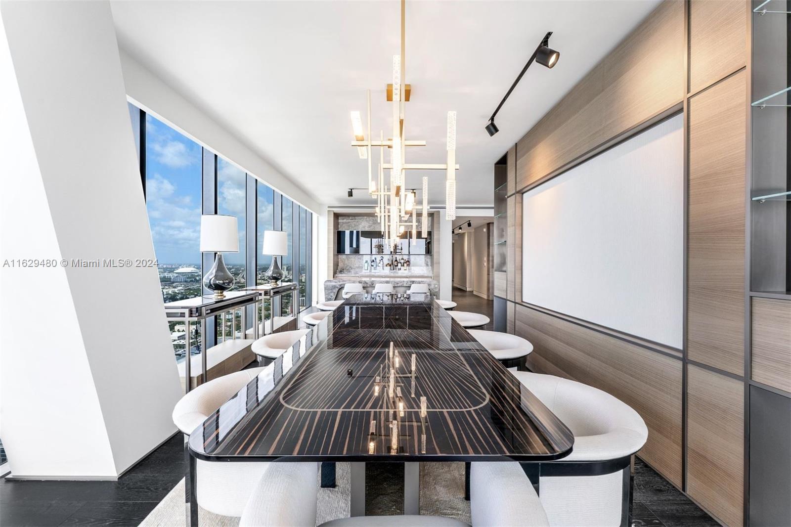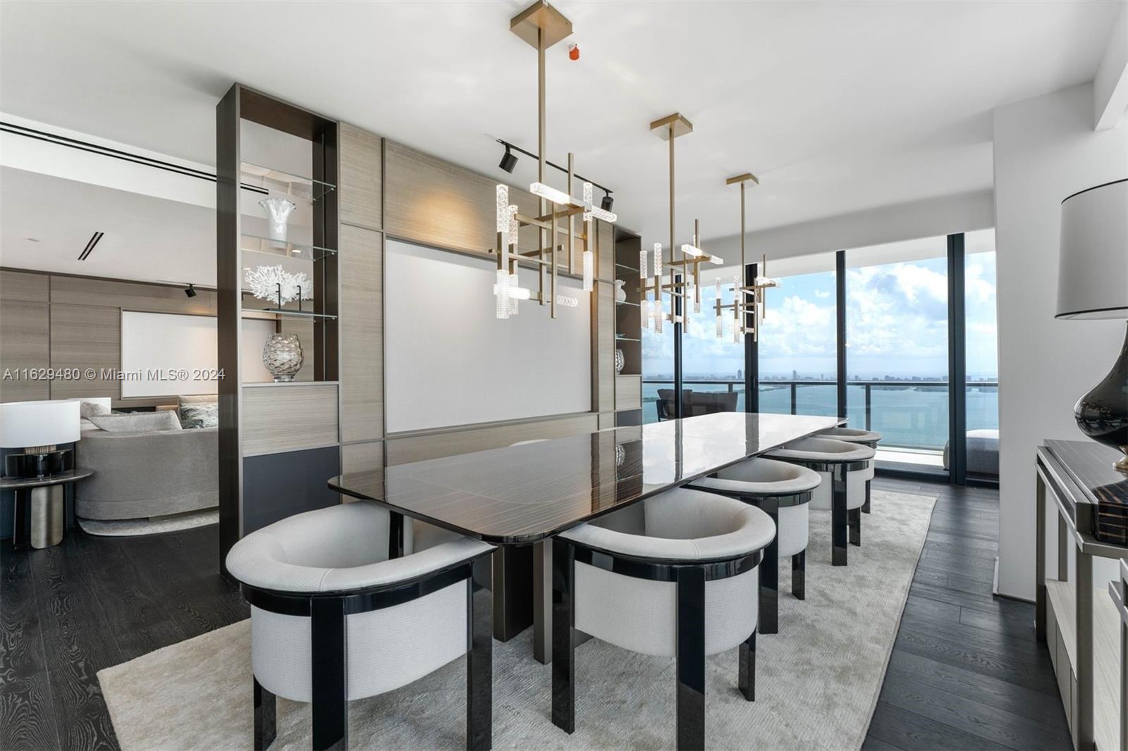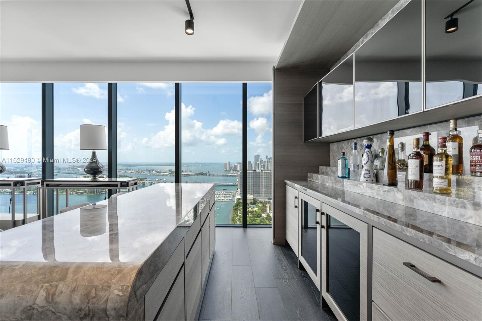 Indulge in luxury living with this 3 BR, 3.5 BA home in the sky, offering unparalleled elegance & sophistication. Spanning 3,500 sq ft, this residence features bespoke finishes, Italian-designed furniture, & rich hardwood flooring. A private foyer leads to a grand salon w/ panoramic views of Biscayne Bay, Miami Beach, & city skyline. The European-style kitchen boasts custom cabinetry, Wolf appliances, & a natural gas cooktop. Primary suite includes a dressing area, walk-in closet, & formal office. Advanced tech features include Lutron Lighting, Josh AI voice control, & Sonos. Fully furnished, turnkey & move-in ready. 5-star Amenities include: gym, spa, business center, 2 pools w/ bar, catering kitchen, & exclusive Sky Lounge designed by Jean-Louis Denoit.