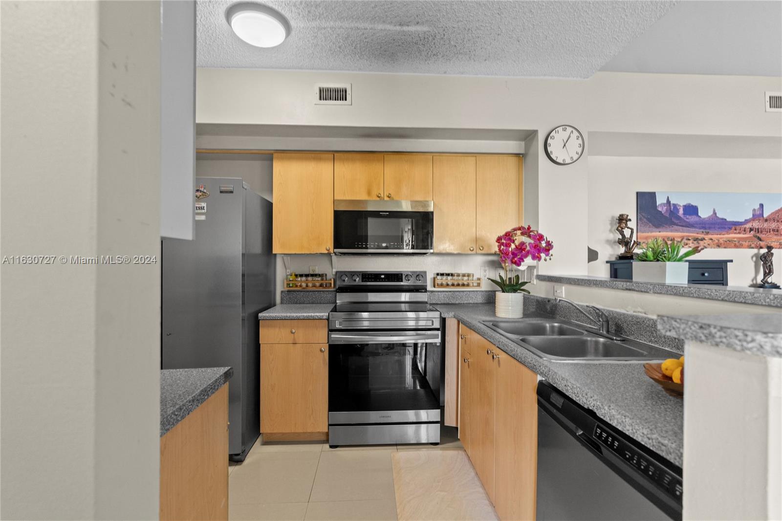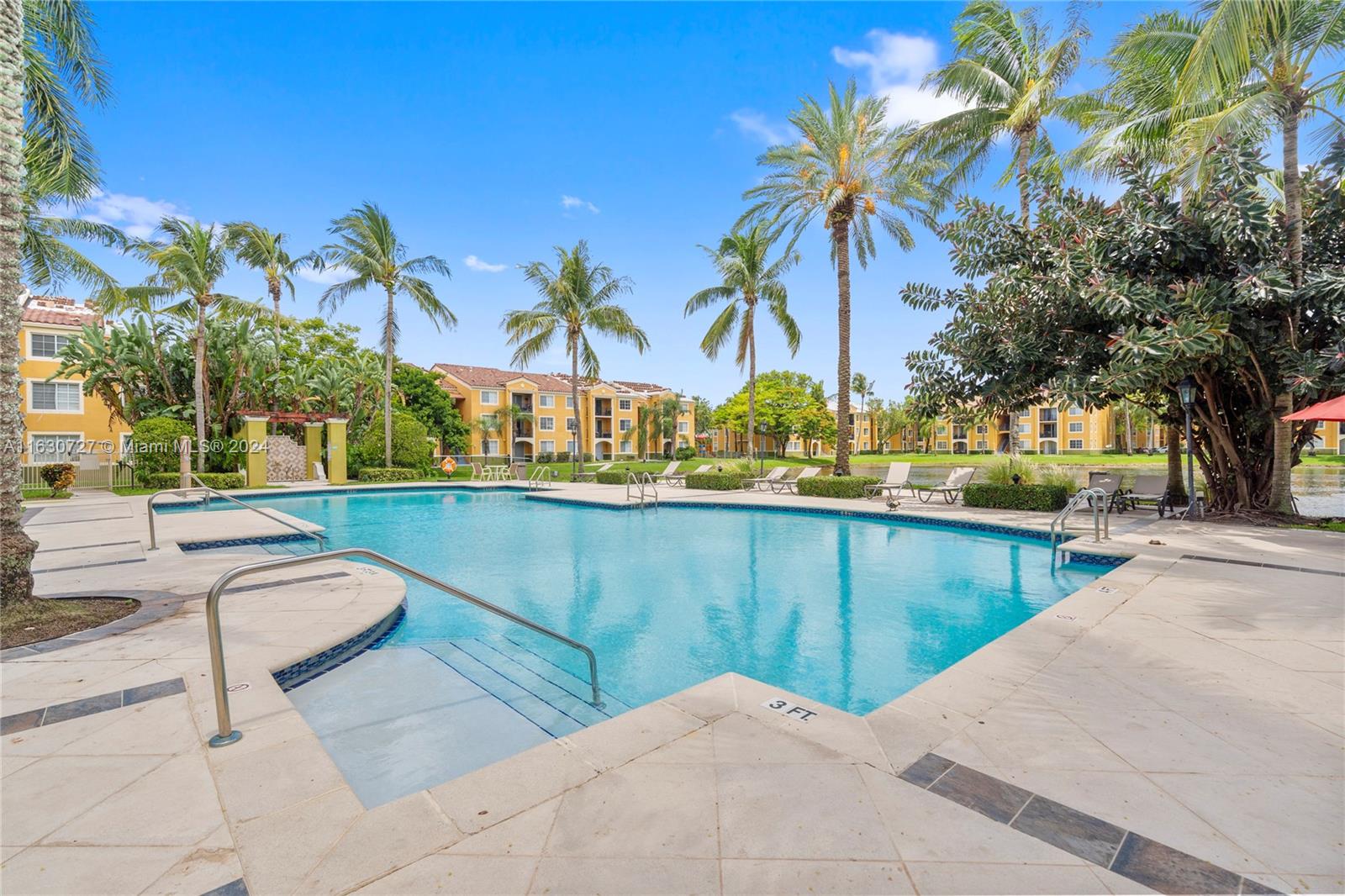 This charming 3 BEDROOMS, 2 FULL BATHROOMS, CORNER CONDO Resort-Style living in the GATED community of The Residences at Miramar. OPEN LIVING AREAS with TILE flooring enhances the condo's appeal. All three bedrooms feature WOOD LAMINATE flooring. TWO of the bedrooms include WALK-IN CLOSETS. PRIVATE BALCONY with stunning water and sunset views. This property is ideal for an investor, offering immediate income. The community offers an array of amenities, including a clubhouse, large pool, jacuzzi, fitness center, tennis court, playground, and more. Close to schools, shopping, and major highways, I-75, & Turnpike, and walking distance to Miramar Center, making it a prime choice for luxury living. Landscape, Insurance, Security, Water, sewer, and trash are included in the HOA fee.