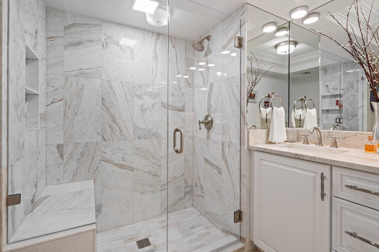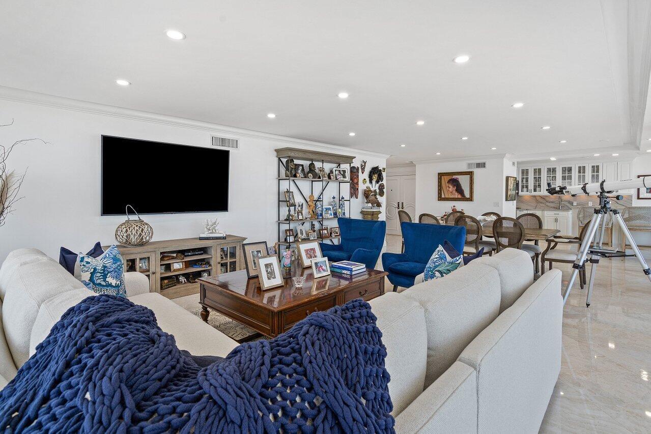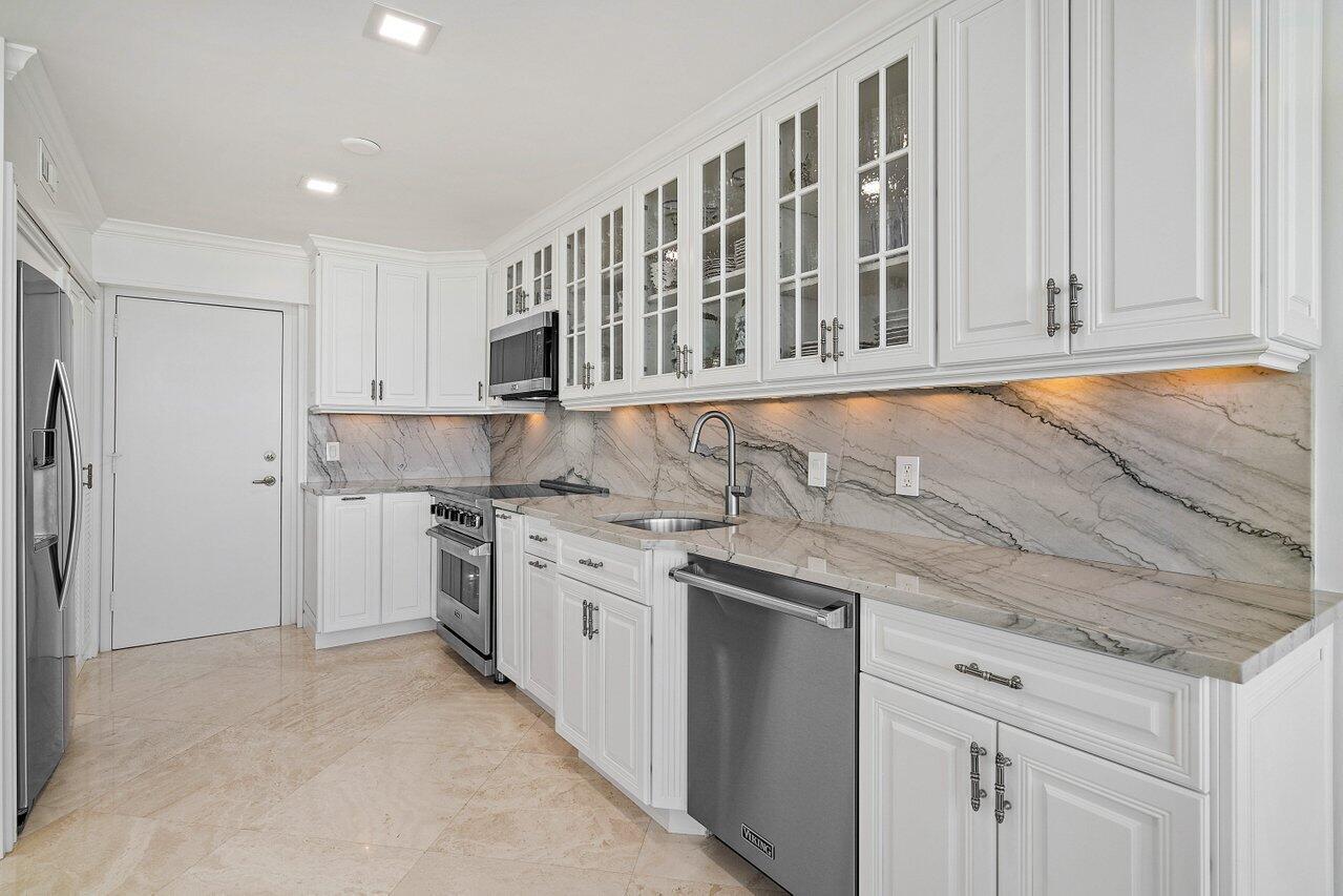 Stunning Southeast Corner Unit with Breathtaking Ocean and Beach Views!Step into luxury with this exquisite 3-bedroom, 2.5-bathroom unit, accessible via a semi-private landing. Enjoy the expansive east-facing wrap-around balcony and the exclusive west-facing private balcony off the master bedroom. With two garage parking spaces, this move-in-ready residence is equipped for your immediate enjoyment. Key Features and Upgrades: Family Room: New ceiling with recessed lighting, Kitchen: Freshly painted cabinets, new quartzite countertops and backsplash, top-of-the-line Viking range, dishwasher, and microwave, Bathrooms: Complete renovations with marble showers and enclosures, quartzite countertops, new toilets, and light fixtures, Bedrooms: New plush carpeting. see additional remarks