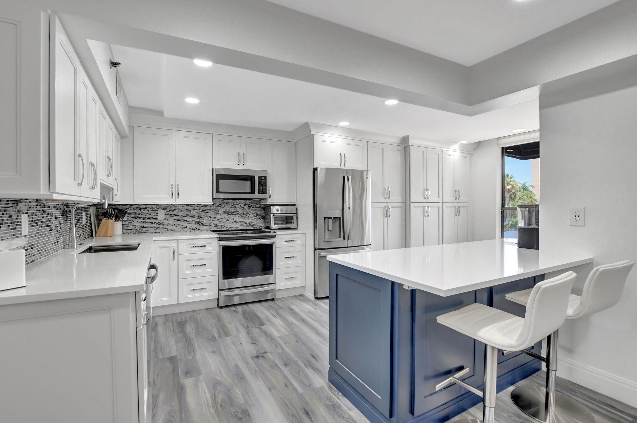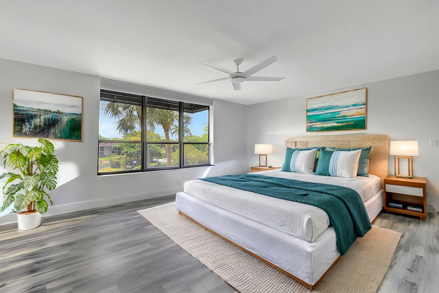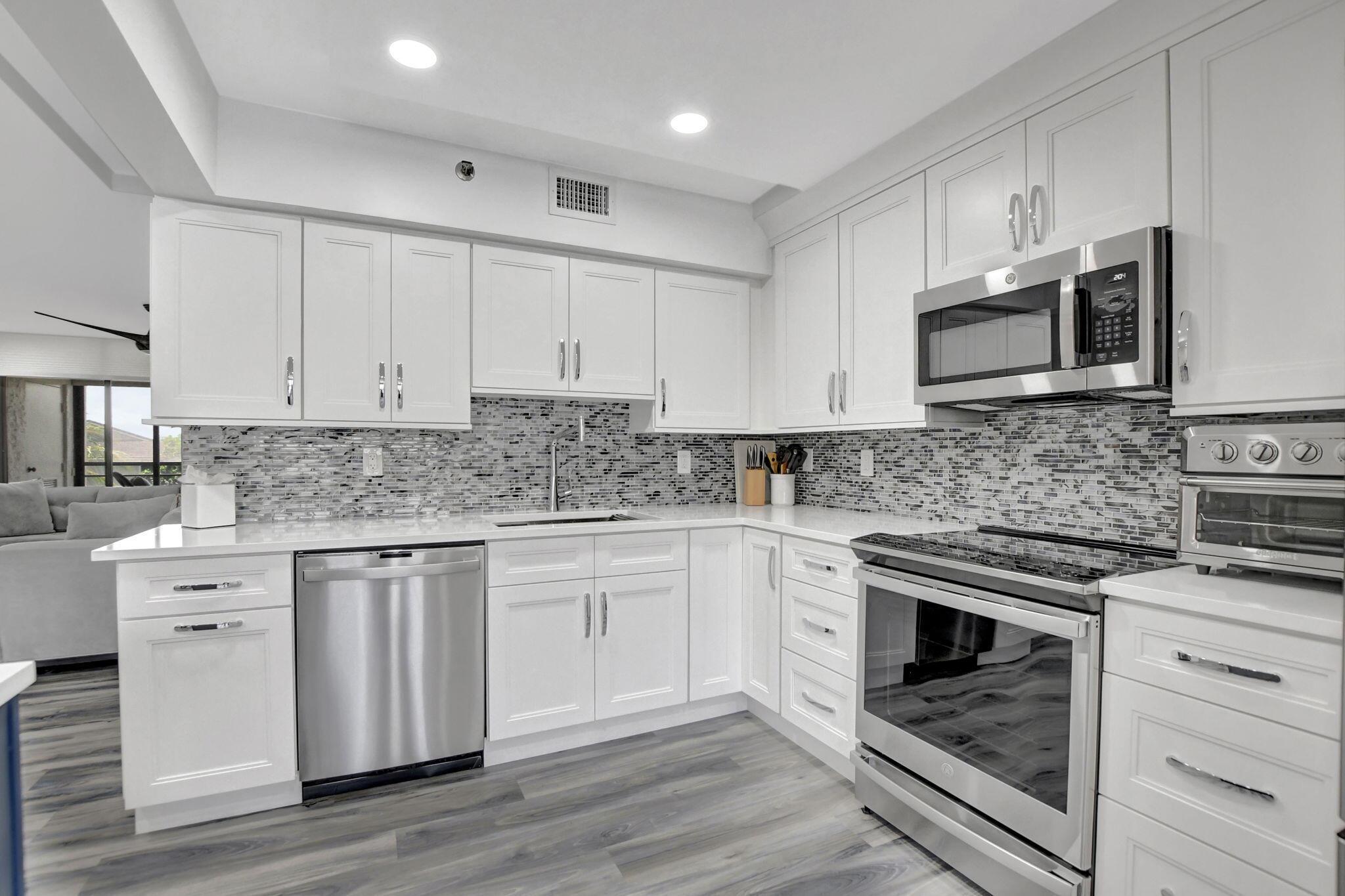 Luxury Condo with Modern Elegance and Breathtaking Sunset Views. Discover the epitome of refined living in this stunningly renovated condo located in the prestigious Boca Pointe Country Club. With a versatile layout featuring 2 bedrooms and a spacious office/den/flex room, this home is designed for both comfort and functionality, perfect for work, relaxation, or hosting guests. Every detail of this condo has been thoughtfully curated to create a contemporary and inviting atmosphere. Key features include: Modern Flooring: Sleek, luxury vinyl floors flow seamlessly throughout the unit, exuding style and durability. Gourmet Kitchen: A chef's dream with modern cabinetry, quartz countertops, and brand new state-of-the-art GE Profile appliances, ideal for