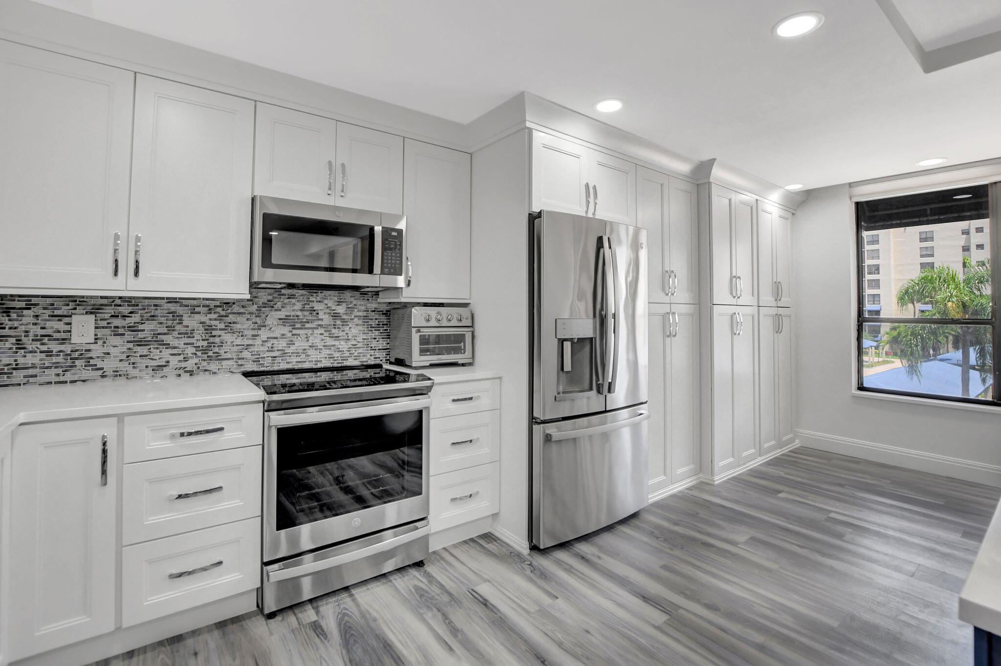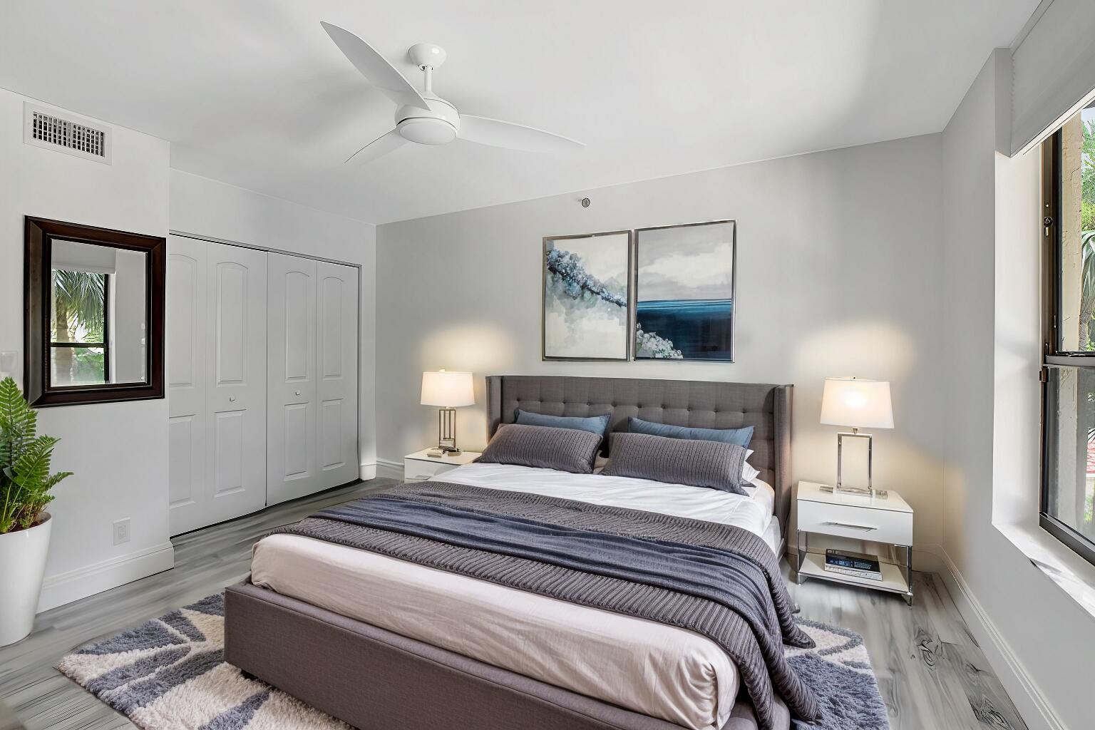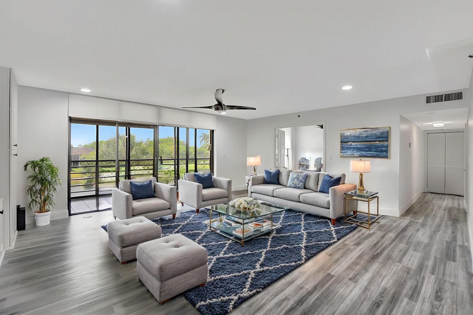 Luxury Condo with Modern Elegance and Breathtaking Sunset Views. Discover the epitome of refined living in this stunningly renovated condo located in the prestigious Boca Pointe Country Club. With a versatile layout featuring 2 bedrooms and a spacious office/den/flex room, this home is designed for both comfort and functionality, perfect for work, relaxation, or hosting guests. Every detail of this condo has been thoughtfully curated to create a contemporary and inviting atmosphere. Key features include: Modern Flooring: Sleek, luxury vinyl floors flow seamlessly throughout the unit, exuding style and durability. Gourmet Kitchen: A chef's dream with modern cabinetry, quartz countertops, and brand new state-of-the-art GE Profile appliances, ideal for