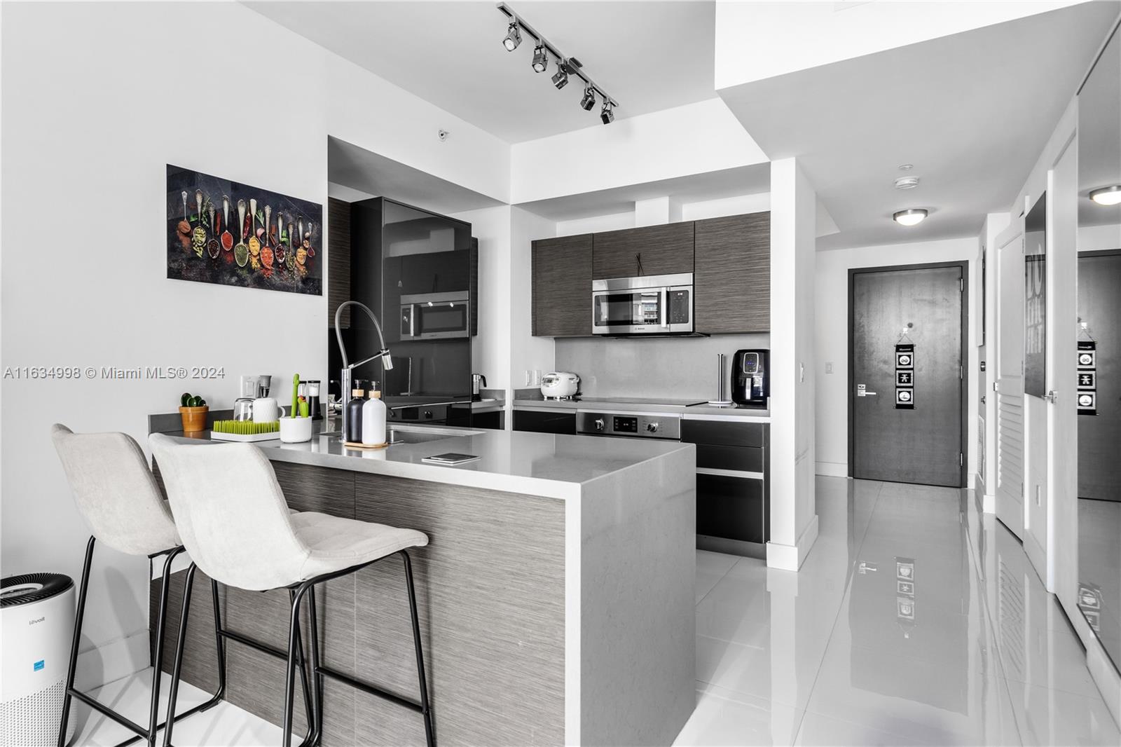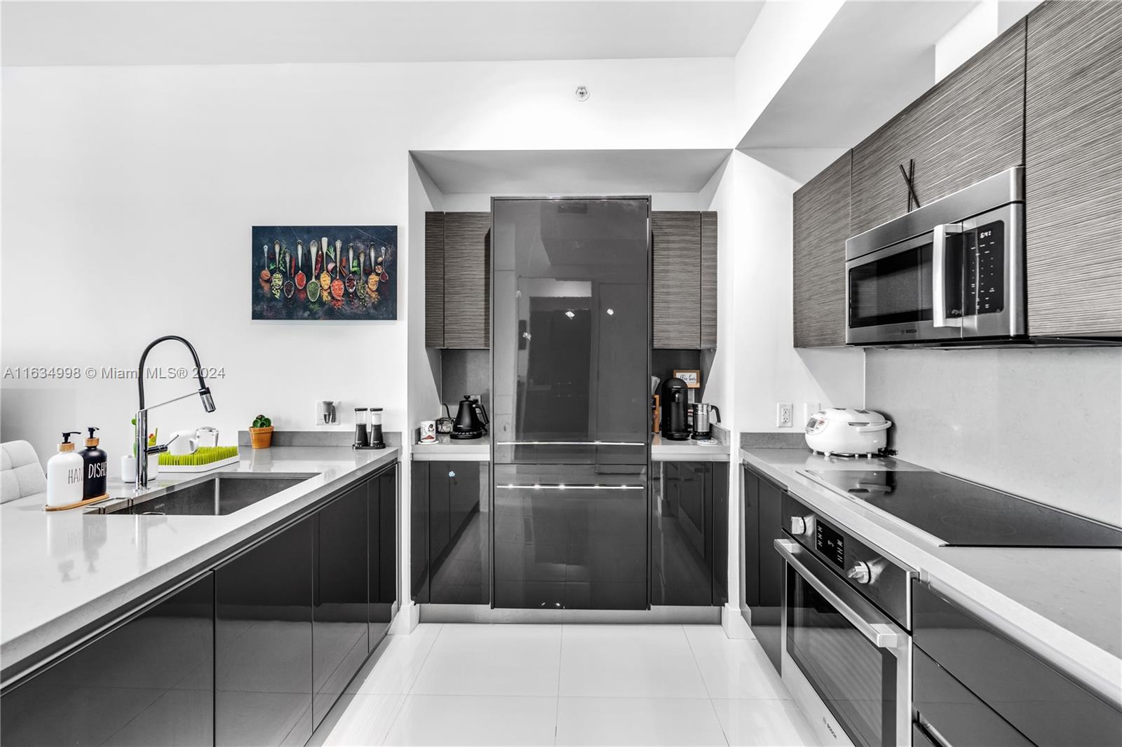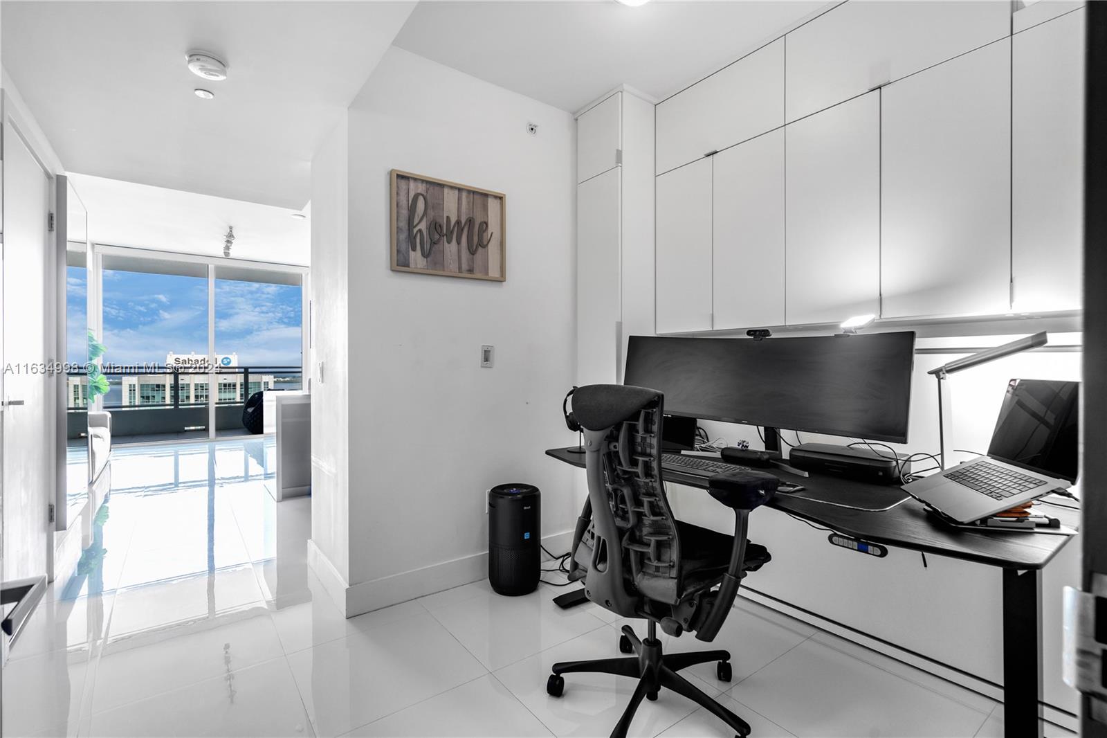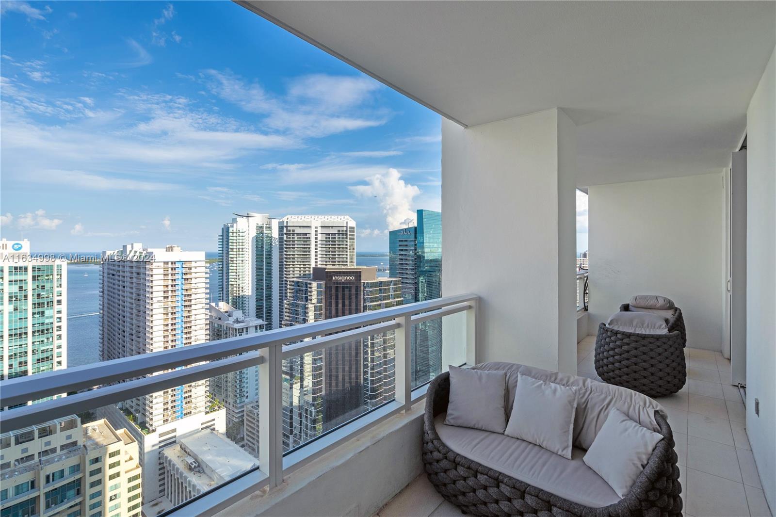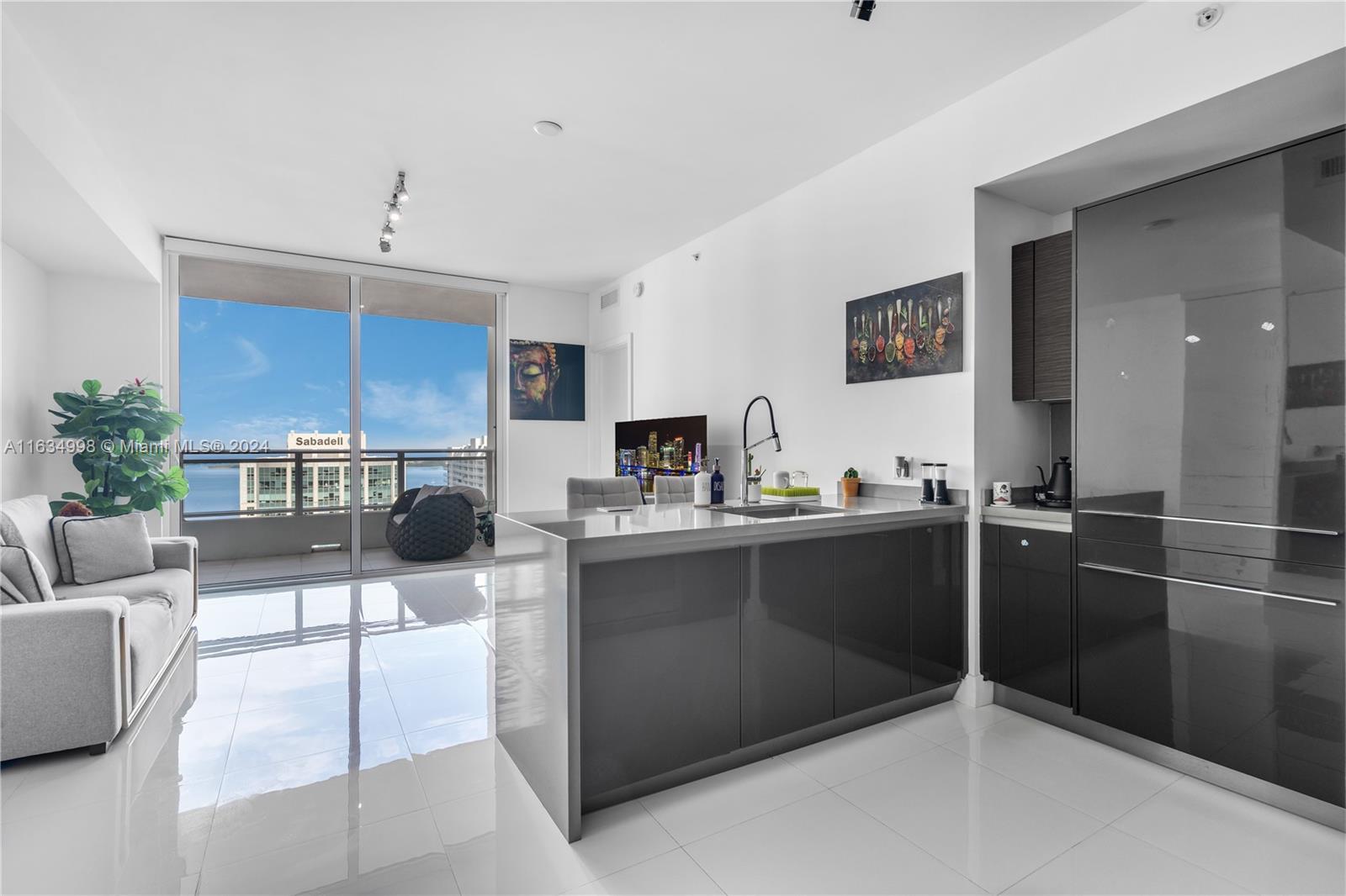 Experience breathtaking water views from this modern 1-bedroom, 1,5 bath unit, plus a huge den, featuring spectacular bay and city vistas along with a spacious balcony. The Italian kitchen boasts high-end appliances, while abundant natural light, white porcelain flooring, and elegant ceramic in the bathroom create a fresh ambiance. Enjoy the convenience of a new washer & dryer and a newly built closet. Located steps from Brickell City Centre, this condo includes one assigned parking space. The Bond on Brickell is a luxurious residential skyscraper offering resort-like amenities, including a pool area with jacuzzi, summer kitchens, stylish lounge, children's playroom, fitness center, sauna+steam room, valet, business center, and an on-site Starbucks.