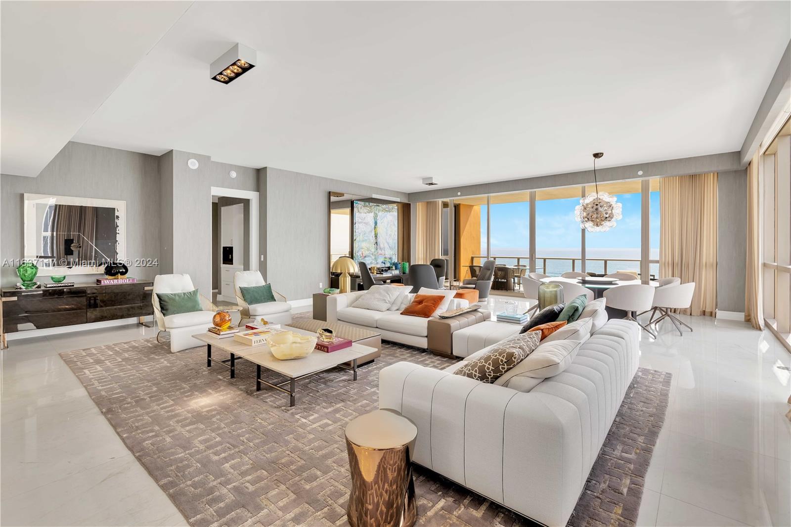 Enjoy this exquisite 4609 sqft furnished unit located at the Mansions at Acqualina. Each of the 4 bedrooms is a delighted discovered. This serene home exudes tranquility as its beauty blends with the magic of the ocean view with from large balcony, and the enchanted Intracoastal sun set with a second balcony with grill and jacuzzi. This one-of-a-kind unit encompasses 4 bed/6.5 bathrooms plus a laundry with a conveniently installed sink. Mansions at Acqualina, a five star Diamond lifestyle, offers 2 pools, a 3000 sqft gym, world-renowned SPA, wine & cigar lounges, gym, kid’s room, golf simulator, movie theater, Mansion Grill restaurant - located at the pool, cabanas and full beach service.