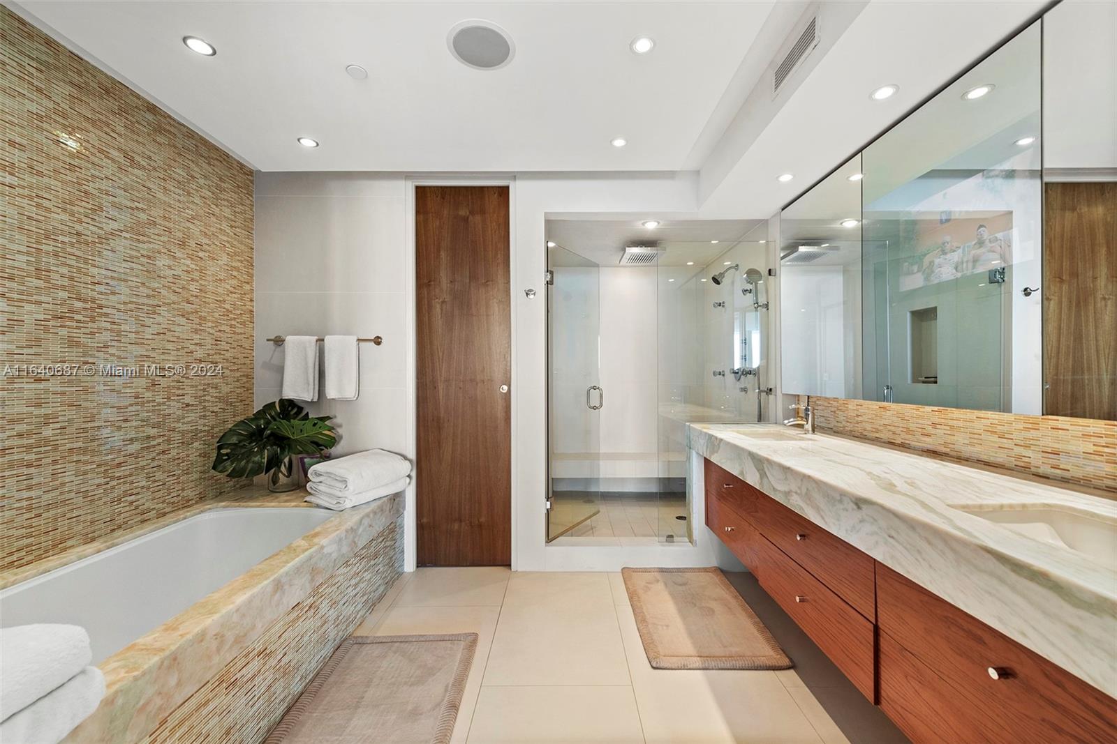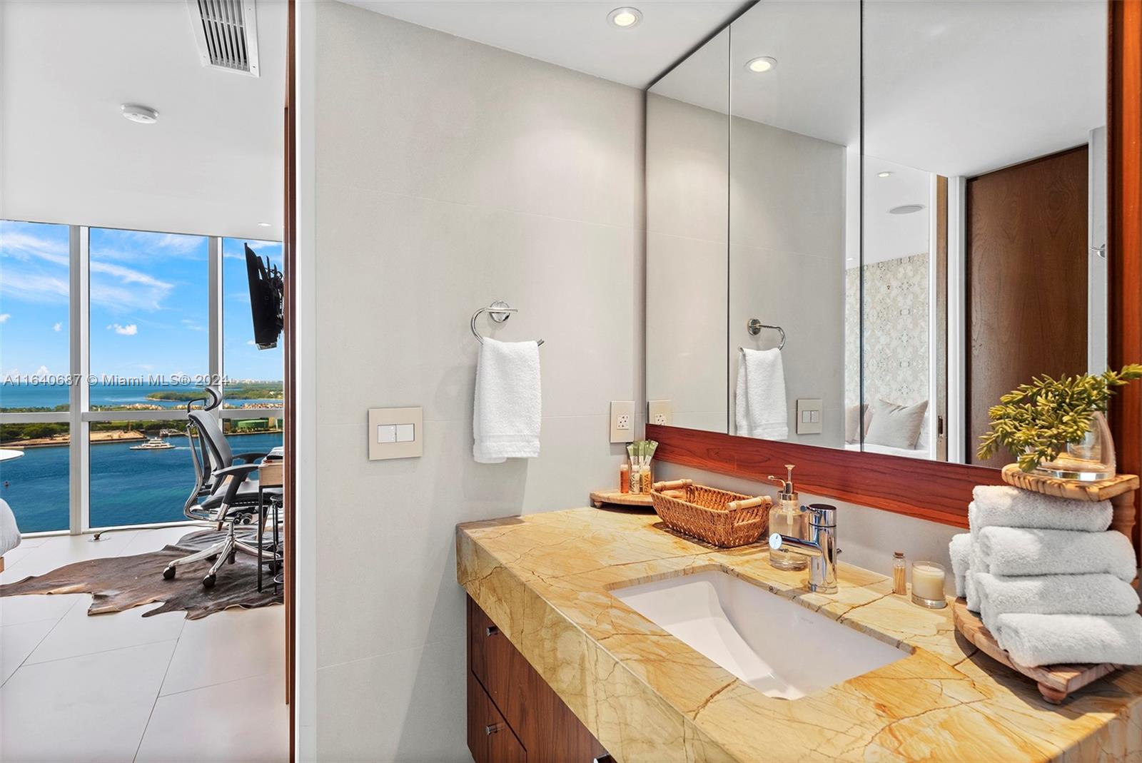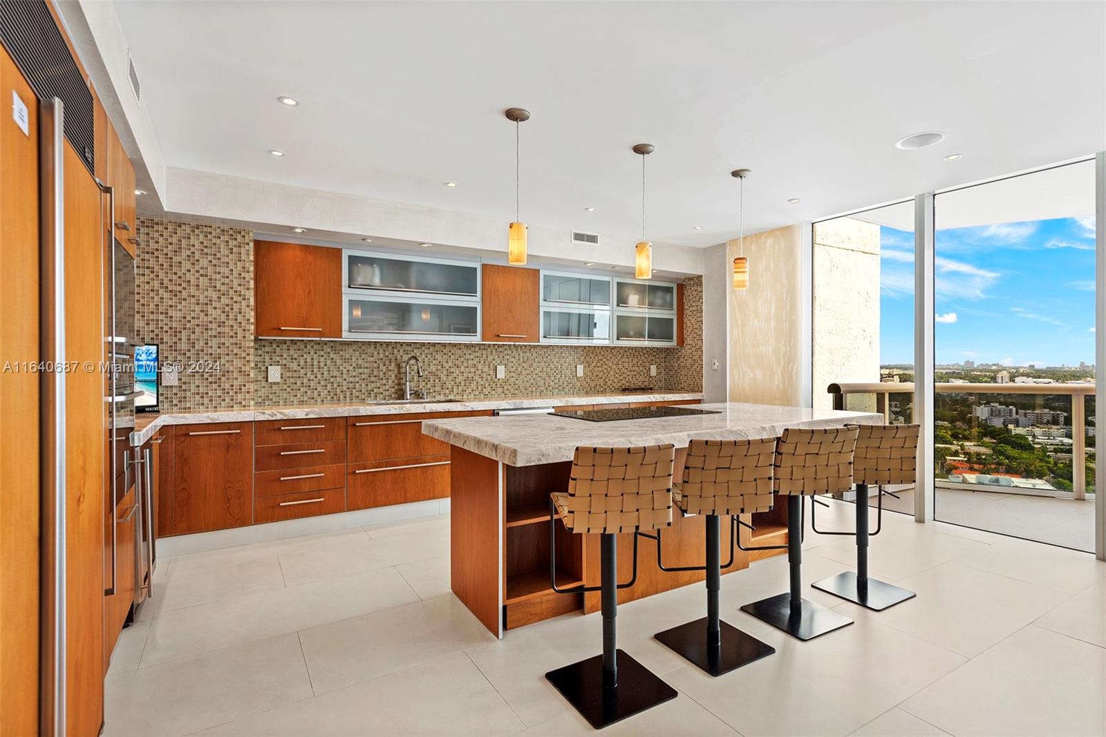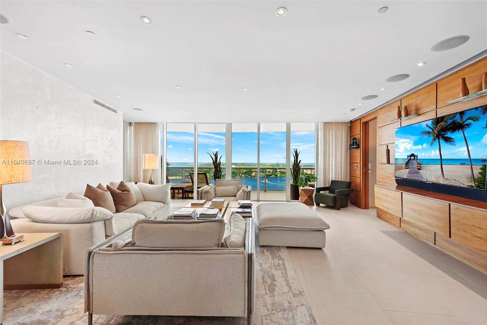 This rarely available 04-line flow-through residence offers stunning sunrise and sunset views, an open floor plan, and in-wall speakers in every room. The living area features intricate millwork and two elegant sitting areas, perfect for entertaining. The master suite includes a rain shower with jets and an in-wall mirror TV in the bathroom. Located in the sought-after South of Fifth neighborhood, this 3,000 sq. ft. home showcases floor-to-ceiling glass windows, Sub-Zero and Miele appliances, and breathtaking views of the ocean, bay, and city. Murano Grande offers luxury amenities, including a full-service pool, lighted tennis court, 24-hour valet, and concierge services, all within walking distance to South Pointe Park and top restaurants.