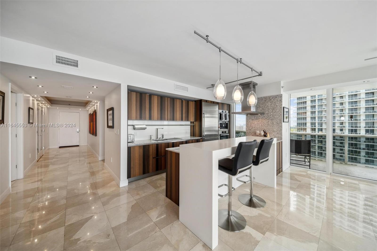 Gorgeous 3 bedrooms/3.5 baths corner unit located at Beach Club Complex. The unit is renovated with modern marble floors, European kitchen, California closets, recessed lighting, high impact glass windows leading to a spectacular " L" shape balcony overlooking a white pristine beach. Luxurious resort style building with great amenities like an oceanfront gym-spa, restaurant/bar, heated swimming pools with pool attendants, jacuzzi & spa, 24/7 concierge service, complimentary valet parking.