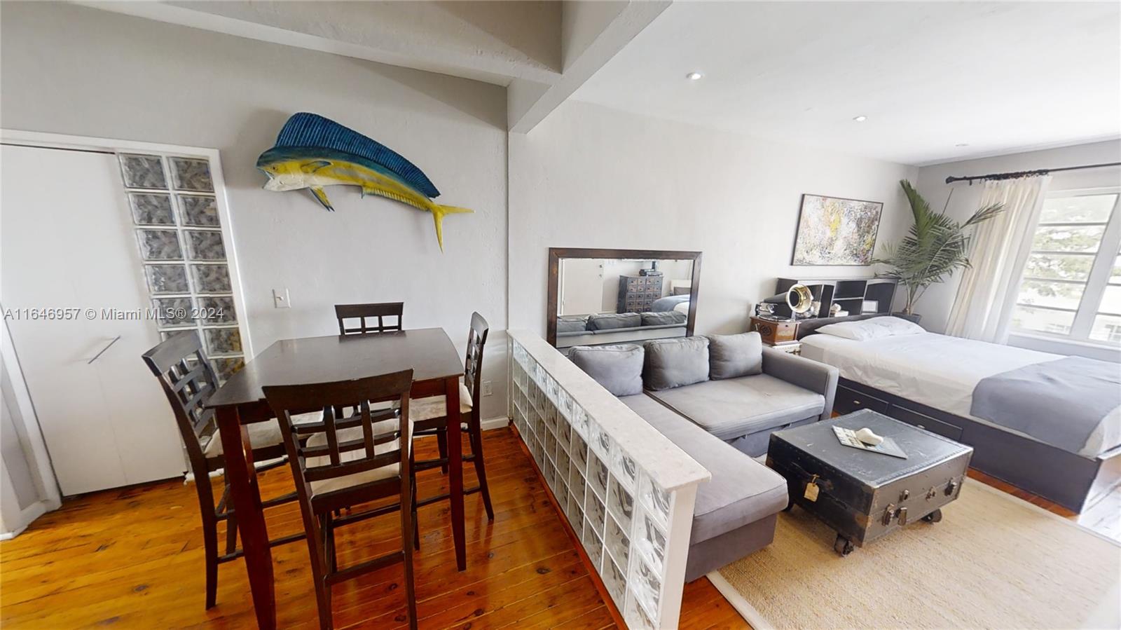 Miami Modern Albert Anis designed Top floor Furnished studio centrally located on South Beach historic Meridian Ave. Beautyleaf tree lined street directly across from Flamingo Park tennis courts. Natural Florida hardwood floors, Gas stove, Dishwasher ,Central A/C & ceiling fans. Architect also designed The Whitelaw Hotel ,The Waldorf Towers Hotel, Winterhaven Hotel, Leslie Hotel , Chesterfield Hotel, The Abbey Hotel, Traymore Hotel, Mantell Plaza & the Temple Emanuel