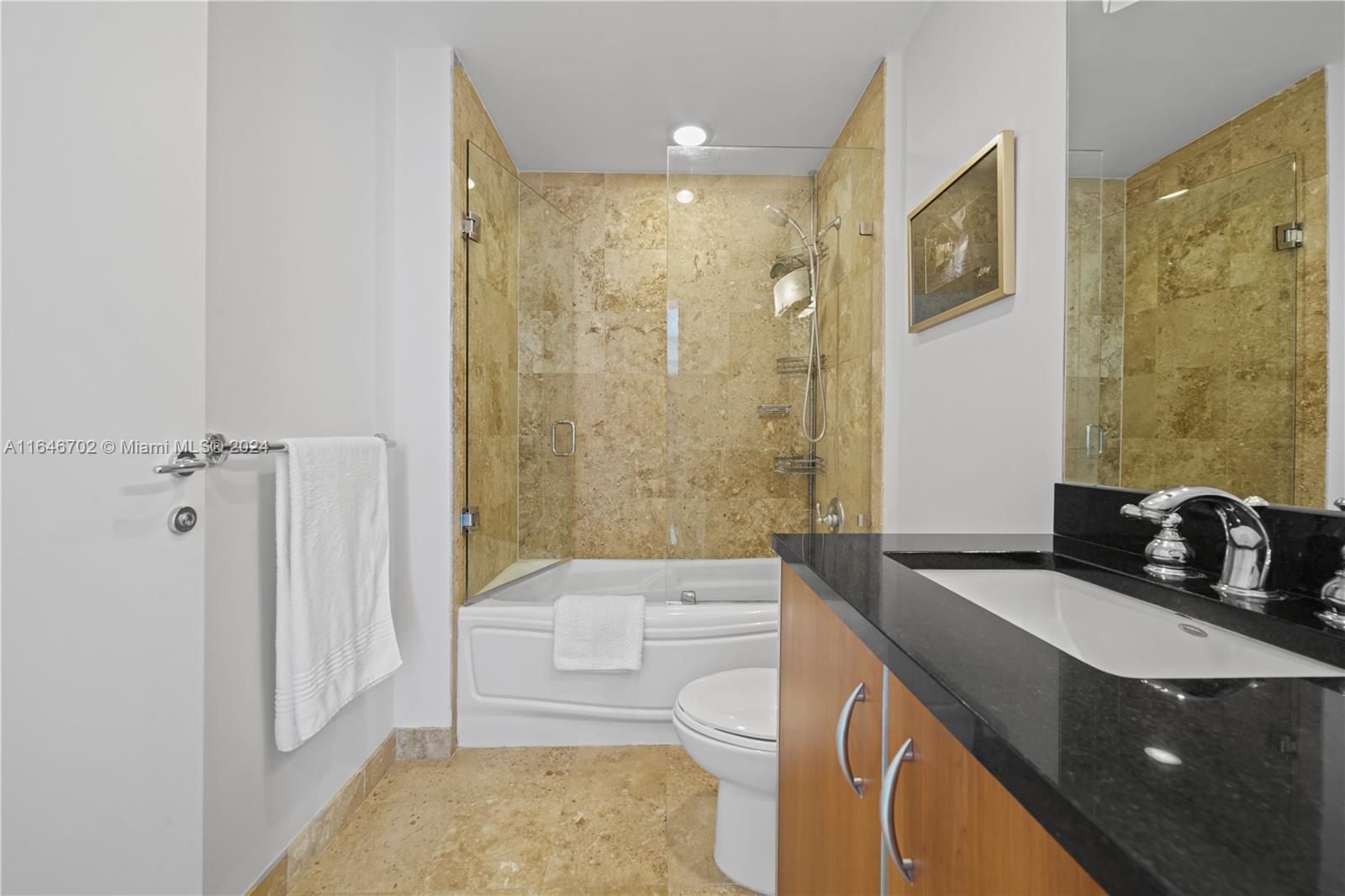 Price decreased! Largest 1 bed, 1.5 bath corner unit, tile floors throughout including balcony. Endless skyline views of downtown, large balcony. Floor to ceiling windows making it a very bright residence with views from every angle. Open kitchen with granite countertops, back splash, Italian cabinetry & stainless steel appliances. Unit is substantially remodeled. Sophisticated lighting fixtures. Shades in every room. Newer washer and dryer. New water heater. One assigned parking space. Walk to Whole Foods Market, Bayfront Park, metro mover, Novikov Restaurant, Gordon Ramsay Hell's Kitchen, Joe & the Juice plus 17 screens' Silverspot Cinema at Met Square. Building offers luxurious life style, 24-hr front desk attended. Chic downtown living at its best! Pool is closed for repairs.