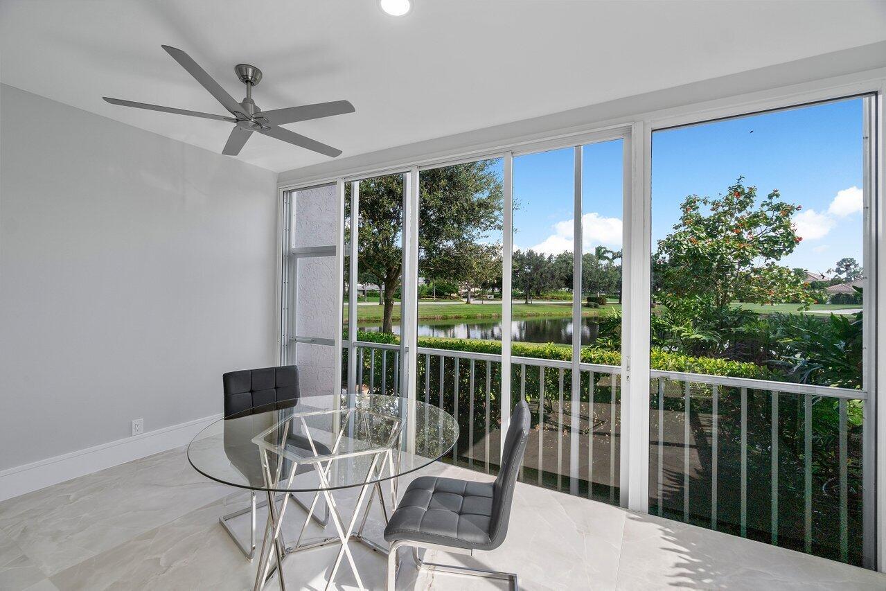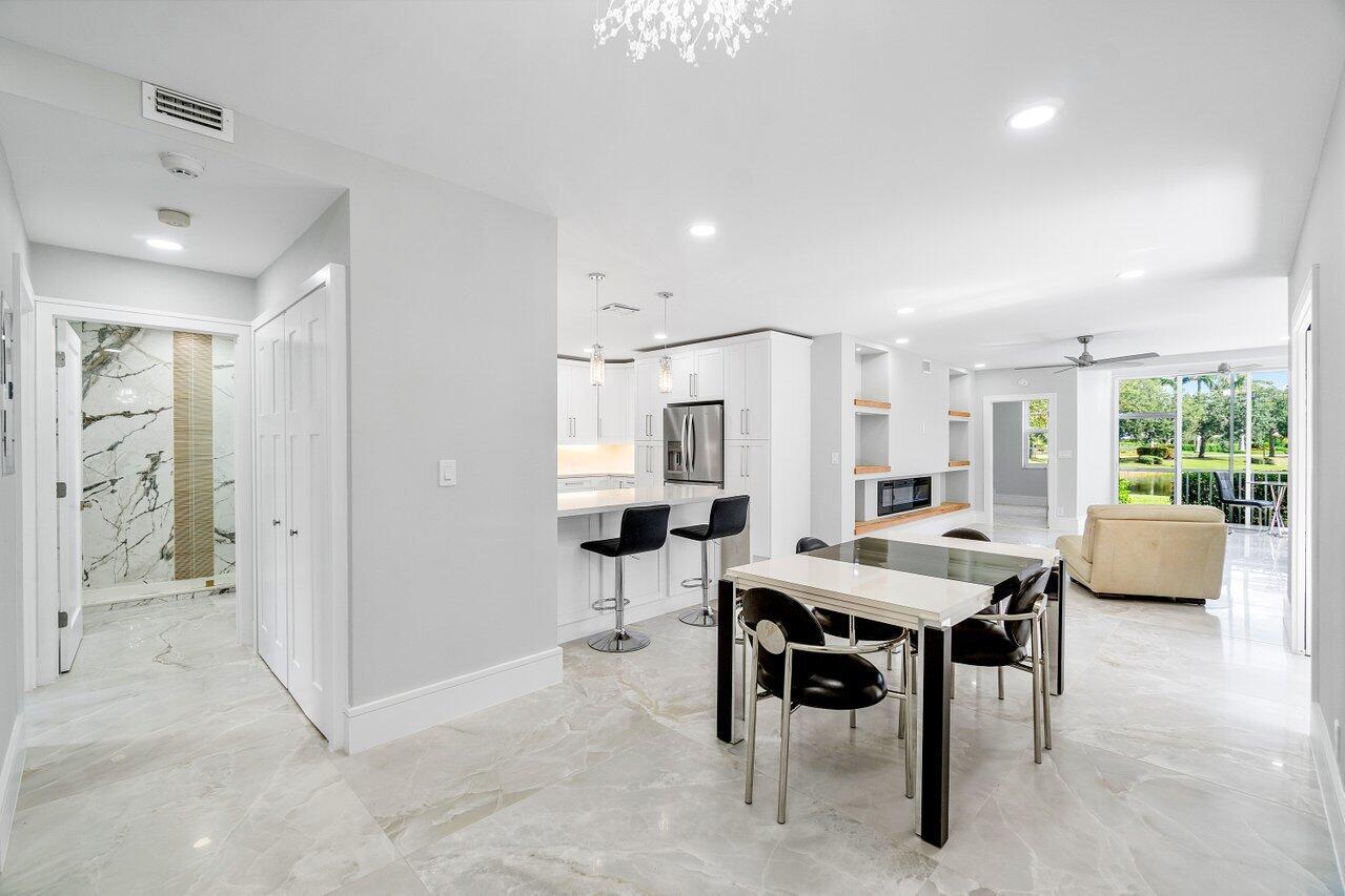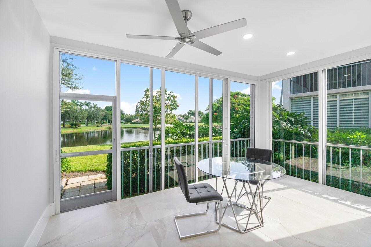Experience luxury living in this fully renovated first-floor condo, boasting a prime location overlooking both the serene lake and lush golf course. With its open-concept design, revel in the spaciousness and natural light that floods through the panoramic sliders, accentuating the beauty of the surroundings. Enhanced with new and modern finishes, the design exudes elegance and sophistication. The kitchen is equipped with abundant storage and a seamless flow into the living room, perfect for entertaining guests. Extending the interior living space, the fully enclosed patio provides additional square footage. The private primary suite offers a spa-like bathroom. This condo features two secondary bedrooms and an additional full bath. New AC unit, new hot water heater and impact windows.