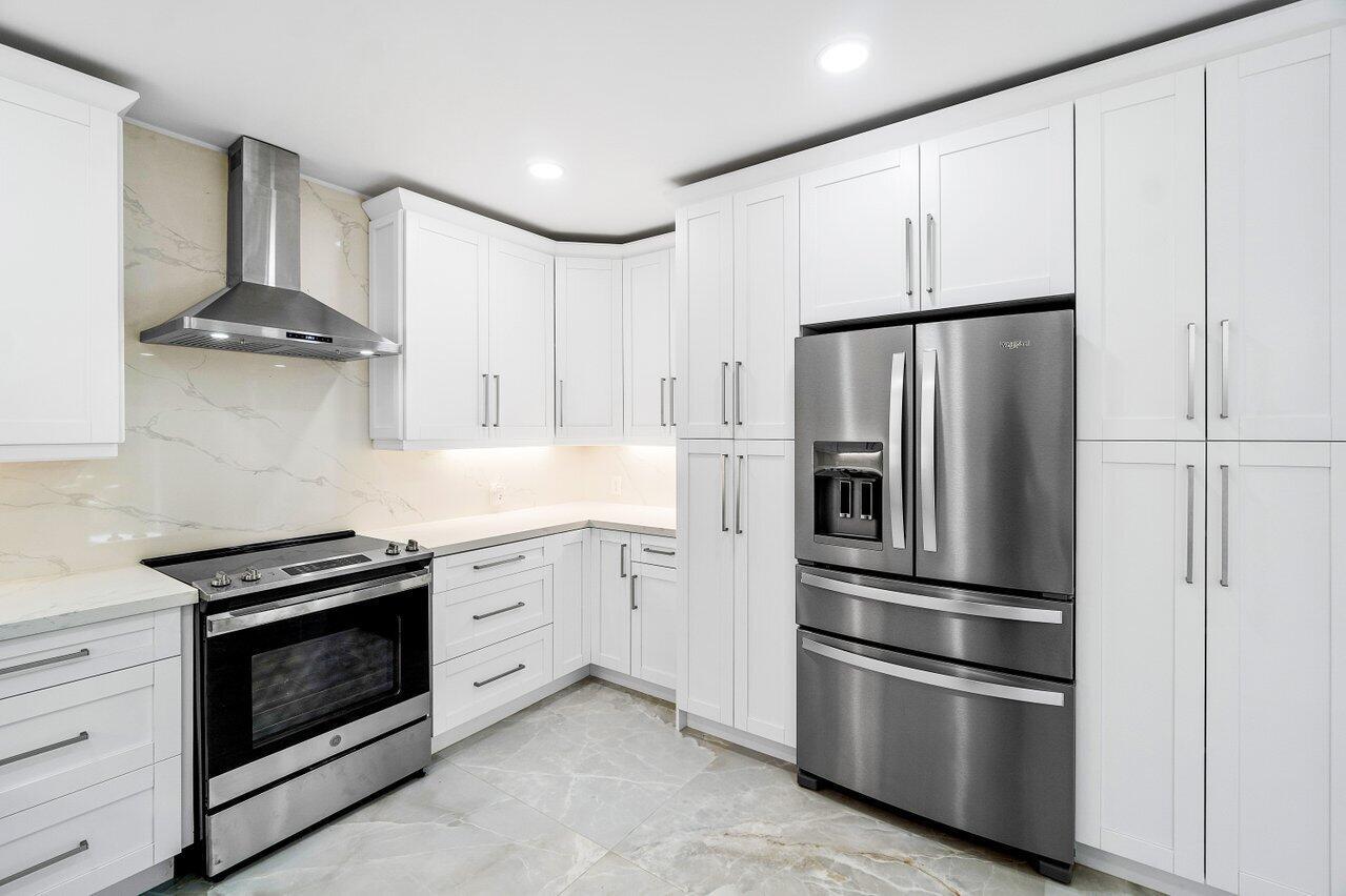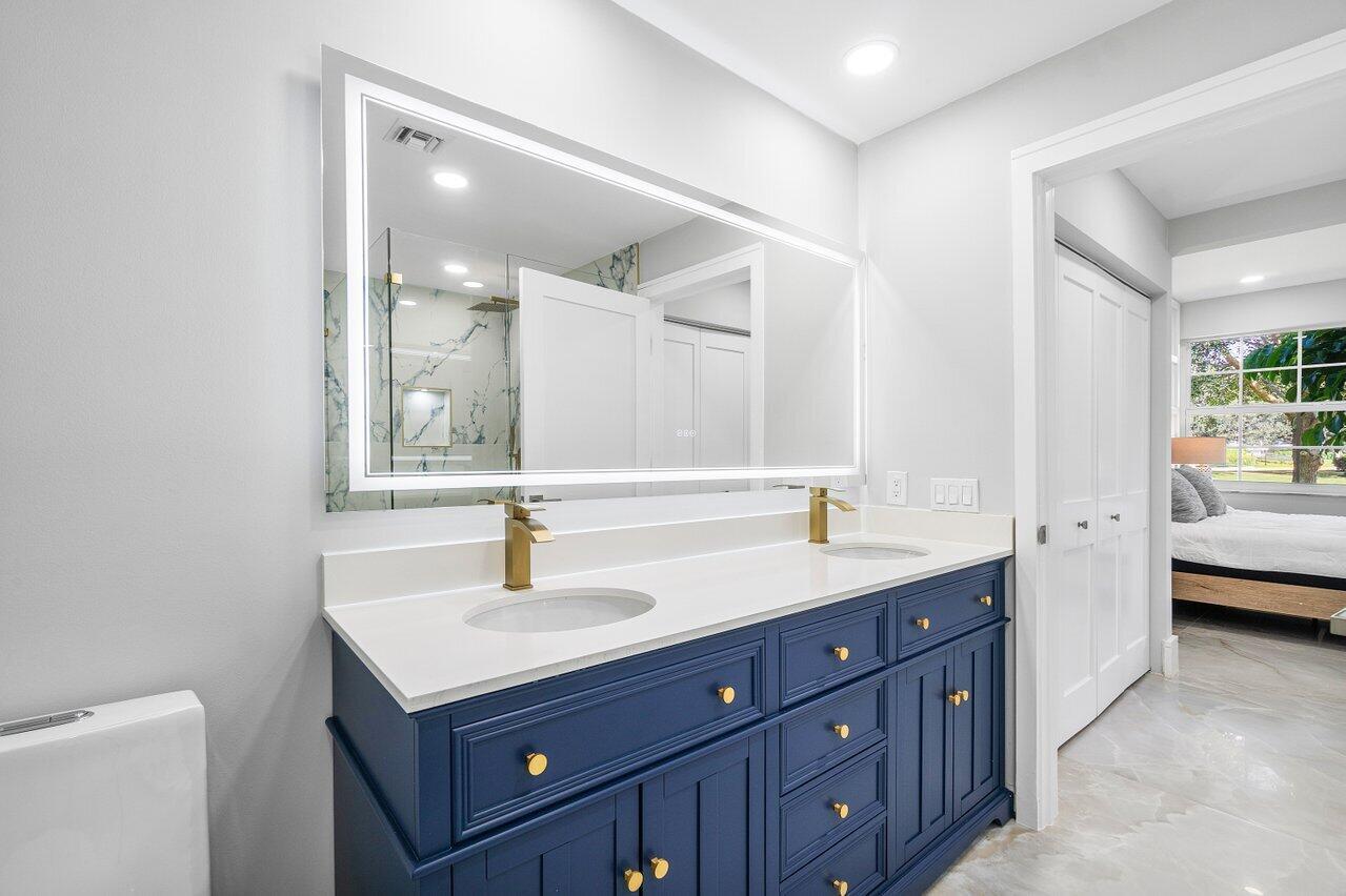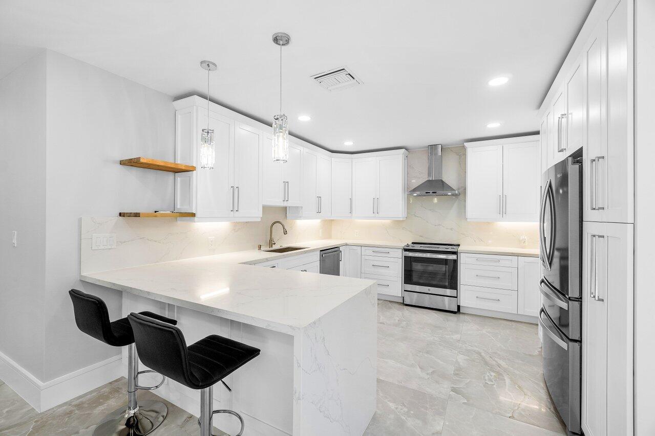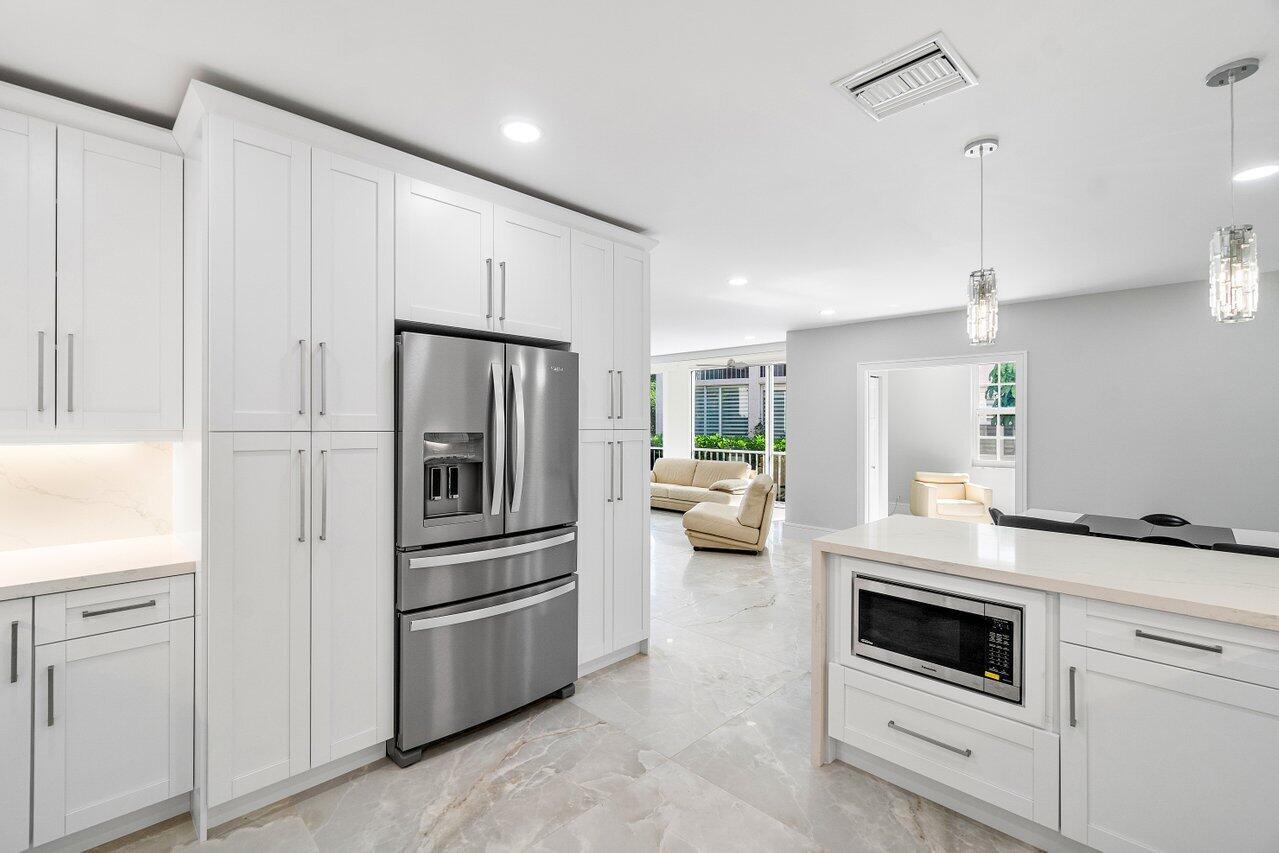 Experience luxury living in this fully renovated first-floor condo, boasting a prime location overlooking both the serene lake and lush golf course. With its open-concept design, revel in the spaciousness and natural light that floods through the panoramic sliders, accentuating the beauty of the surroundings. Enhanced with new and modern finishes, the design exudes elegance and sophistication. The kitchen is equipped with abundant storage and a seamless flow into the living room, perfect for entertaining guests. Extending the interior living space, the fully enclosed patio provides additional square footage. The private primary suite offers a spa-like bathroom. This condo features two secondary bedrooms and an additional full bath. New AC unit, new hot water heater and impact windows.