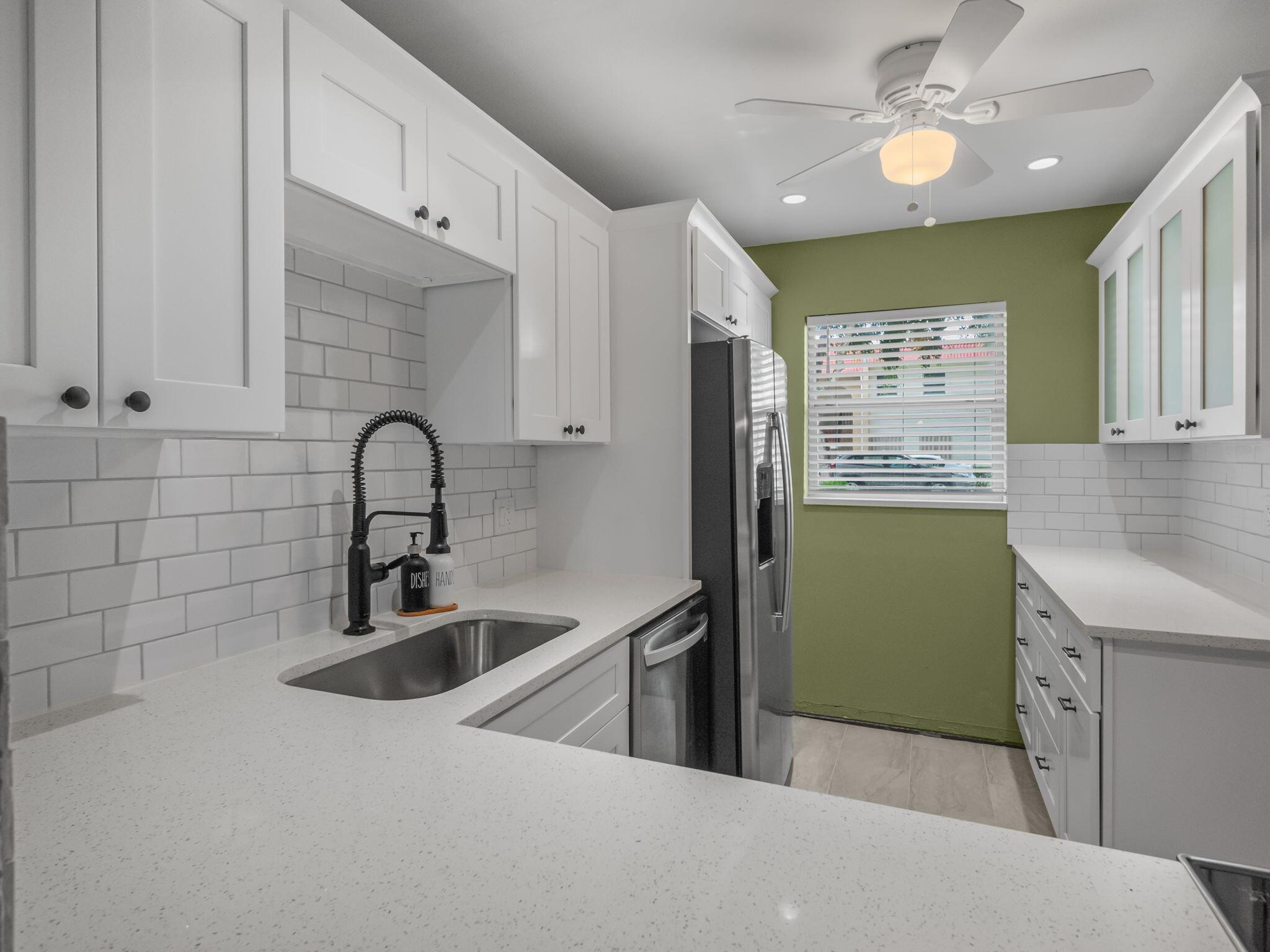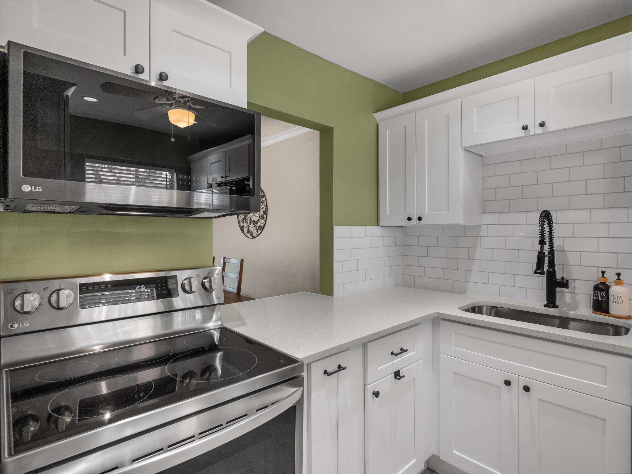 Phase A: This beautifully renovated 2-bedroom, 2-bathroom condo offers a perfect blend of comfort and style, nestled in the heart of a vibrant 55+ community. The spacious master suite offers a peaceful retreat with ample closet space, updated bathroom. Enjoy your morning coffee on the screened-in patio, overlooking serene water views, and soak in the Florida sunshine. The renovated kitchen includes new soft-close cabinets and drawers. Small touches like a roll out spice rack. All new appliances are less than 1 year old. Golden Lakes Village is a gated community offering a wide array of amenities, including a clubhouse, swimming pools, fitness center, and social activities. Conveniently located near shopping, dining, and entertainment, this condo is the perfect place to call ho