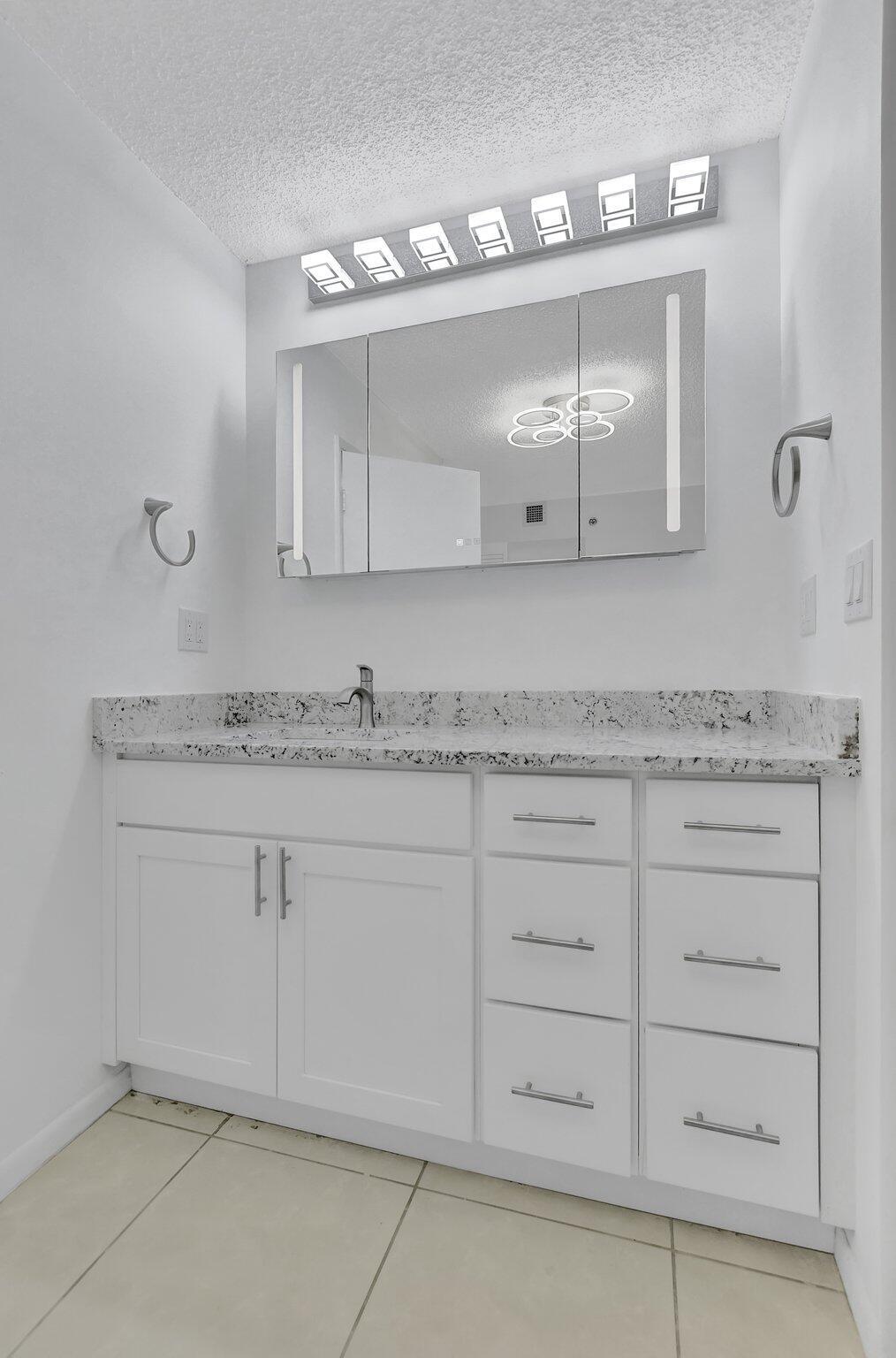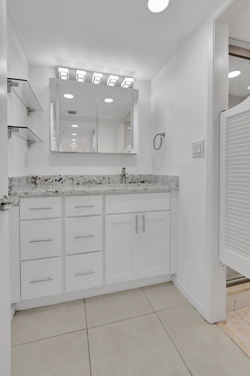 THIS IS THE ONE! Pristine remodeled condo. New never used kitchen, appliances and bathrooms. New lighting and many additional Hi-Hat lighting added. Freshly painted. Brand new Washer and Dryer. Large master bedroom with two closets. Wrap around balcony for whole unit. Two cars allowed per owner. Great pool area. Building just renovated along with new roof. Accordion hurricane shutters.