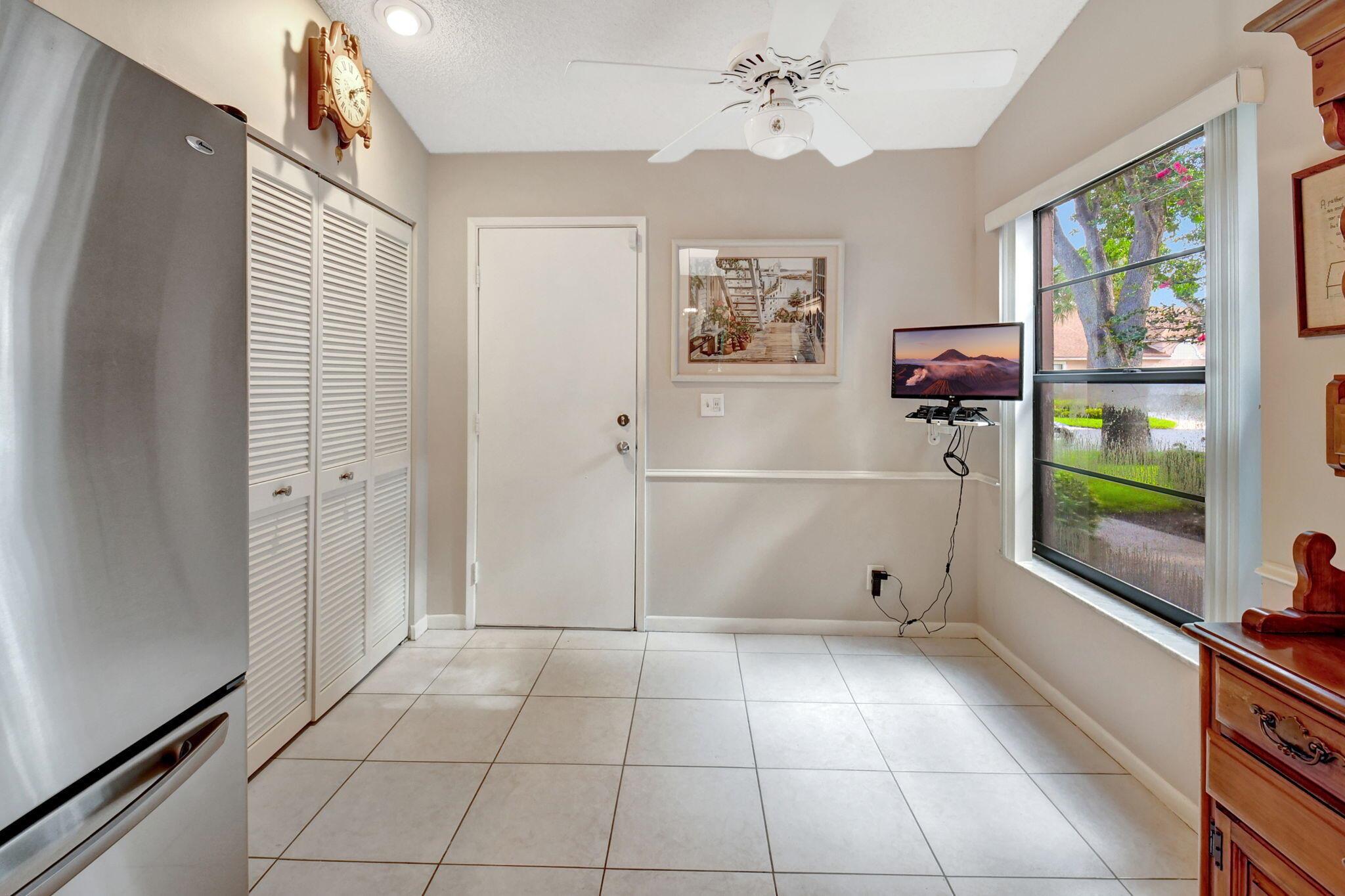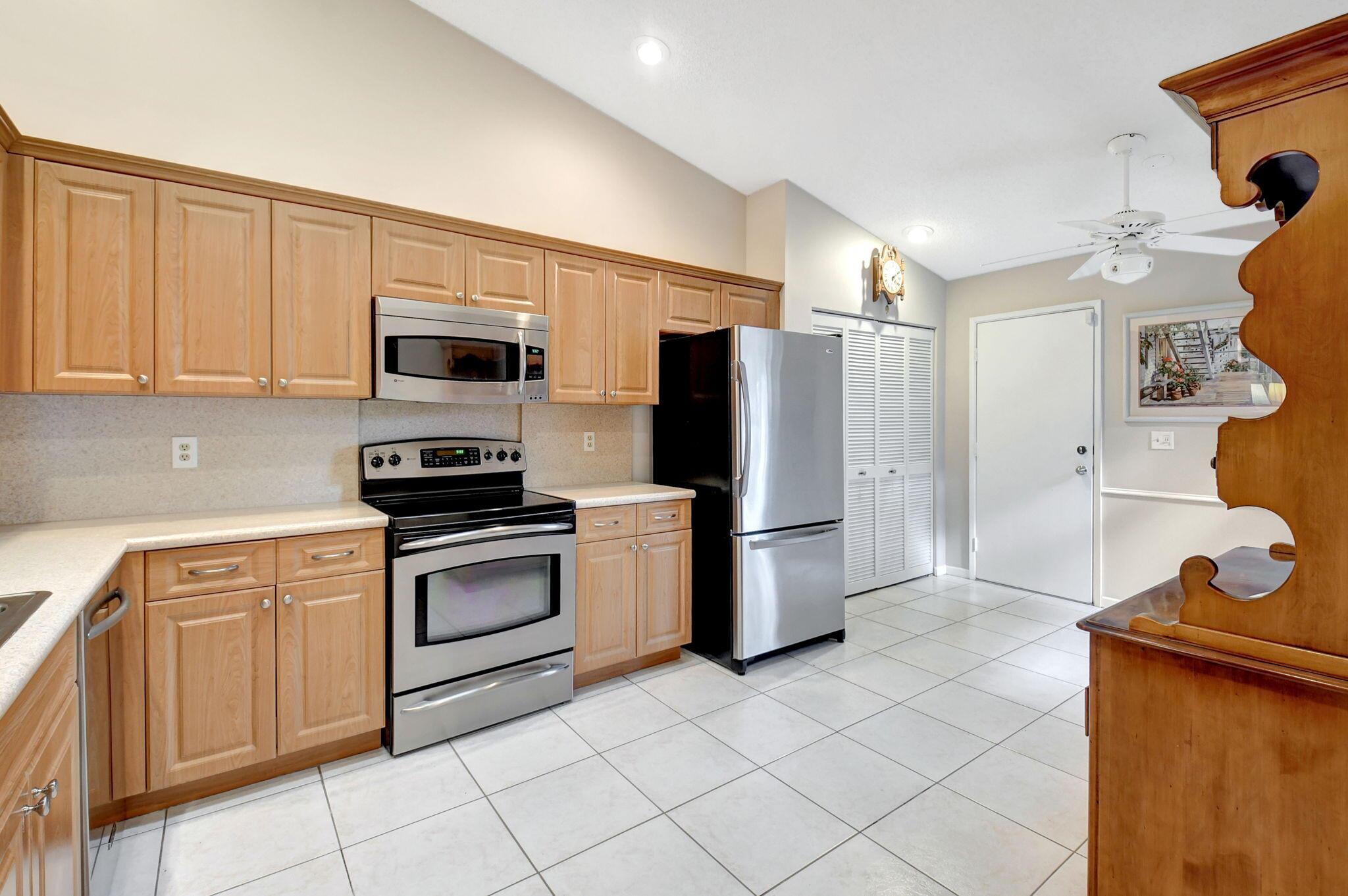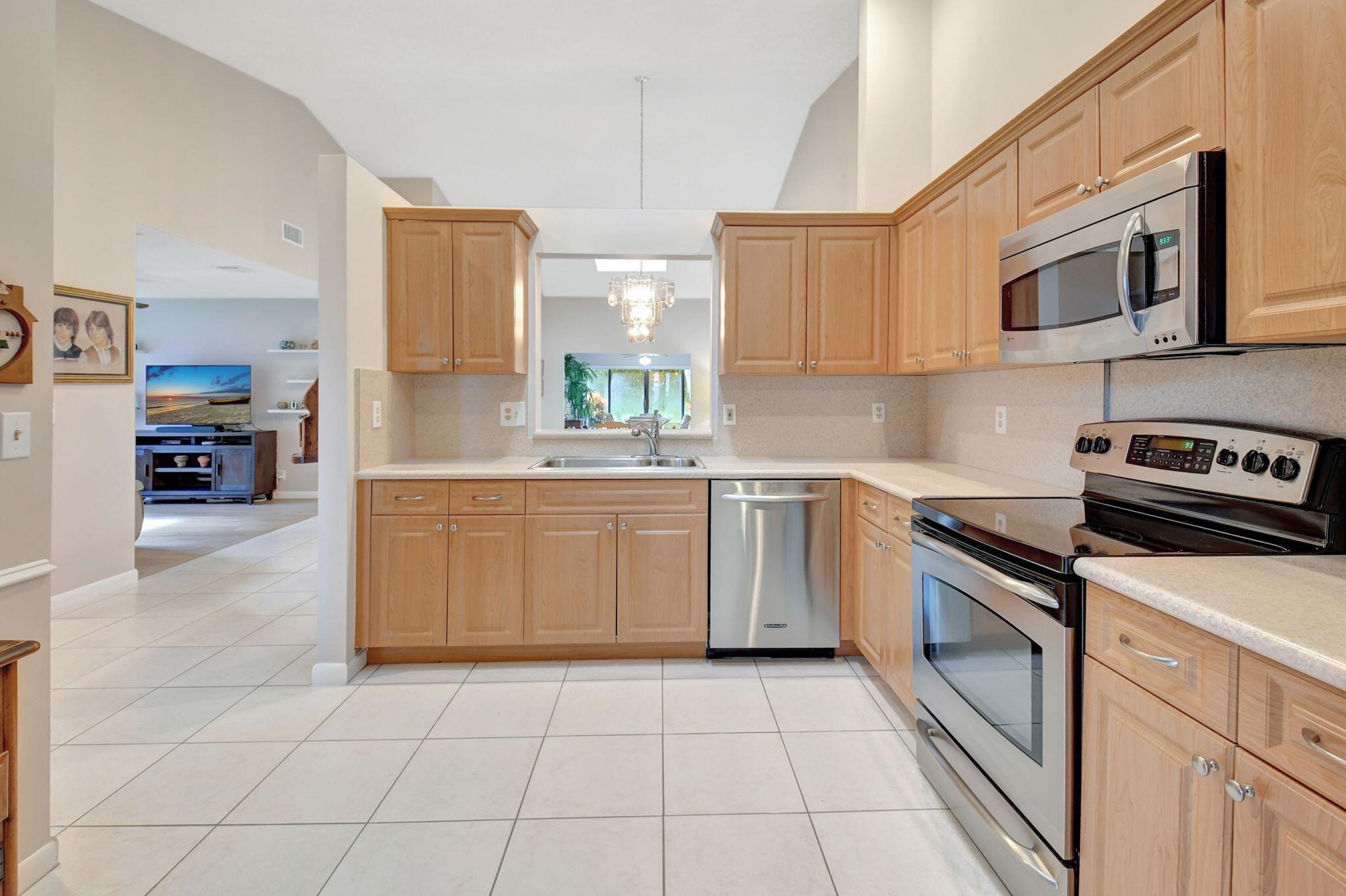Lovely Villa priced to sell quickly! Appraised at $375,000 on 7/23/24. Light & Bright Villa w/2 skylights offers 2BR+Den/2BA/1CG. Home complete w/Vaulted ceilings, eat-in Breakfast area in kitchen, oversized pantry, SS appliances w/updated micro, pull outs, Pass-thru from kitchen to dining area. Washer & Dryer in unit, split floor plan & more! Home has partial accordion hurricane shutters, the 2 bedrooms & den flooring & base moldings were updated in 2022, updated hot water heater 2022, AC replaced 2018. Primary bedroom offers huge walk in custom fitted closet. Baths offer tile to ceiling, upgraded lighting & framed mirrors. There is a coat closet too! Don't miss this one. Won't last long.