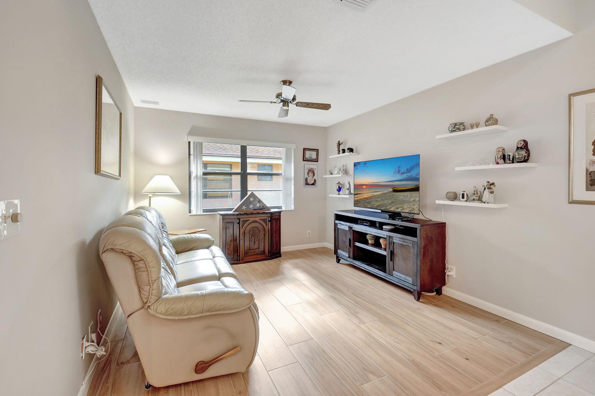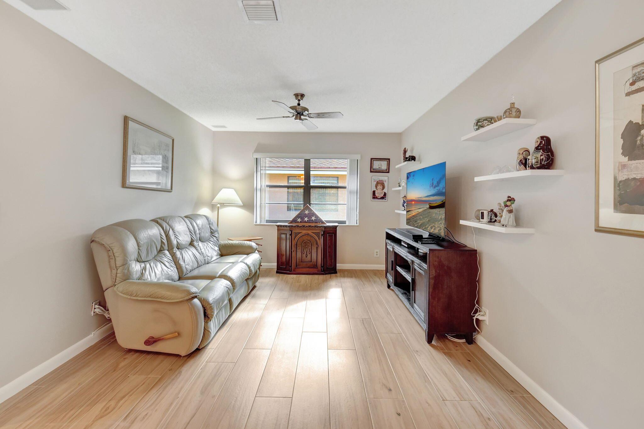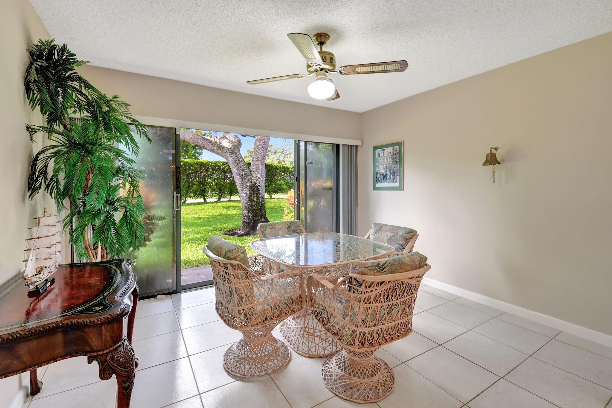 Lovely Villa priced to sell quickly! Appraised at $375,000 on 7/23/24. Light & Bright Villa w/2 skylights offers 2BR+Den/2BA/1CG. Home complete w/Vaulted ceilings, eat-in Breakfast area in kitchen, oversized pantry, SS appliances w/updated micro, pull outs, Pass-thru from kitchen to dining area. Washer & Dryer in unit, split floor plan & more! Home has partial accordion hurricane shutters, the 2 bedrooms & den flooring & base moldings were updated in 2022, updated hot water heater 2022, AC replaced 2018. Primary bedroom offers huge walk in custom fitted closet. Baths offer tile to ceiling, upgraded lighting & framed mirrors. There is a coat closet too! Don't miss this one. Won't last long.