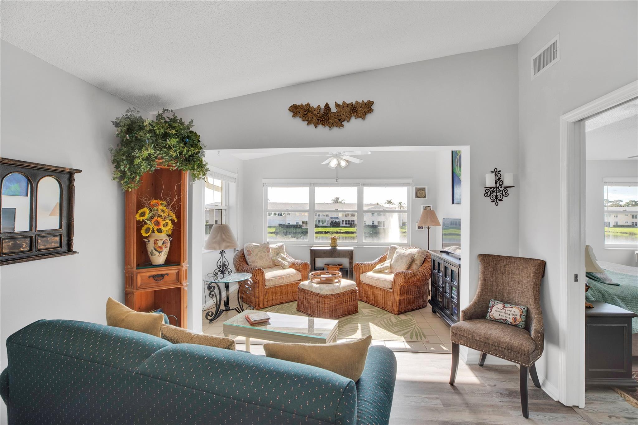 Enjoy this updated, bright and spacious partially furnished (items attached) two bedroom and two full bath condominium located in the active community of Grove Isle. Brand new (May 2025) air conditioner! Many amenities include two swimming pools with clubhouses, tennis courts, billiards, spa, kayak & boat launch with 24 hour guarded gate entrance. A 46 acre Nature Preserve with stunning trail leads to an observation deck & picnic area. Just minutes to Vero Beach's beautiful sandy beaches. Storm shutters (electric and manual).