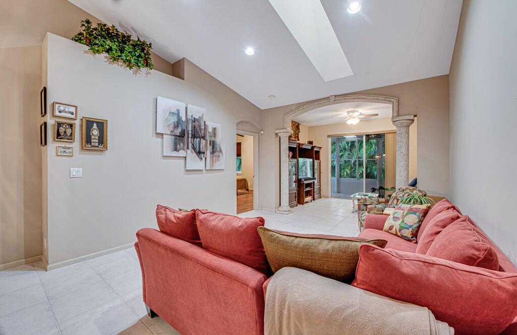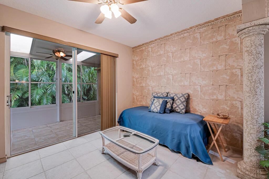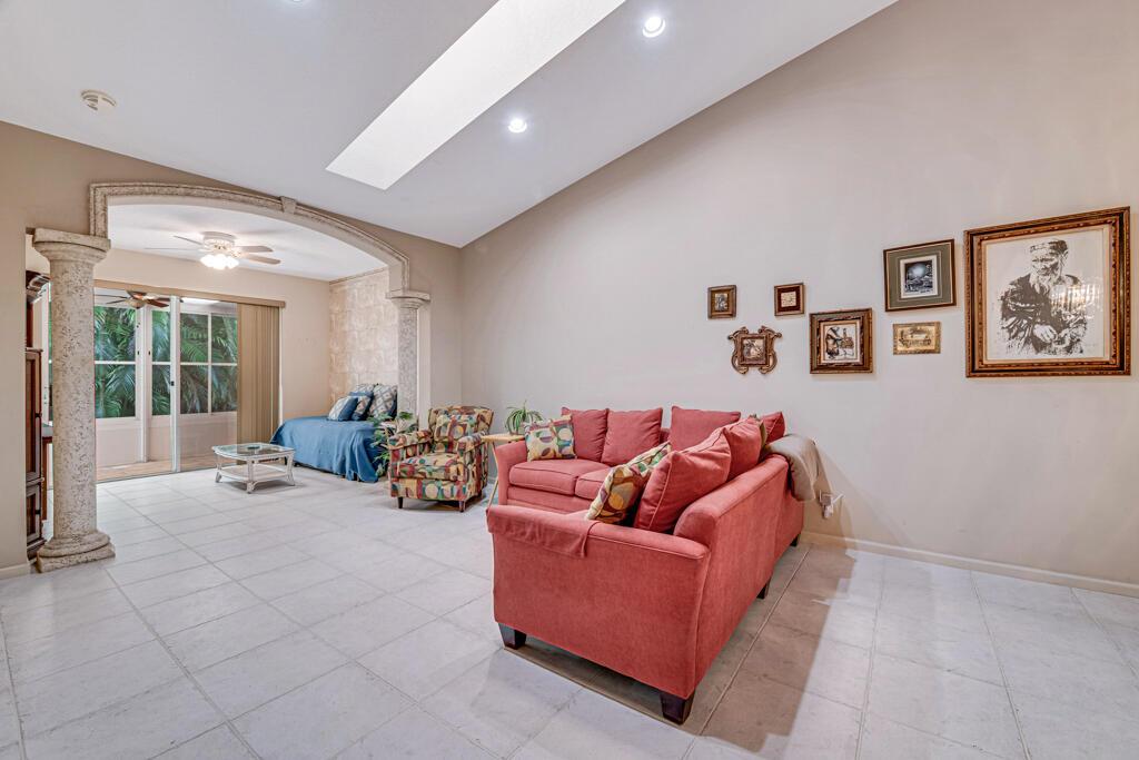Don't miss this villa with a BRAND NEW ROOF! This super clean home has been well maintained. Featuring a versatile den/office space that can easily serve as a 3rd bedroom and a glass-enclosed patio perfect for enjoying the serene surroundings. The open, split bedroom floorplan offers high vaulted ceilings and a skylight, beautifully illuminating the family room. Nestled amidst lush tropical landscaping this property feels like a private oasis. Check out the 3D virtual tour for an ''in person'' view. Palm Isles boasts multiple tennis courts, pickleball courts, pools, on site cafe & more to keep you engaged and entertained! Multi-million Dollar Renovated Clubhouse reopens in December! Get in now and get ahead! Property being rented seasonally 1/2026 - April 30th 2026.