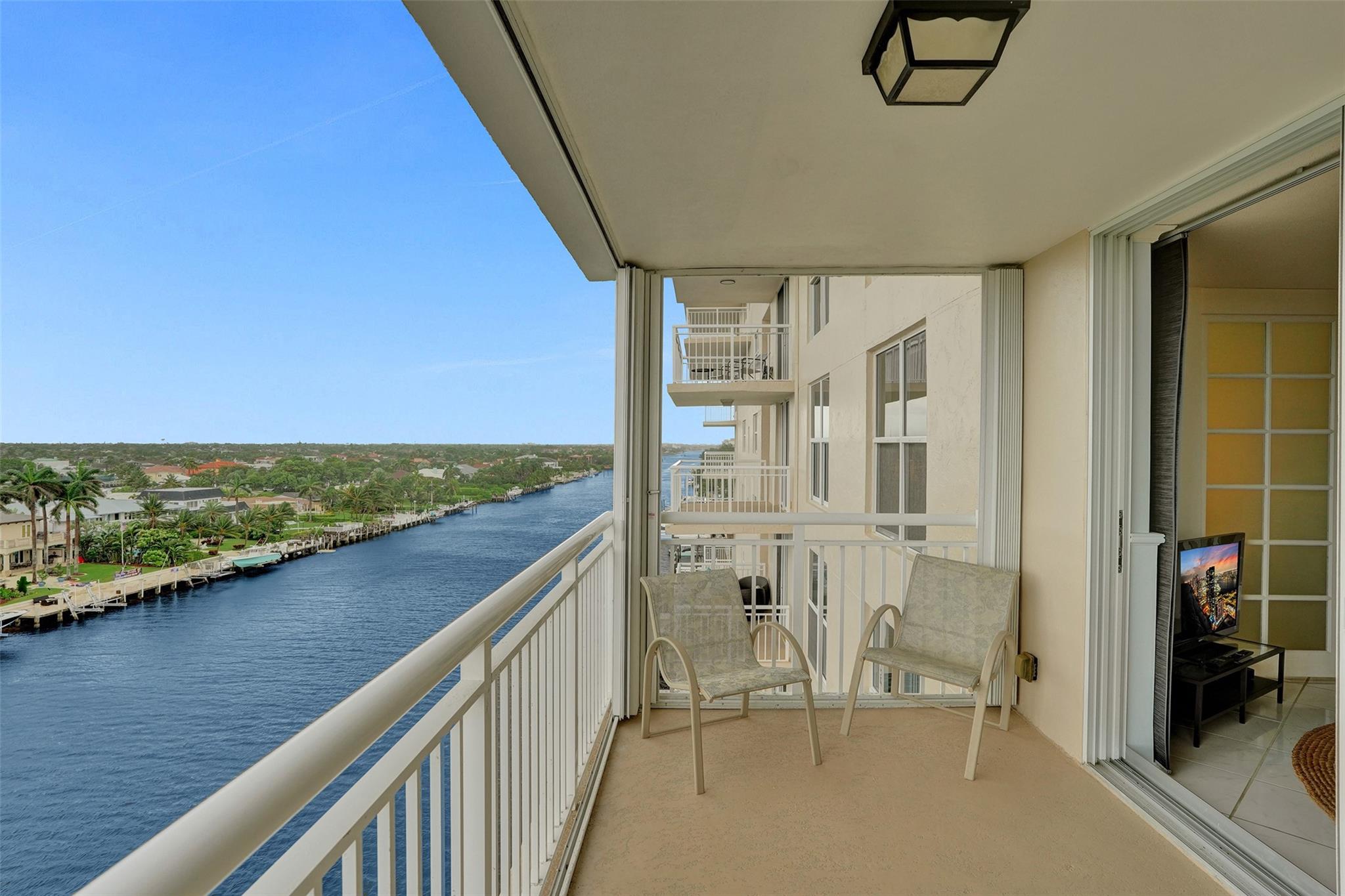 DIRECT INTRACOASTAL AND CITY VIEWS FROM A SPACIOUS OPEN BALCONY AND OCEAN VIEWS FROM YOUR KITCHEN WINDOW, OPEN KITCHEN WITH WHITE CABINETS AND PLENTY OF STORAGE SPACE, DIRECT INTRACOASTAL VIEW FROM PRIMARY BEDROOM, BOTH BEDROOMS WITH WALK IN CLOSETS, IMPACT WINDOWS AND SLIDING DOOR, BALCONY ALSO HAS HURRICANE SHUTTERS. TURNKEY UNIT, EXTRA STORAGE, PLENTY OF GUEST PARKING, WASHER AND DRYER ARE ALLOWED TO BE ADDED, PRIVATE BEACH ACESS, NEWER EXERCISE ROOM, COMMUNITY ROOM, BEAUTIFUL BEACH AREA WITH COMMUNITY ROOM, GRILLS, SHUFFLE BOARD, AND LAUNDRY FACILITY ON EVERY FLOOR. MINUTES TO POMPANO AND DEERFIELD BEACH, NEAR PLENTY OF RESTAURANTS, GOLF, TENNIS AND PICKLE BALL. 40 AND 50 YEAR RECERTIFICATIONS ARE COMPLETED!!!! A MUST SEE UNIT!!!