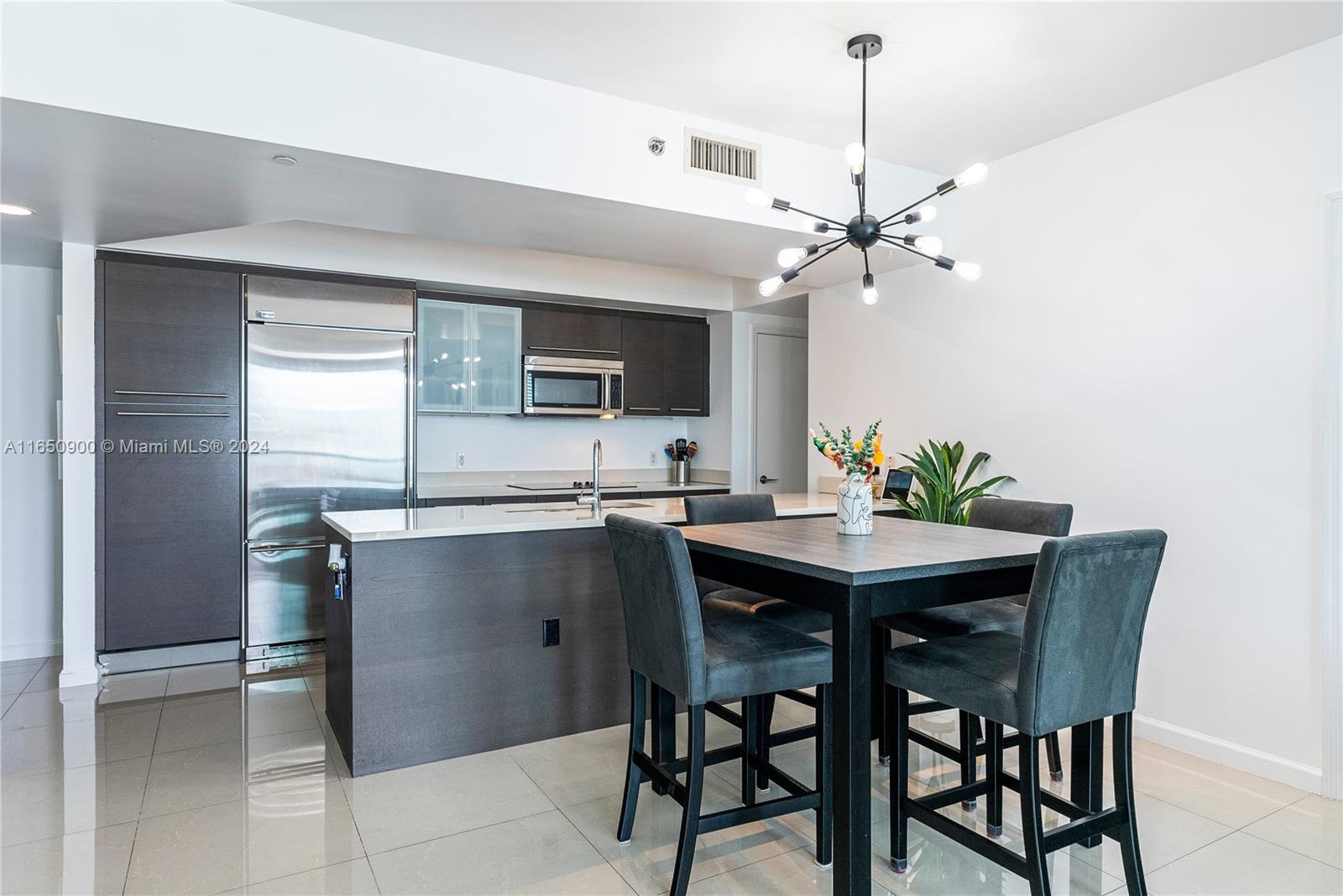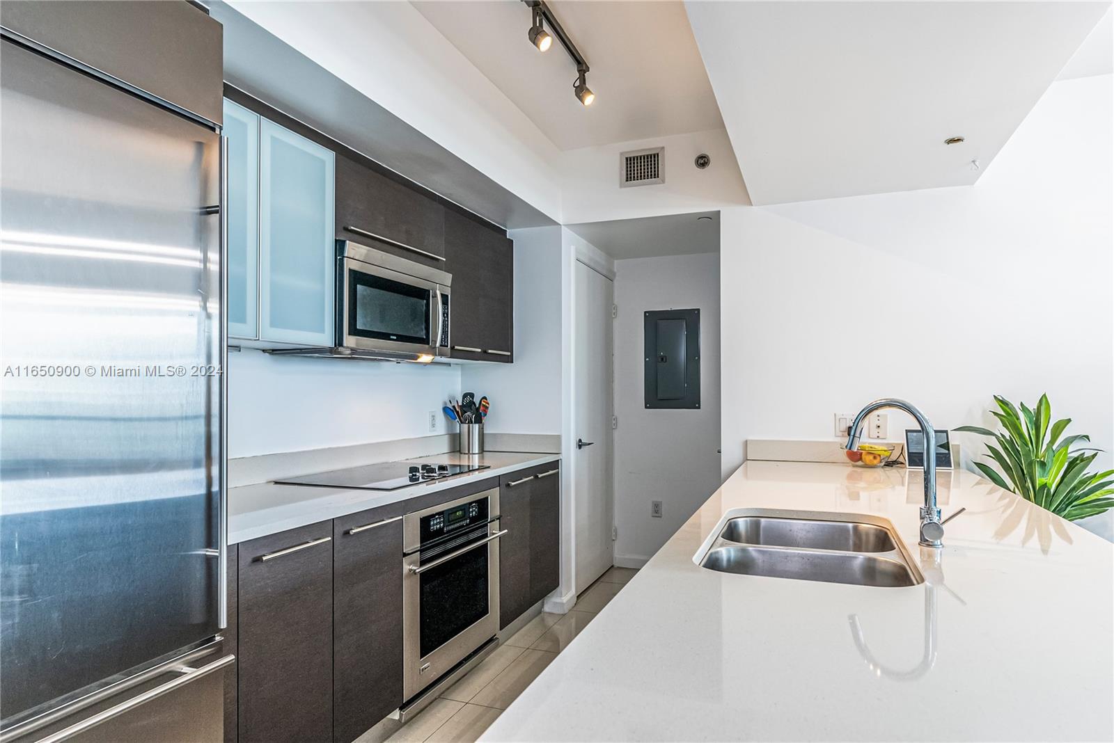 Beautiful and bright 2 Bedroom/2 Bath unit centrally located in the heart of Brickell. Open floor plan with split bedrooms and expansive northern views. Gorgeous kitchen with SS appliances and quartz countertops. Balcony + 1 assigned garage space. 500 Brickell Condominium offers top-of-the-line amenities including a rooftop pool, a large gym, spa, movie theatre, valet parking, 24HR doorman, security, and more. Cable, Internet, and reserves are included in the maintenance fee.