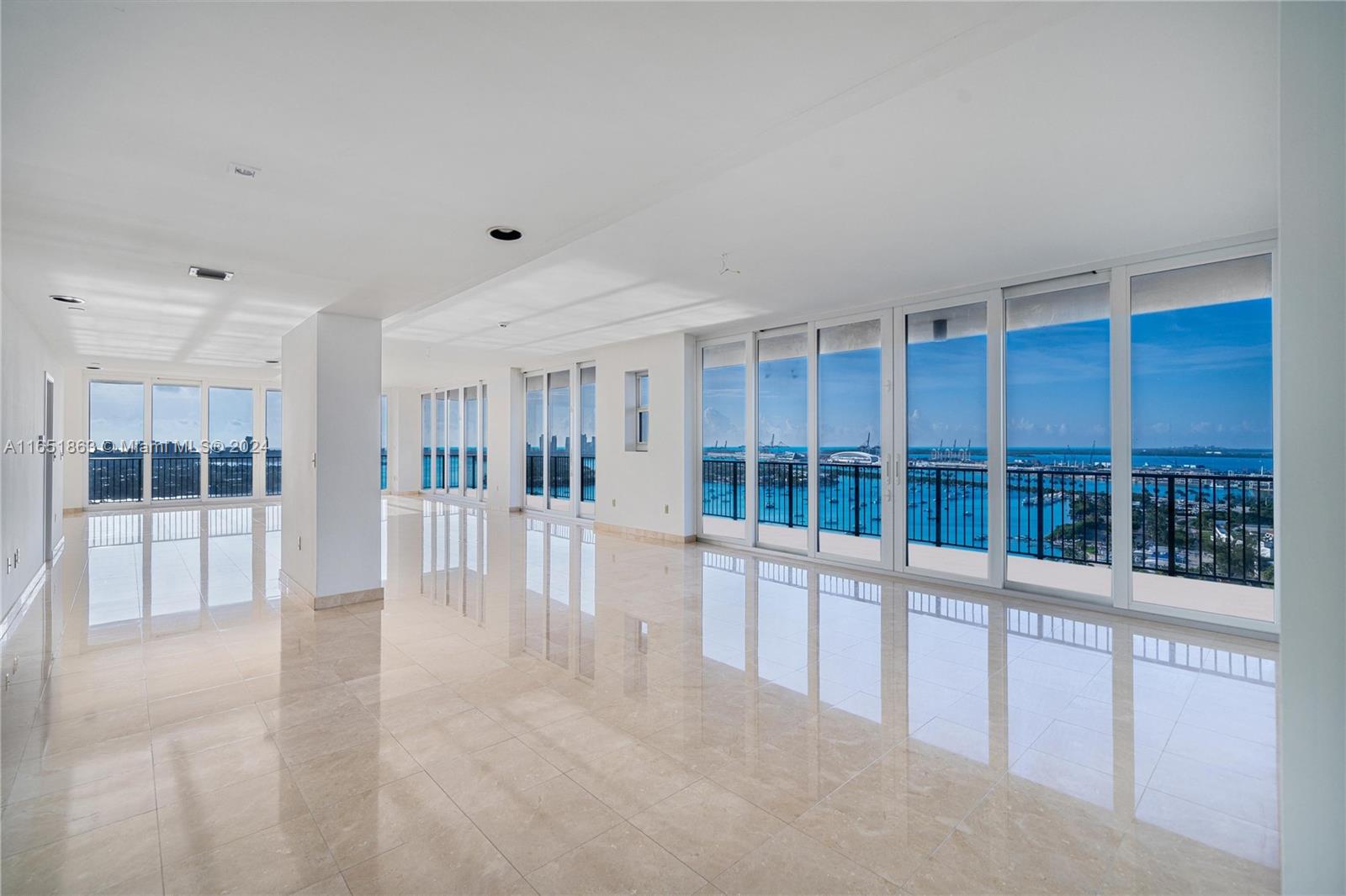 The most spectacular panoramic views of Biscayne Bay, Miami Beach & the downtown skyline from this rarely available upper penthouse at 1000 Venetian. This full-floor penthouse in the desired east tower offers 4,210 sq/ft under A/C, surrounded by 9+ foot-tall walls of impact glass doors leading to an additional 1,685 sq/ft of terrace space that is perfect for entertaining. (sq/ft per appraiser) The apartment has South, East & North exposures, with all rooms opening directly to oversized terraces with serene sunrises and unobstructed water views in every direction. All windows and doors have been replaced with hurricane impact glass. This 5bed/5.5bath is a unique opportunity to customize a large penthouse with the most amazing views in town, on the red-hot Venetian Islands! Easy to show.