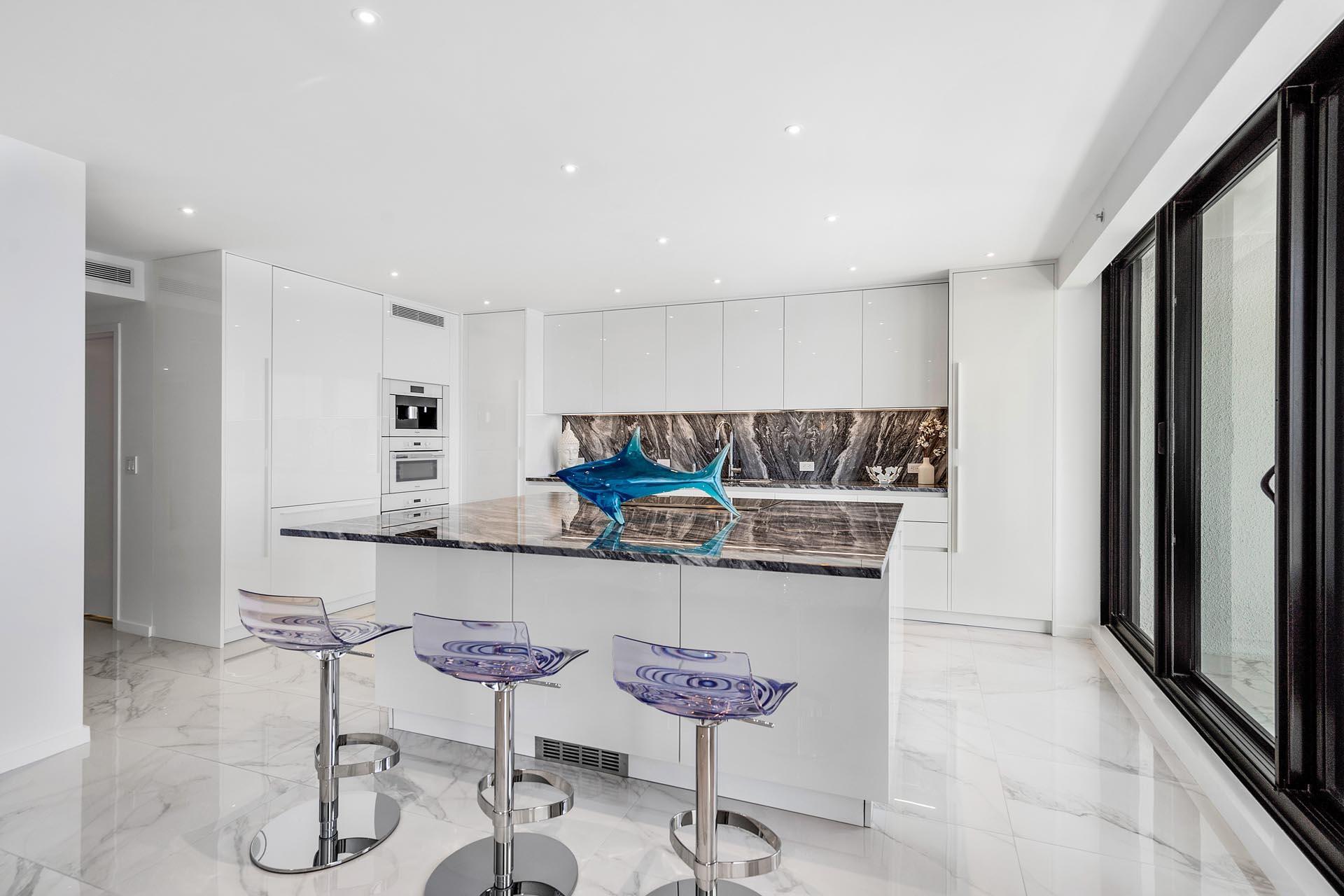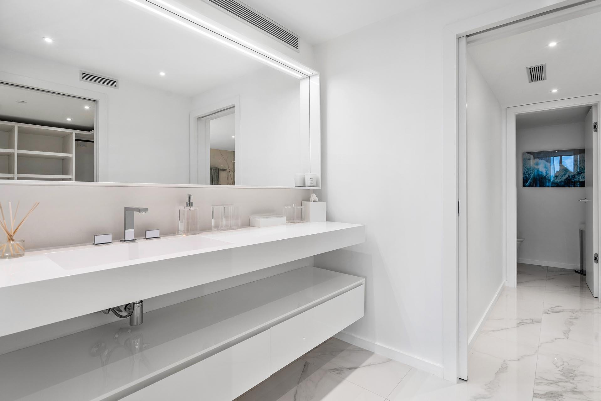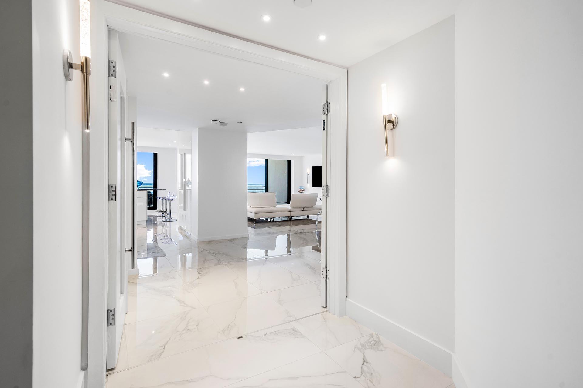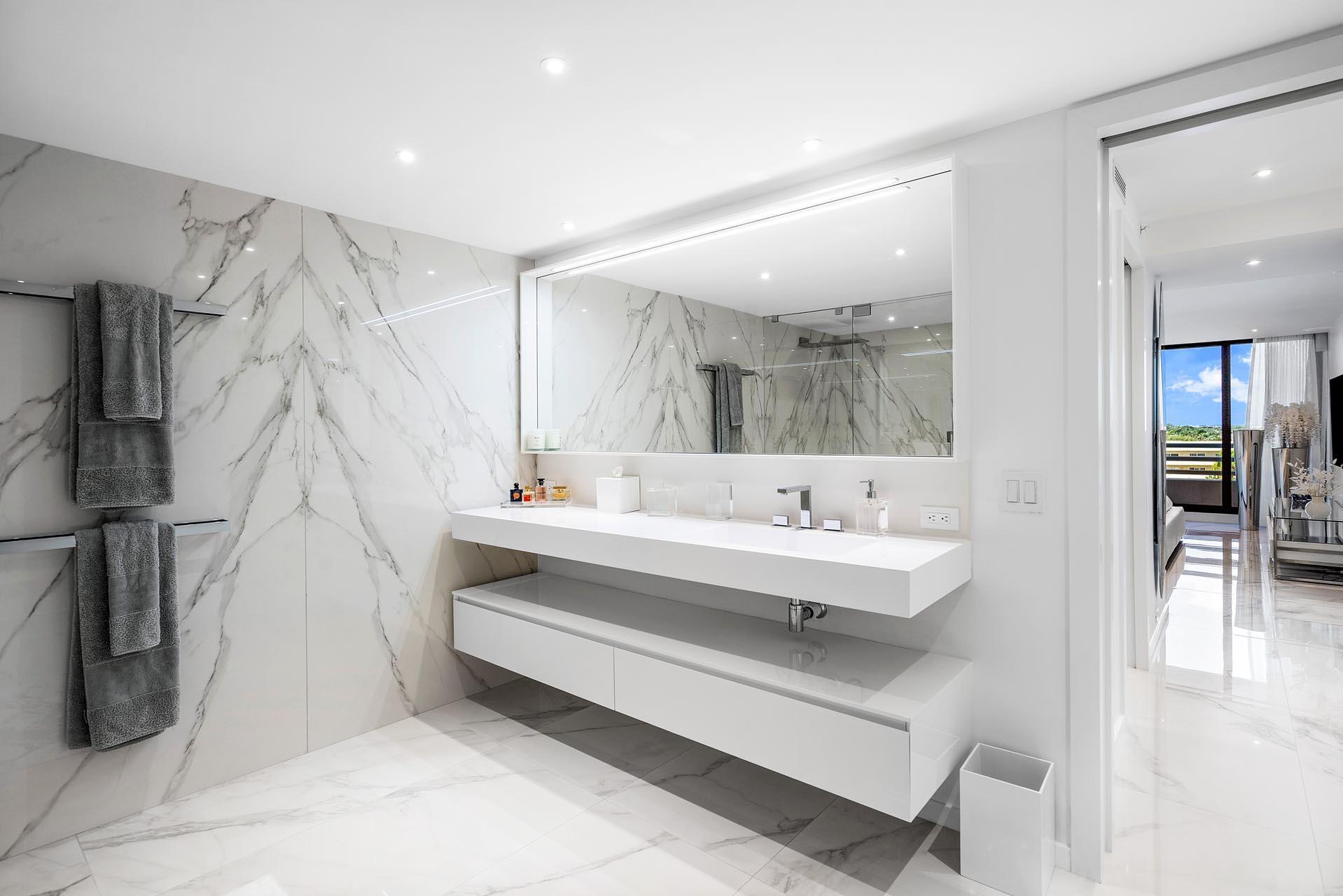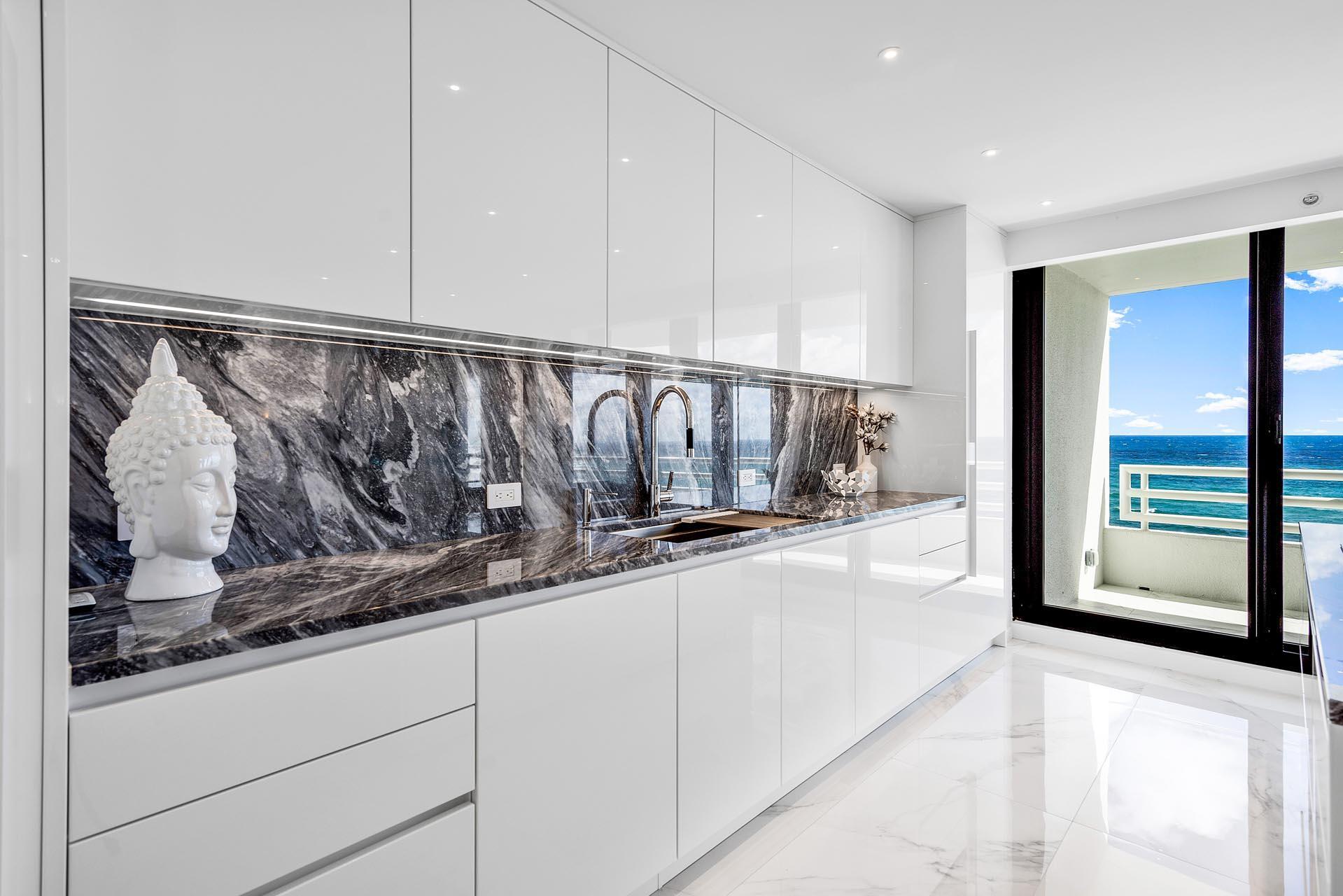With panoramic views of the Atlantic Ocean, this exclusive Addison on the Ocean suite offers the finest resort-style living on the sparkling shore in Boca Raton. Completely renovated and designed by renowned interior designer, Alexandra Karram, the unit is available turnkey with two-bedroom suites, one half bathroom, a sleek, modern white chef's kitchen with Miele appliances, and a covered balcony spanning the entire length of the condo. Rejuvenate with luxurious, recently refreshed 5-star amenities including fitness centers, saunas, steam rooms, massage services, beachfront pools, an al fresco poolside bar, a stylish restaurant, and a multitude of entertaining spaces. Along with a dedicated concierge and 24-hour security, this is first-class oceanfront living.
