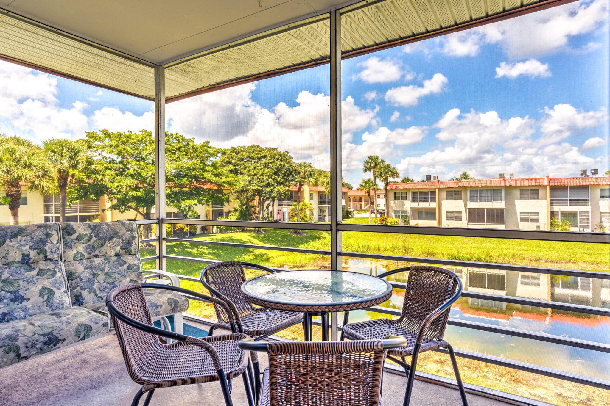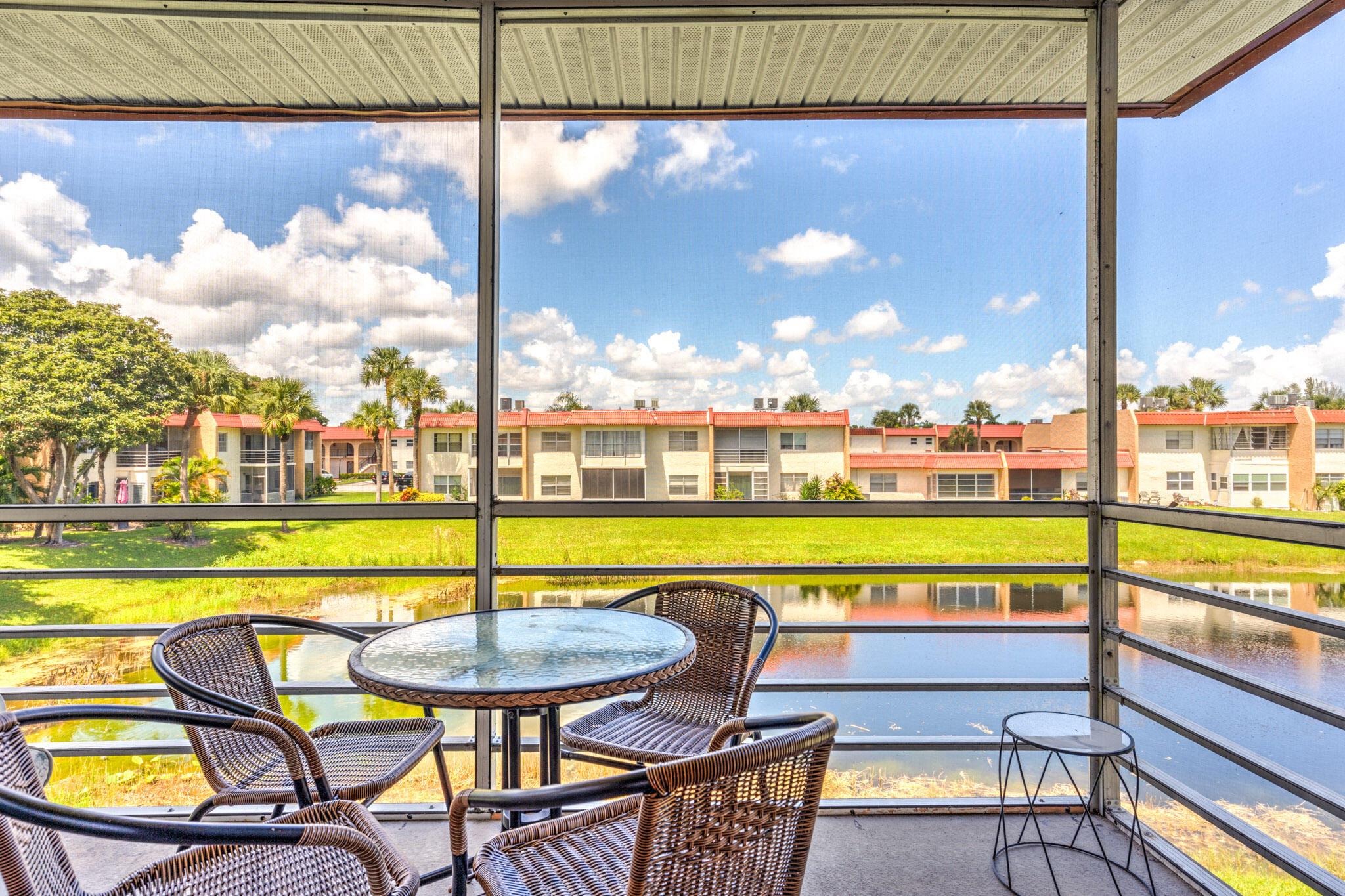 Move-in ready, fully furnished, just bring your toothbrush! 2bed/2bath top-floor condo with a lake view from each room. Very light and bright condo. Spacious primary bedroom and walk-in closet. Private washer and dryer inside the unit. Located in an active 55+ guard-gated community. Low HOA fee ($470/month) includes: cable & internet, water, building insurance, lawn care, pest control, 24h guard gate, several pools, billiard, courtesy bus and so much more. Easy to show, call for details today!
