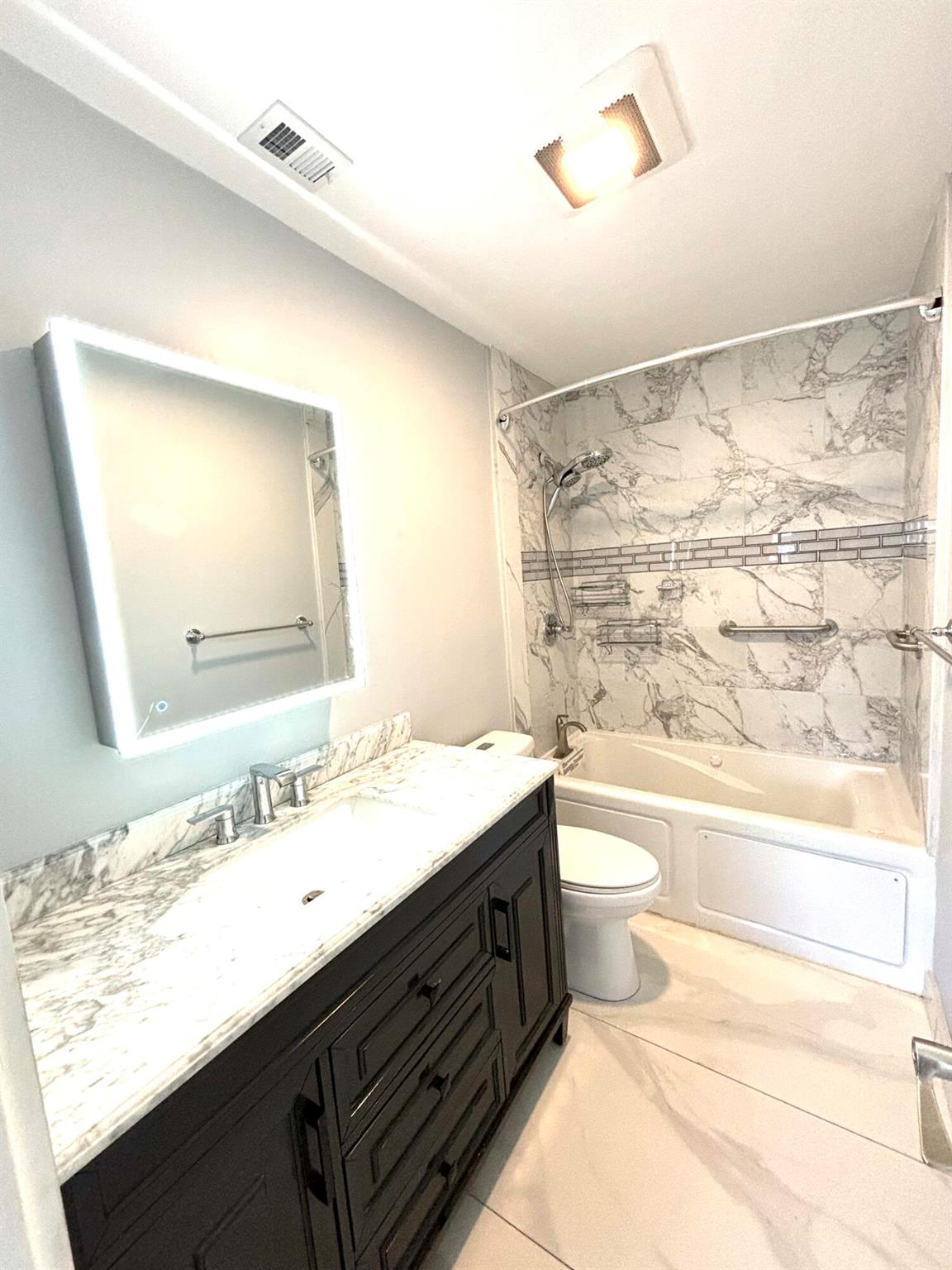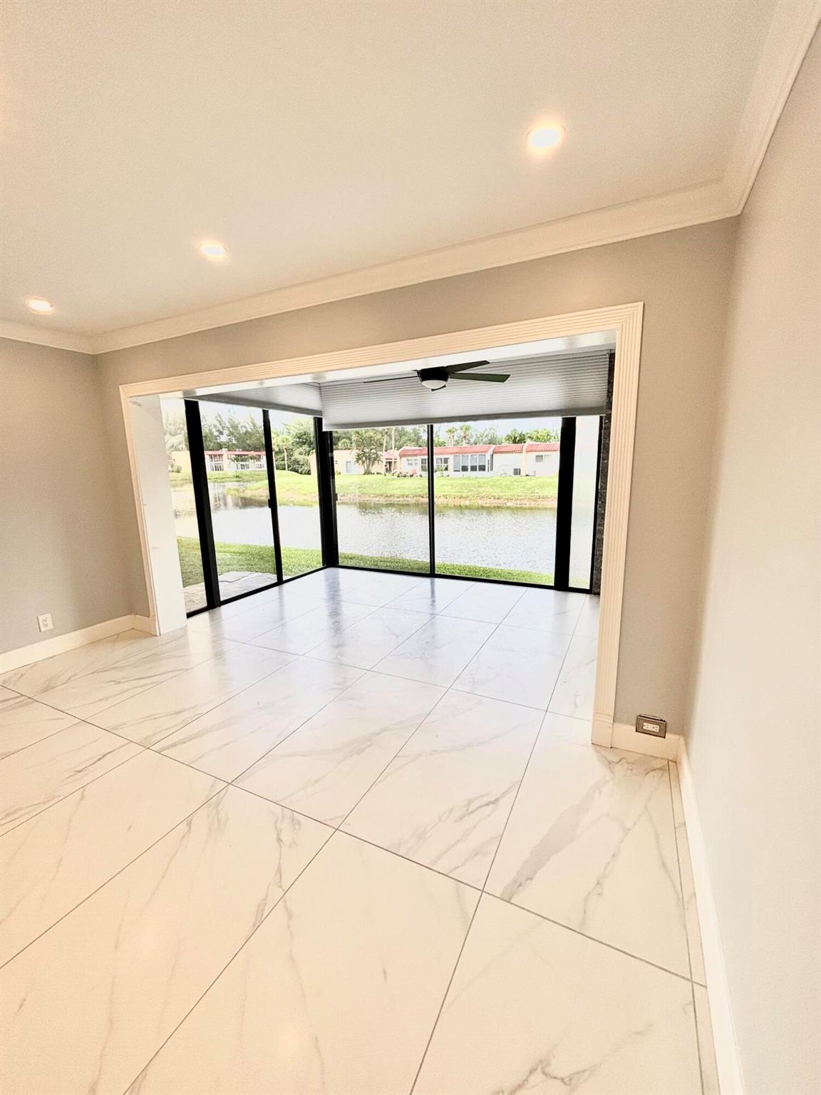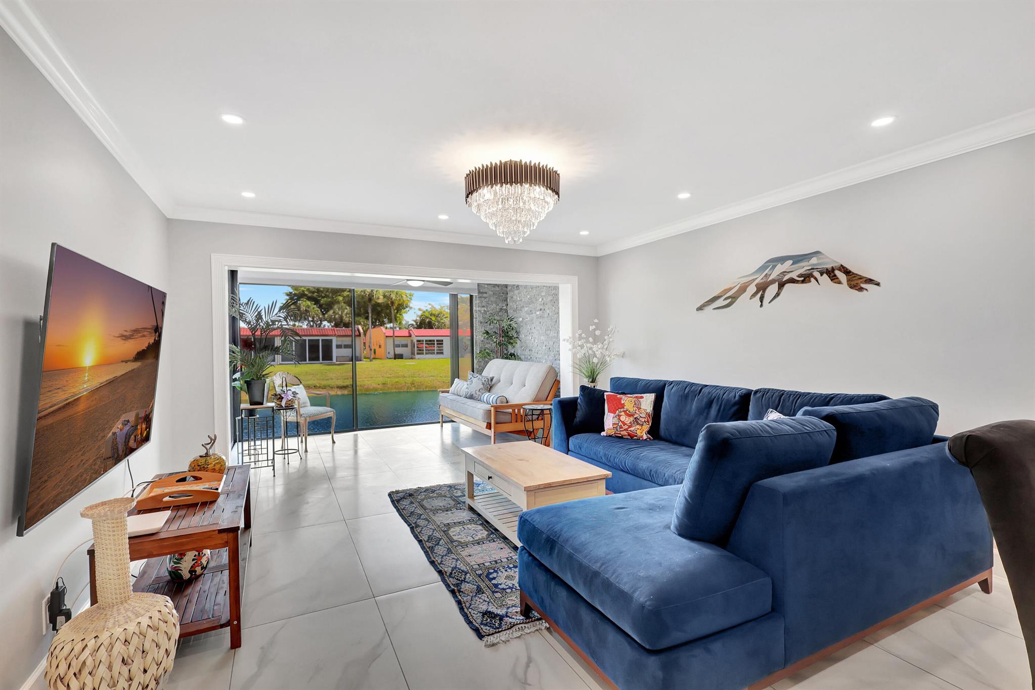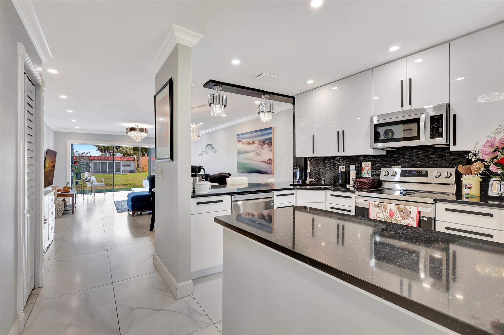 MOTIVATED SELLER! This stunning villa offers breathtaking lakeside views. Featuring: 2 Bedrooms/2 Baths, new impressive open-concept kitchen w/SS appliances, granite counters, cabinets to the ceiling, & pantry w/sliding drawers. Both bathrooms fully remodeled; guest bath with walk-in shower and master bath with shower & jet tub as well as walk-in closet. Hurricane impact windows in bedrooms, kitchen and & front door, large white marble look tile throughout, LED lights, crown molding throughout, California closet in Master suite, 2019 AC w/new condenser, New water heater 9/2024, updated electrical panel, Hunter Douglas window treatments in FL room, and new front landscaping. This is a very active adult community offering many amenities. Full details under Document