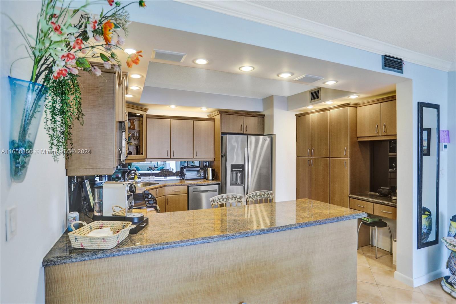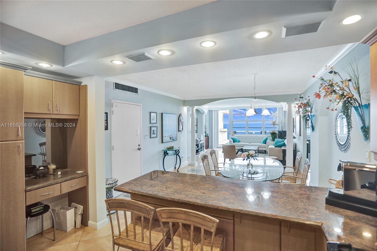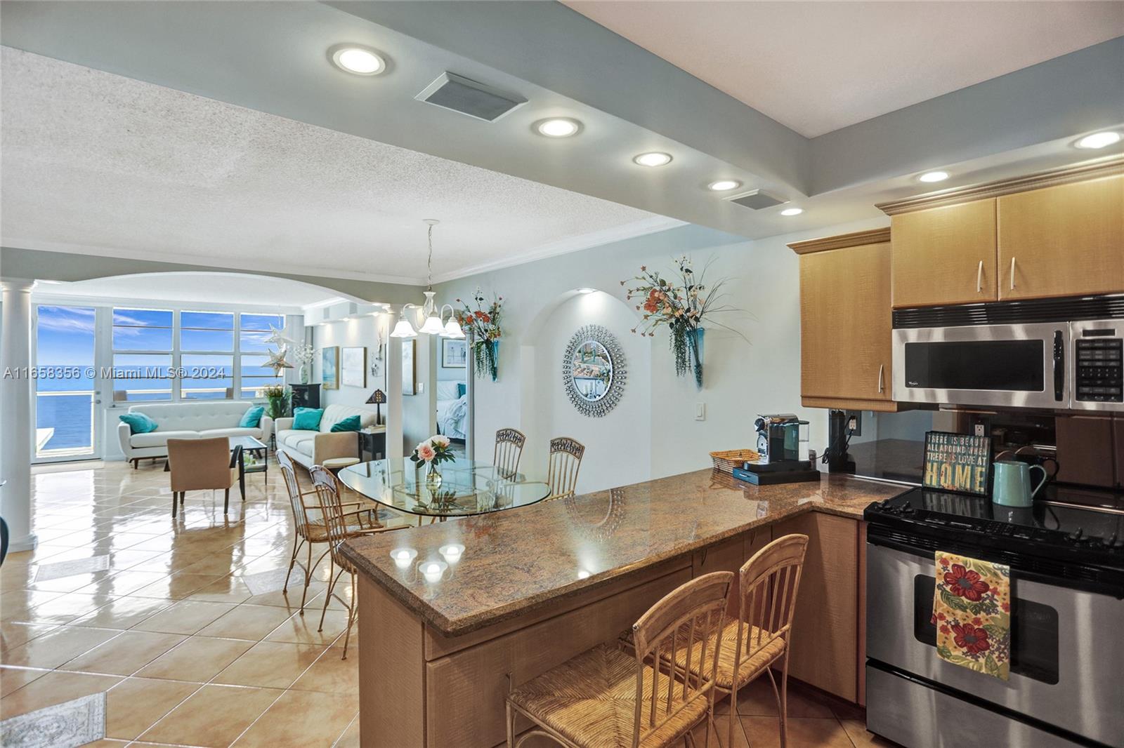 Welcome to a breathtaking corner unit with direct oceanfront views in the heart of Hollywood, Florida. This 2-bed, 2-bath condo boasts a southern-facing orientation, filling the home with abundant natural sunlight throughout the day. Beautiful tile floors that flow seamlessly throughout the home. Ample closet space ensures that storage is never an issue. The master features a luxurious en-suite bathroom with a jacuzzi tub and a separate walk-in shower. Step outside onto the wrap-around balcony to enjoy your morning coffee. The modern kitchen is a chef’s delight, fully updated with stainless steel appliances, generous cabinet space, and plenty of lighting for an airy, open feel. A convenient in-unit washer and dryer adds to the ease of living in this meticulously maintained home.