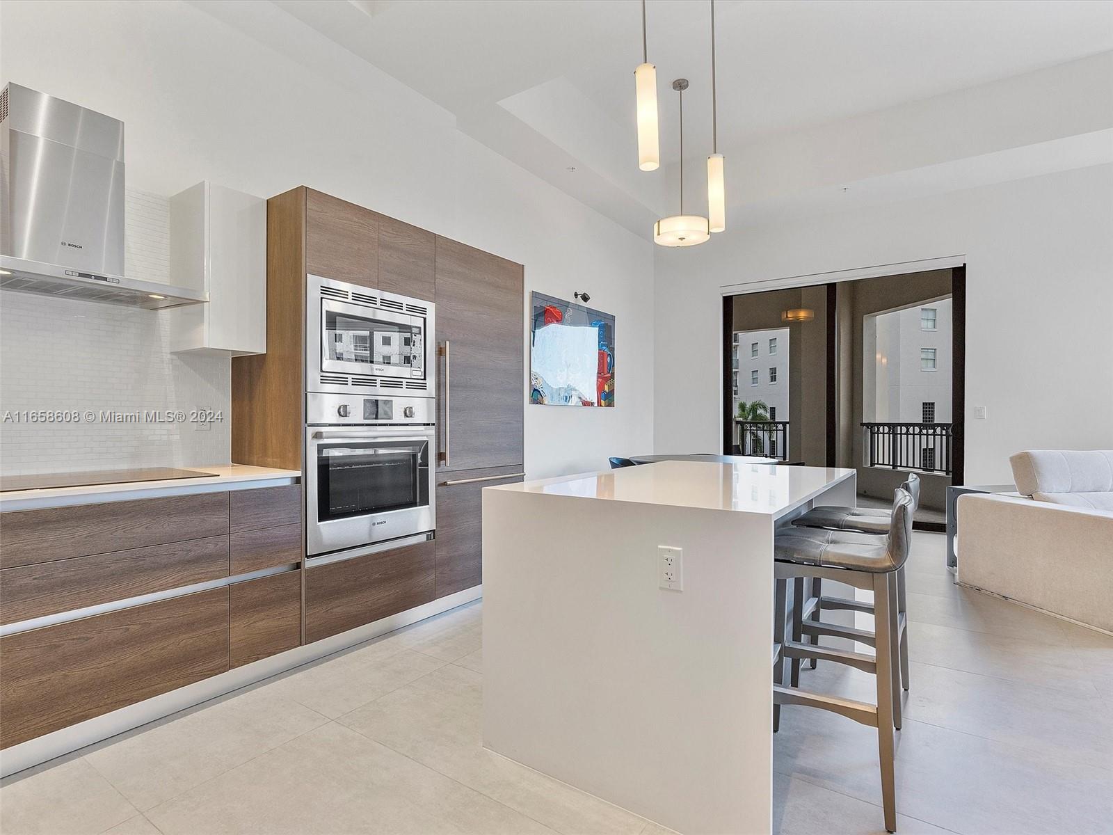 UNIQUE OPPORTUNITY in the Coral Gables market. Listed at a lower price than the other two bedrooms in this sophisticated building. This stylishly furnished 1100sf property offers 13-foot ceilings, two distinct balconies with additional 102sf of outdoor living space. Move in ready. This apartment has two bedrooms and two and half bathrooms. Barely lived in and used, unit has Italkraft cabinets, white quartz kitchen counter and island, Bosch appliances, and washer/dryer within the home are all included. Resort-style features at Merrick Manor include a heated pool, BBQ, premium fitness facility, 24/7 concierge. Close to upscale Merrick Park Shops and the University of Miami. Pets are welcome. Includes one designated covered parking spot. Don't miss out on this opportunity to live the life!