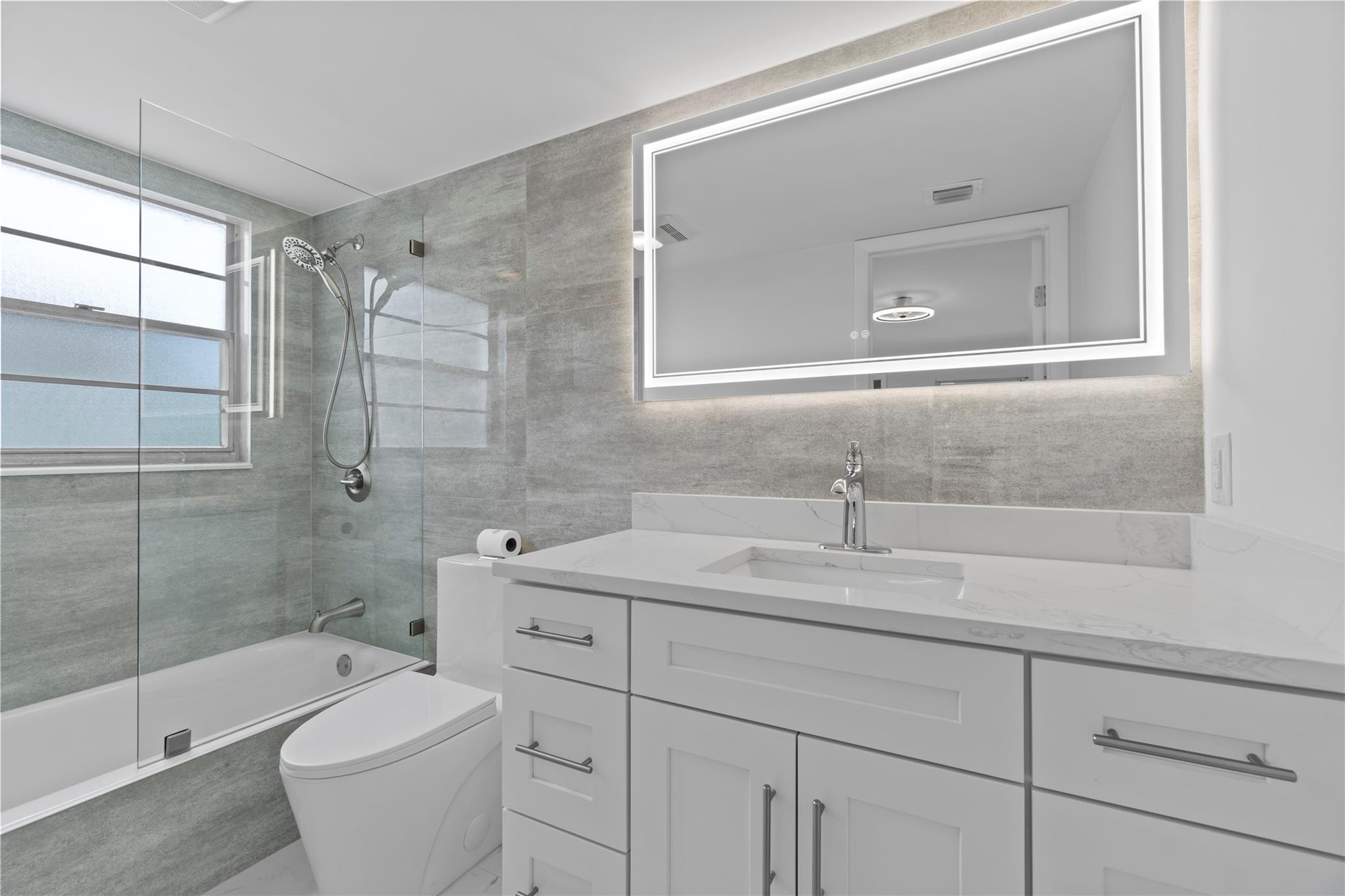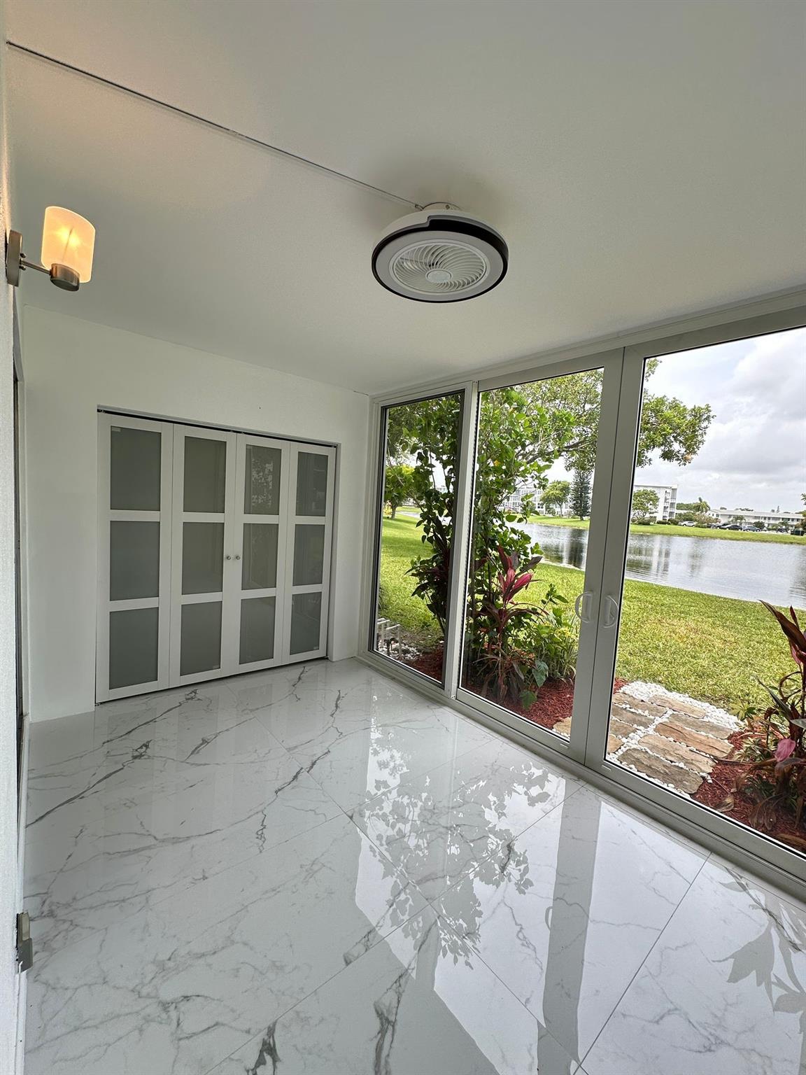 BRAND-NEW IMPACT SLIDING GLASS DOOR INSTALLED, Expanding the Bright Porch Room with a Custom Garden Backyard, Ideal for Outdoor Enthusiasts. Enjoy The Serene Lake View for Relaxing or Entertaining. This Stunning, Fully Renovated 2-Bed, 2-Bath Corner Unit On The First Floor With Lake View Features Tile Flooring Throughout, Custom Closets, Central Air In Both Bathrooms With Extra Fans, Drop Ceiling In Open-Concept Kitchen With Desk Area, Top-Tier Appliances, Waterfall Countertop, Lazy Susan, And Custom Lighting. Premium Fixtures In Kitchen And Baths. Located In A 55+ Resort-Style Community Just 10 Minutes From The Beach—Fitness Center, Sauna, Theater, Pickleball, Pools & More. All Cash